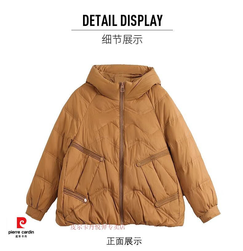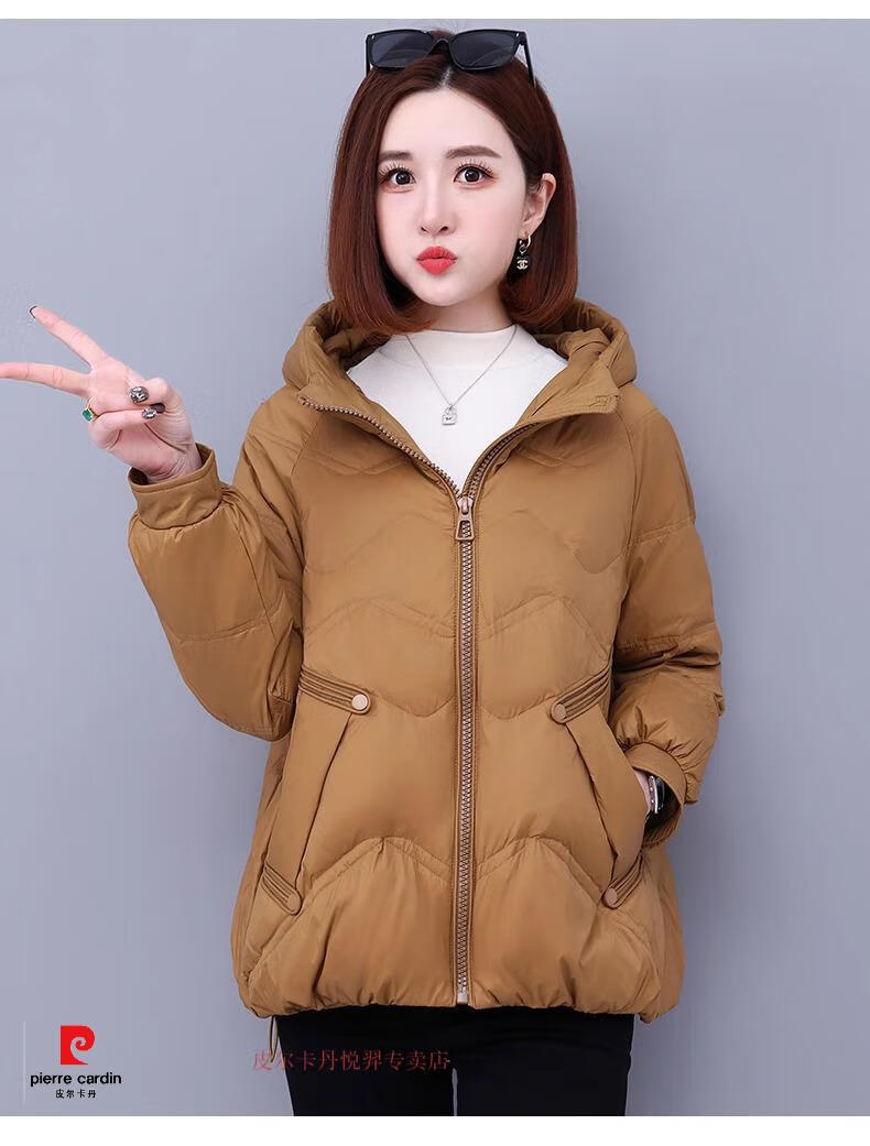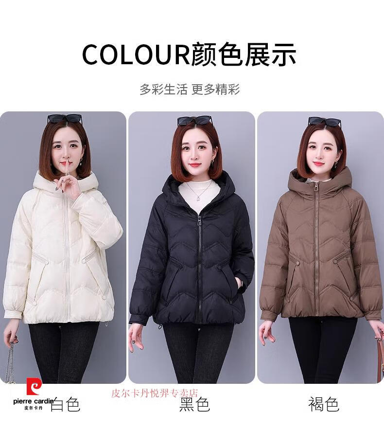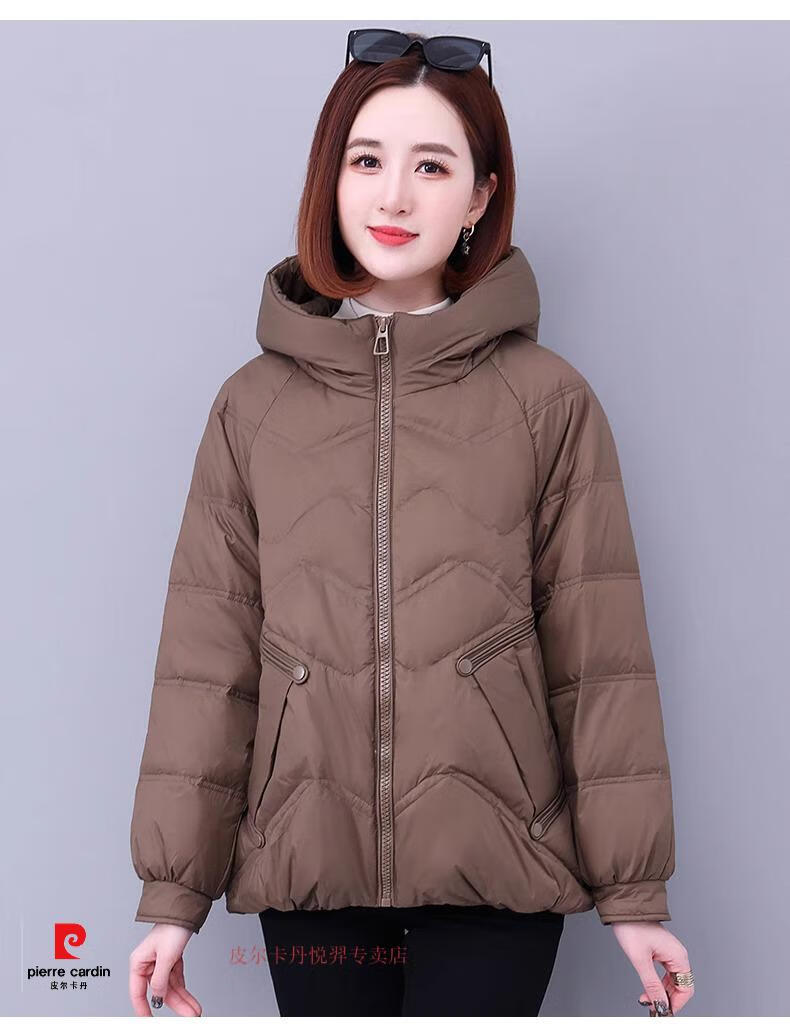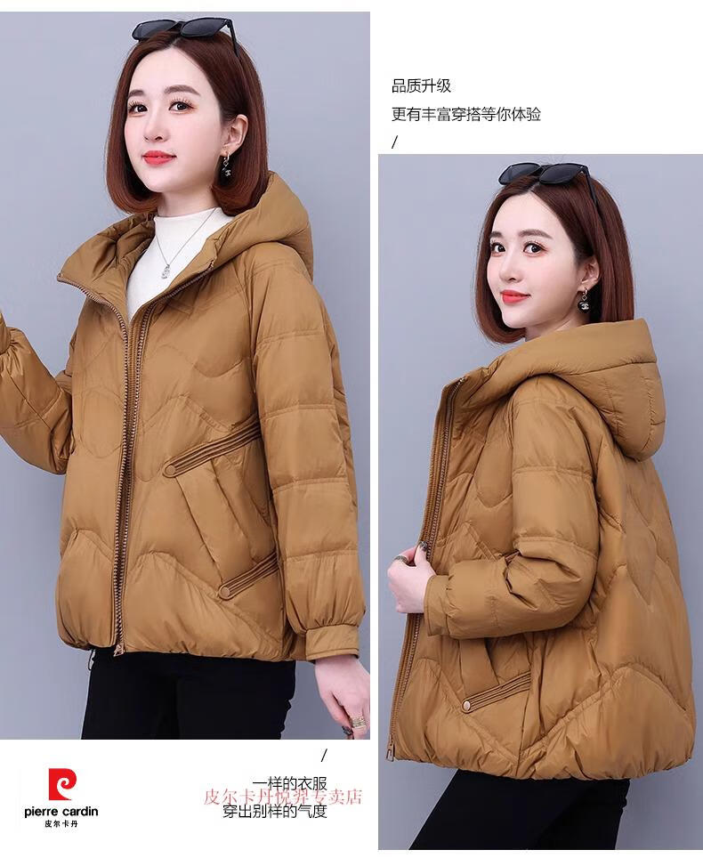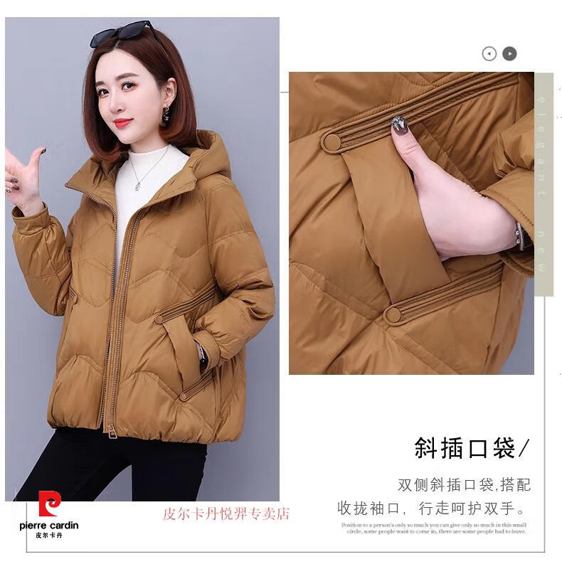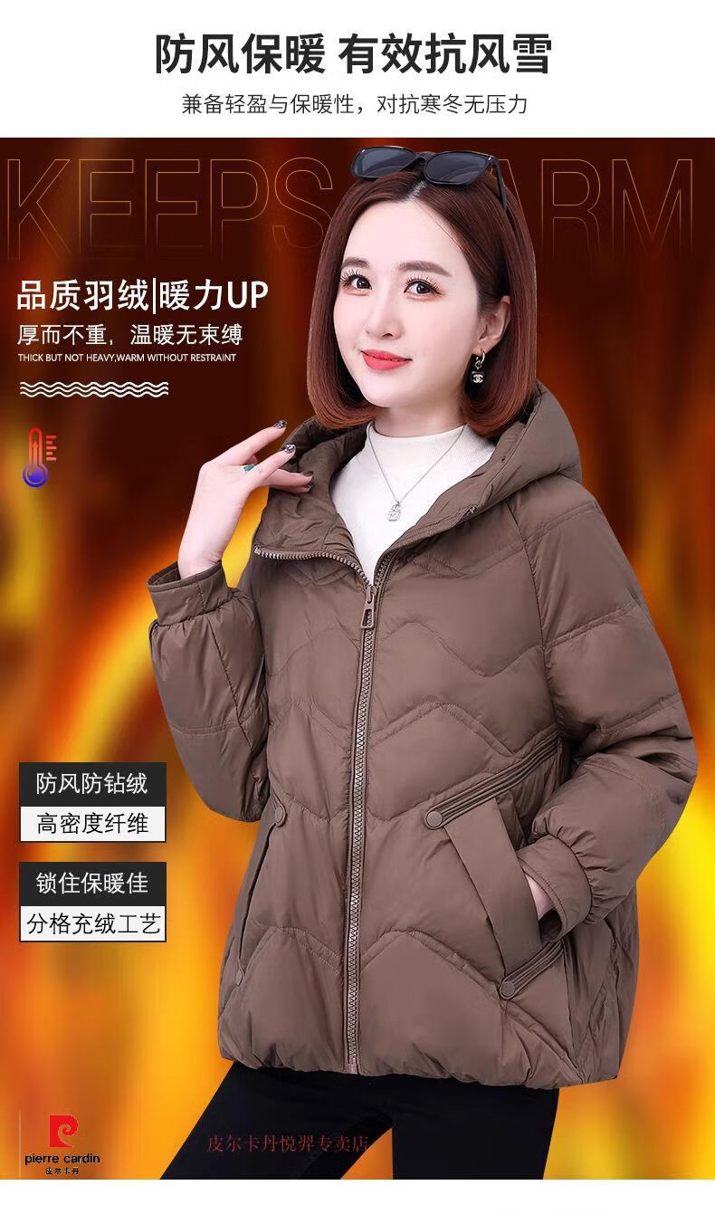 Pierre Cardin Women's Down Jacket Winter 2025 New Short Style Fashionable Age-Reducing White Duck Down Mother's Hooded Lightweight Jacket Black XS 90-120Jin Jin is equal to 0.5 kg
