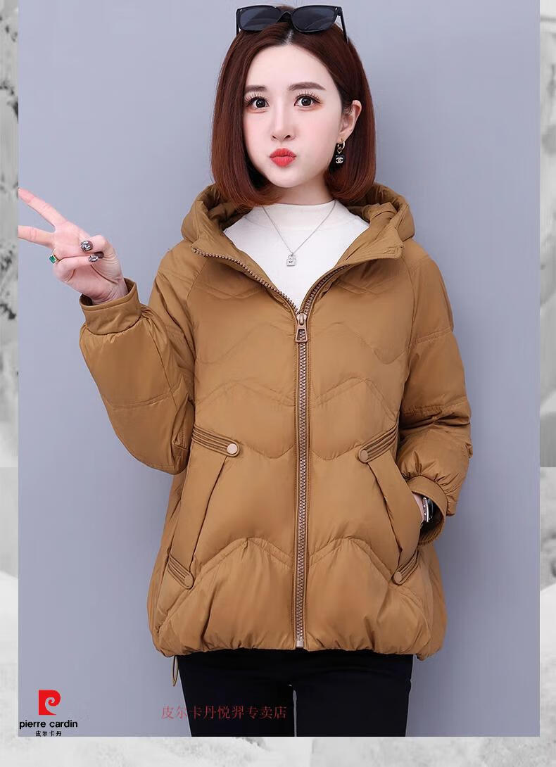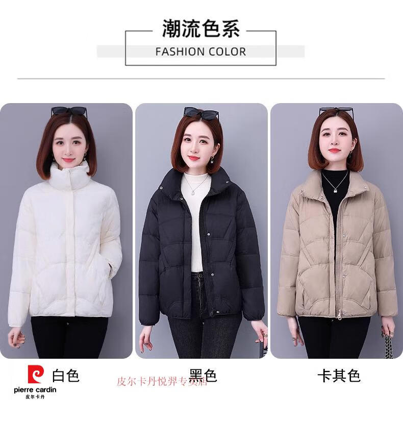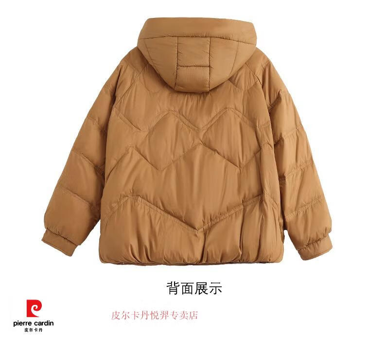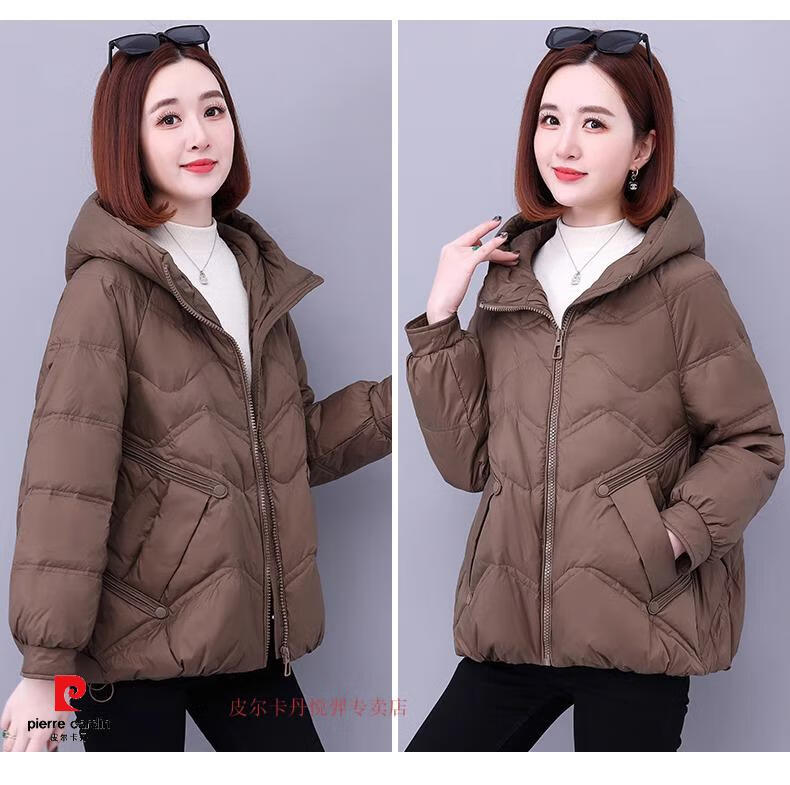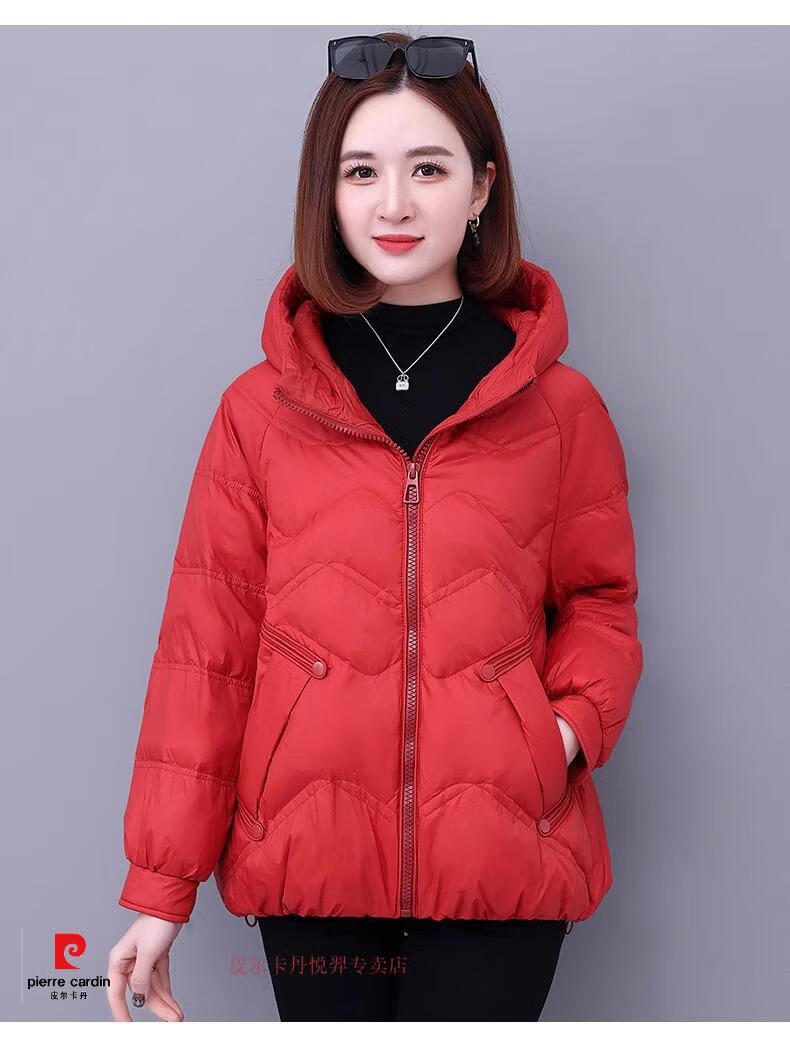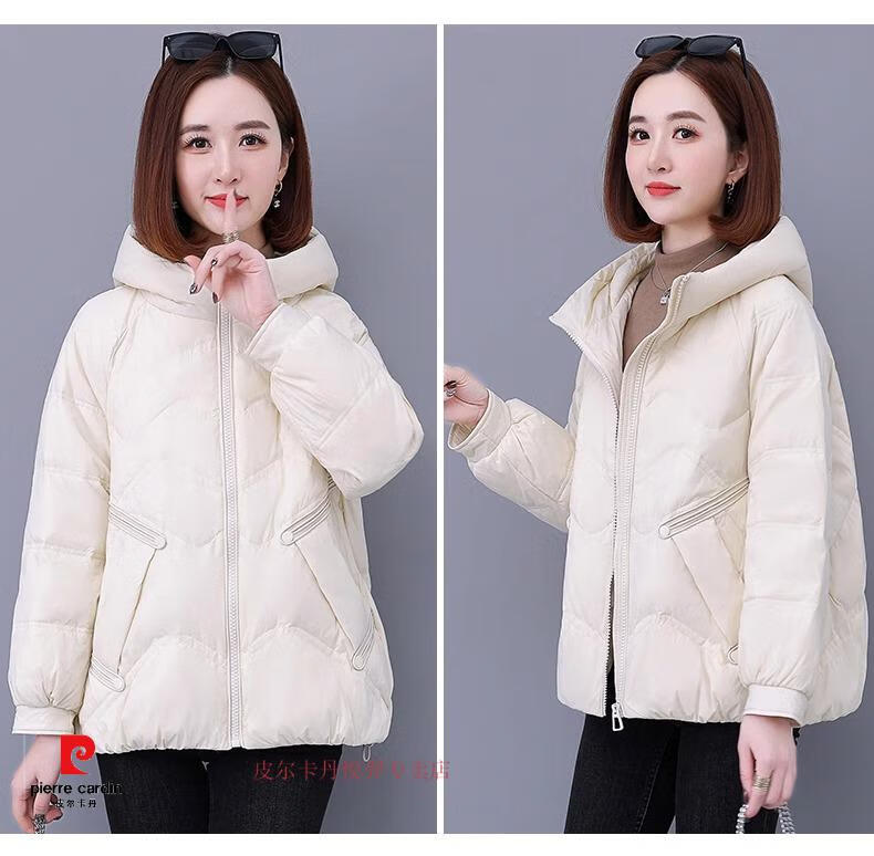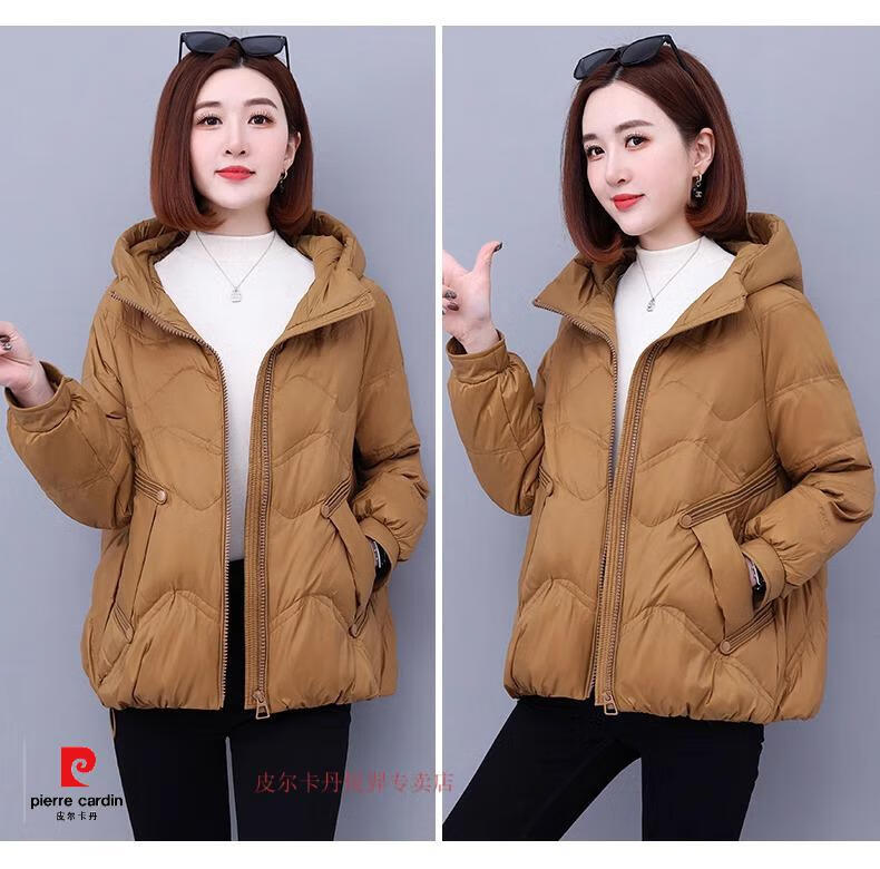 Pierre Cardin Women's Down Jacket Winter 2025 New Short Style Fashionable Age-Reducing White Duck Down Mother's Hooded Lightweight Jacket Black XS 90-120Jin Jin is equal to 0.5 kg