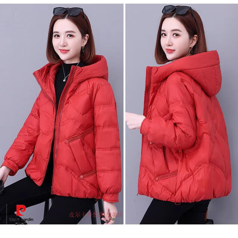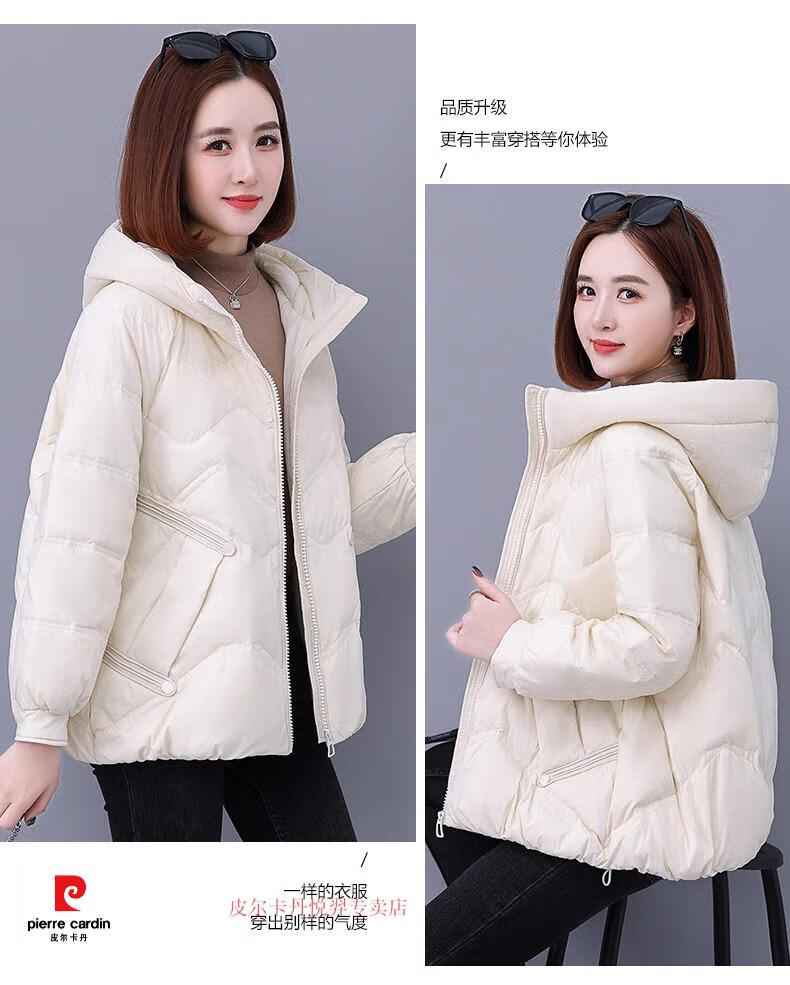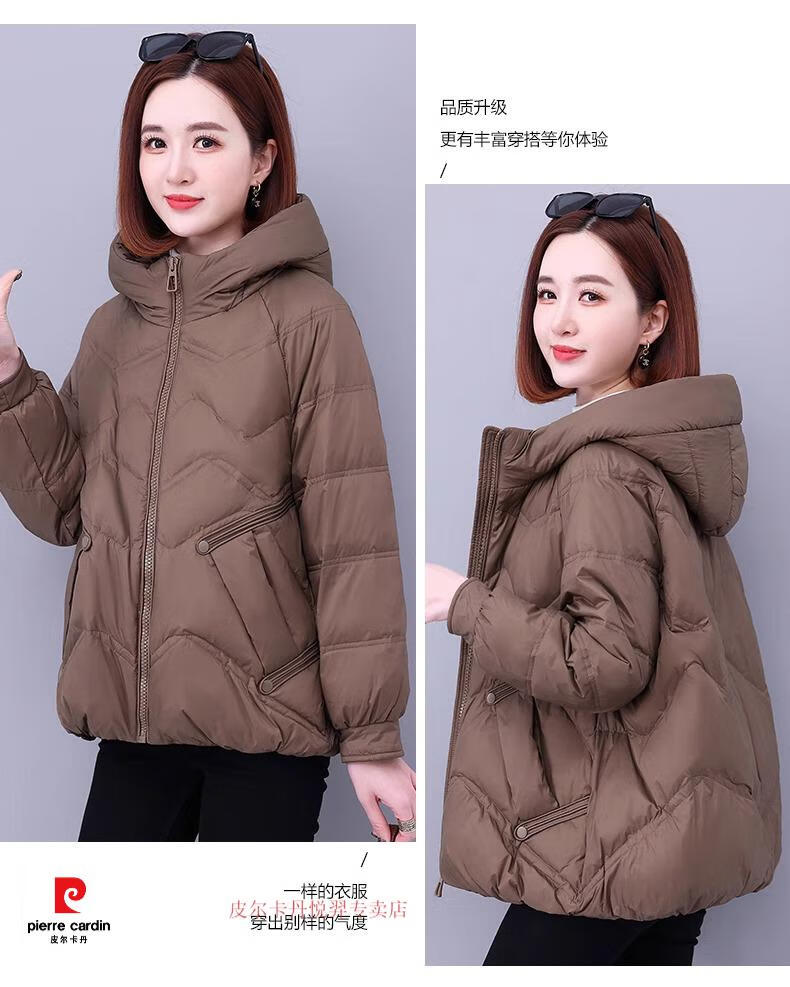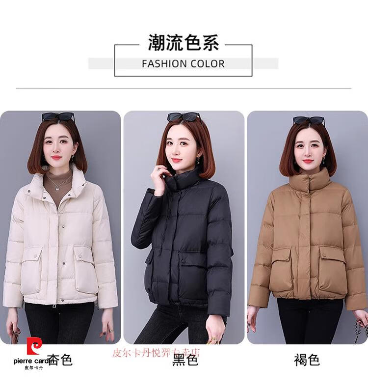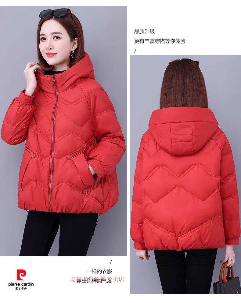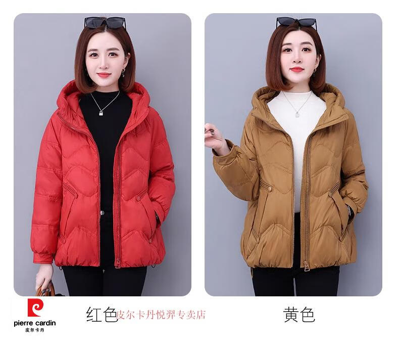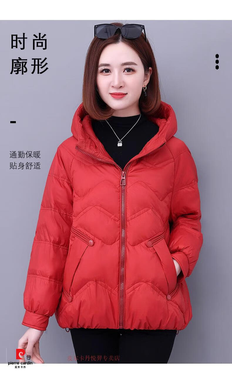 Pierre Cardin Women's Down Jacket Winter 2025 New Short Style Fashionable Age-Reducing White Duck Down Mother's Hooded Lightweight Jacket Black XS 90-120Jin Jin is equal to 0.5 kg