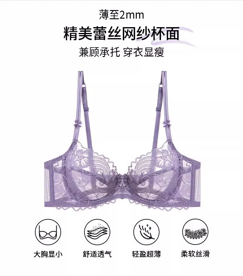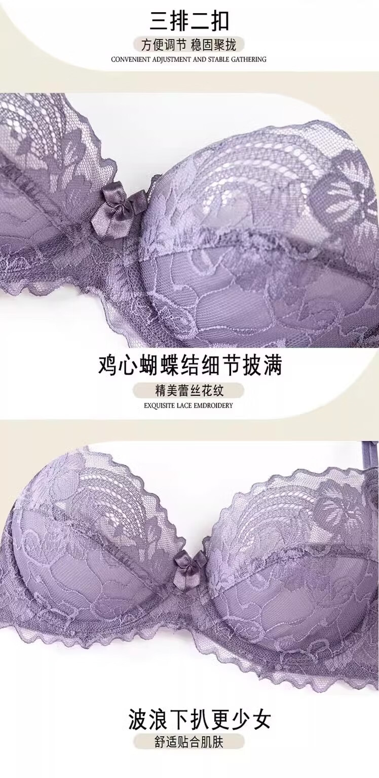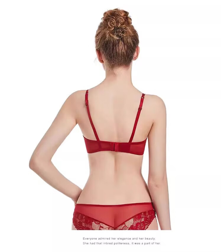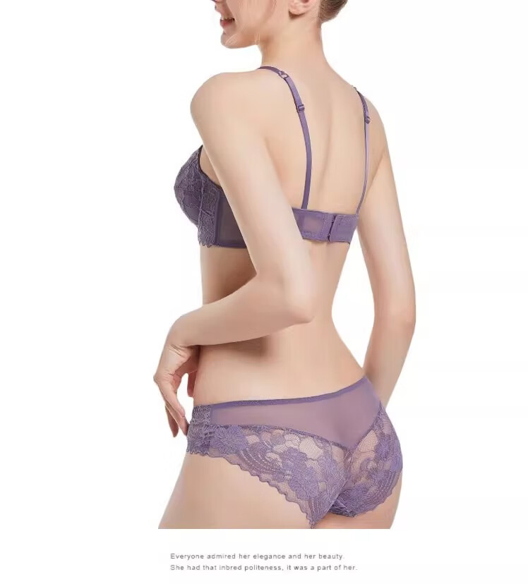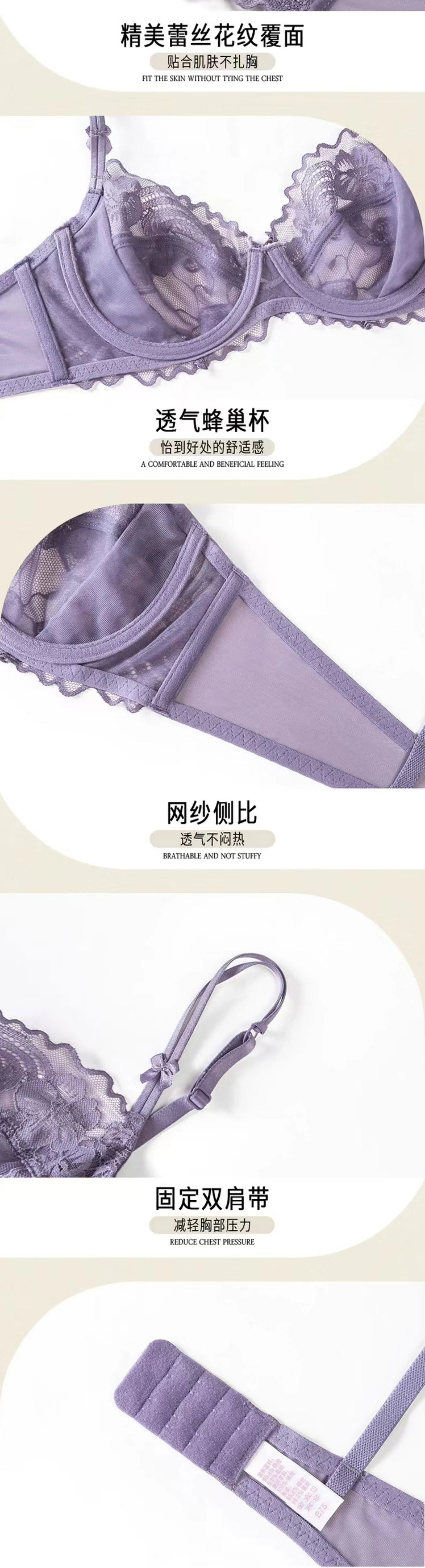 Victoria Palace Sexy Bra Purple Elegant French Ultra-Thin Breathable Lace Bra Push-up Bra Set Red 75B 34 (with M size panties)
