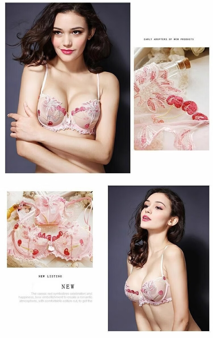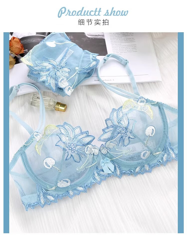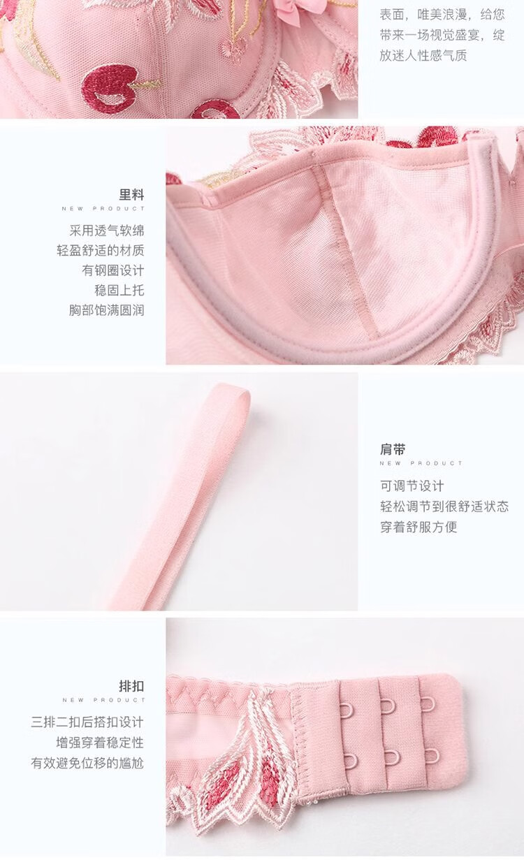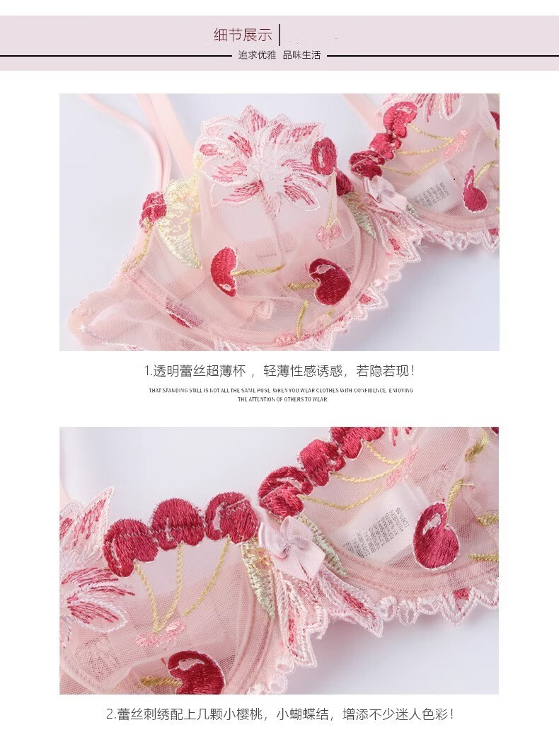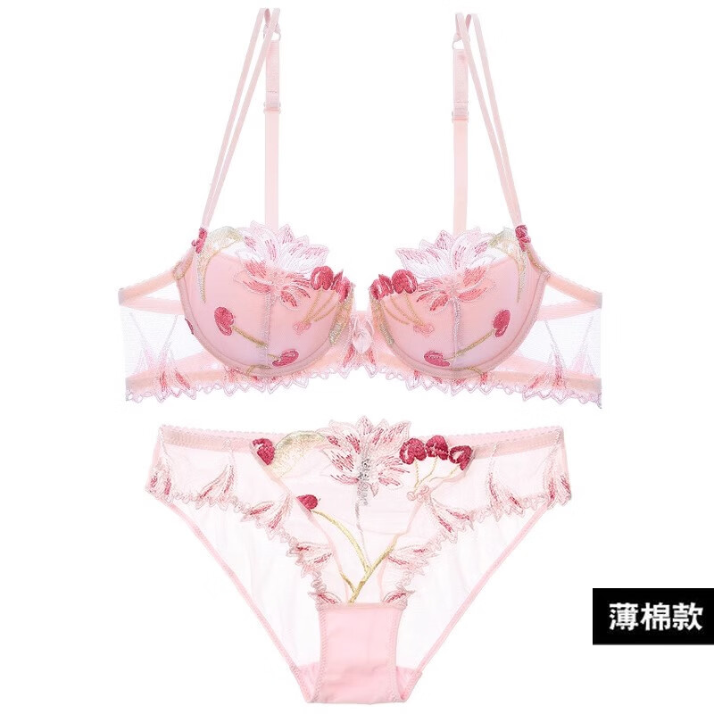 Victoria Palace Elegant Underwear Set Ultra-Thin Lace Embroidery Large Size Bra Pure Desire Transparent Sexy Bra Set Red Ultra-Thin 85D 38