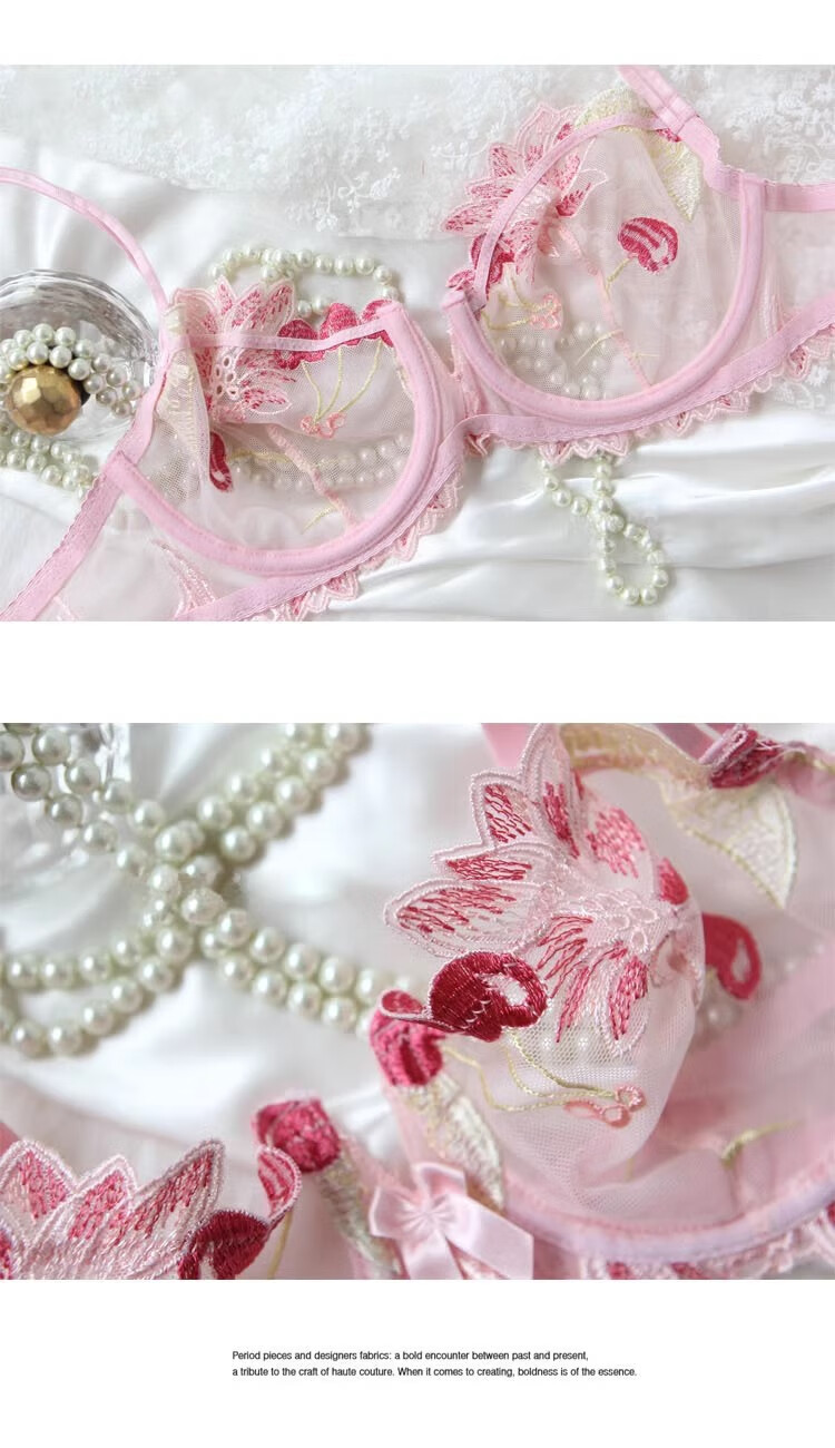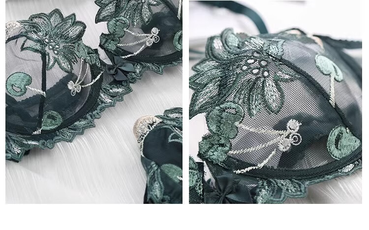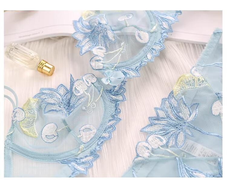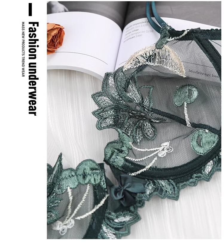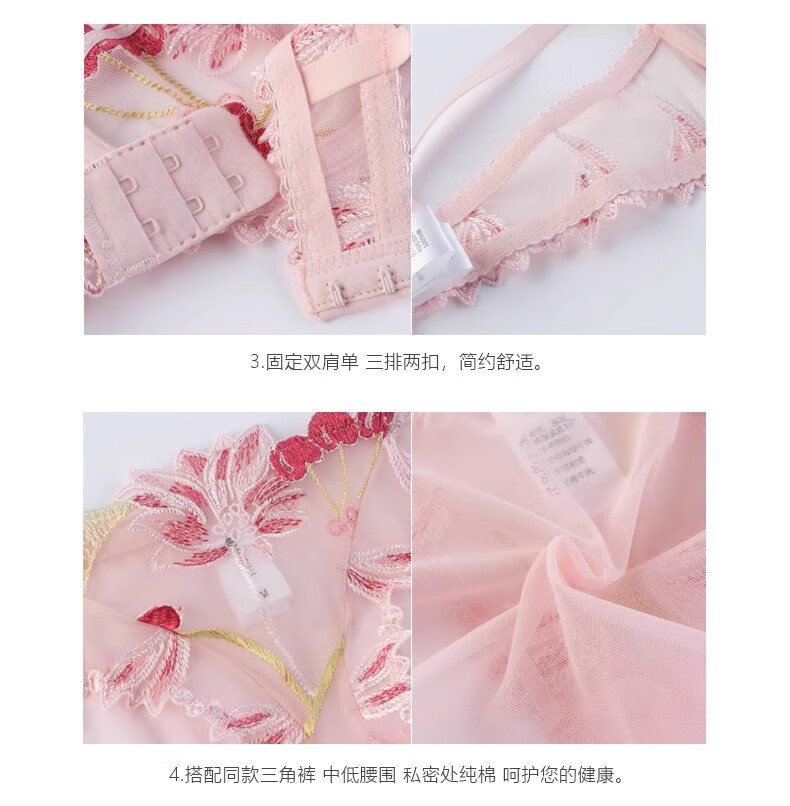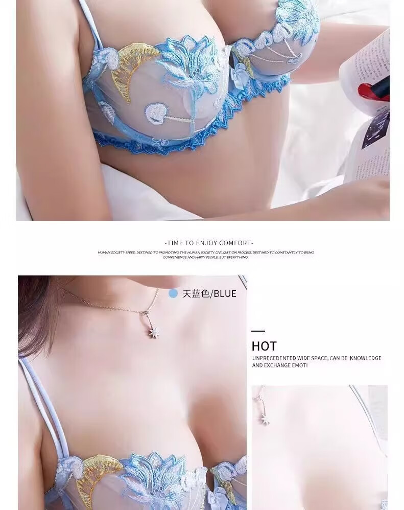 Victoria Palace Elegant Underwear Set Ultra-Thin Lace Embroidery Large Size Bra Pure Desire Transparent Sexy Bra Set Red Ultra-Thin 85D 38