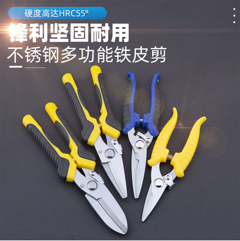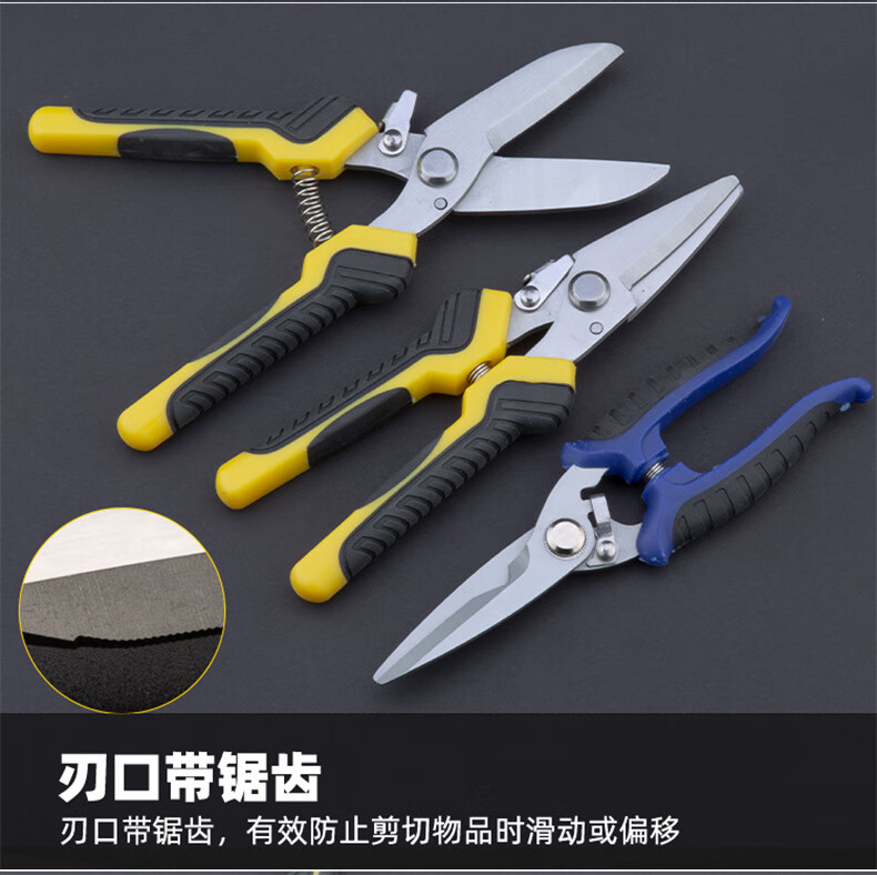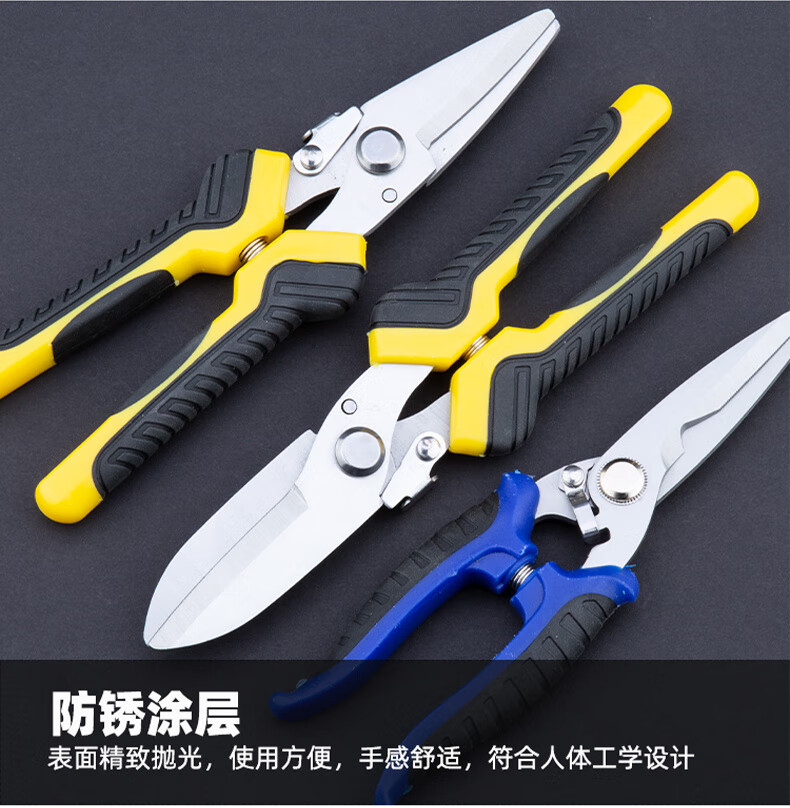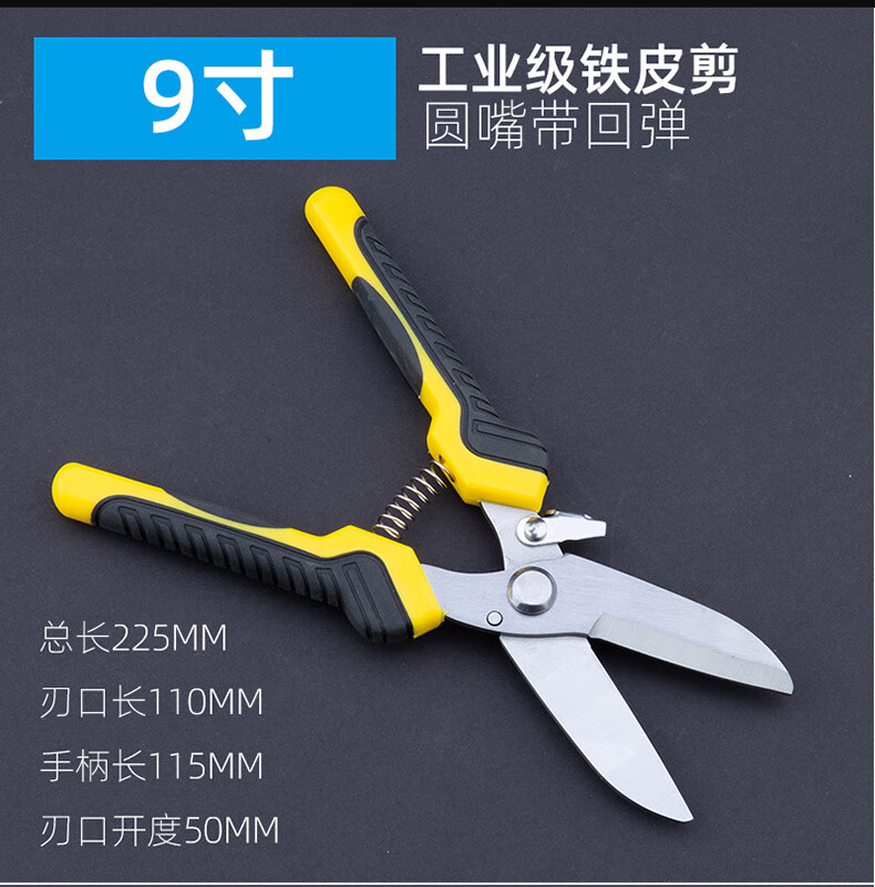 An Junsheng metal scissors, industrial scissors, powerful scissors for aluminum gusset plates, integrated ceiling panels, iron scissors, wire scissors for electricians, 9-inch round head powerful scissors