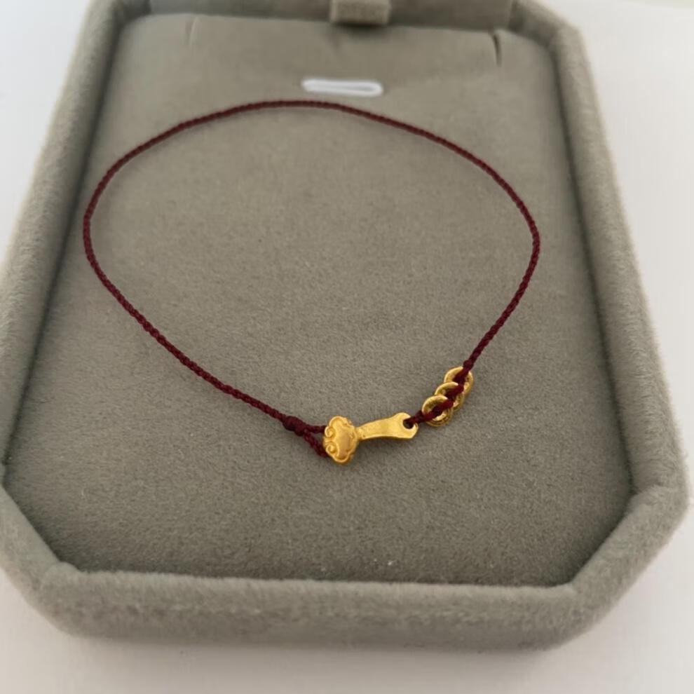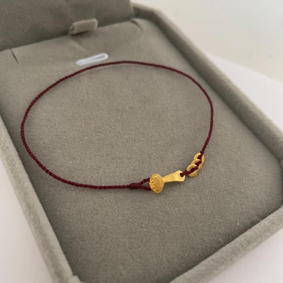 Ji Ge Xiao Ruyi's birth year is difficult red rope anklet bracelet 18K gold small separator gold handmade wine red rope wine red rope feet