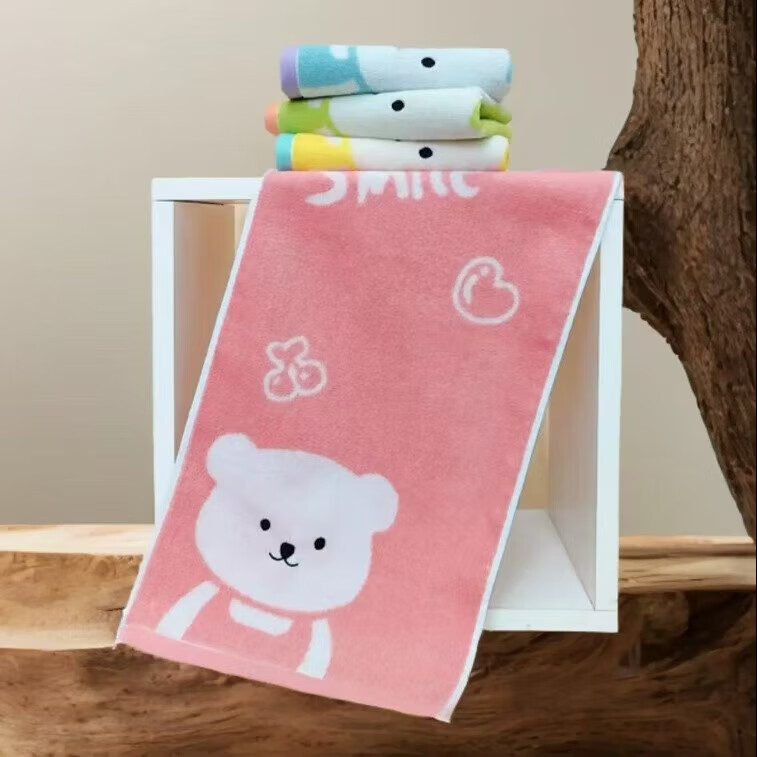 100% children's pure cotton towel baby special cartoon face washcloth cute soft absorbent embroidered high-end bear 25-50cm 1 pack shipped randomly