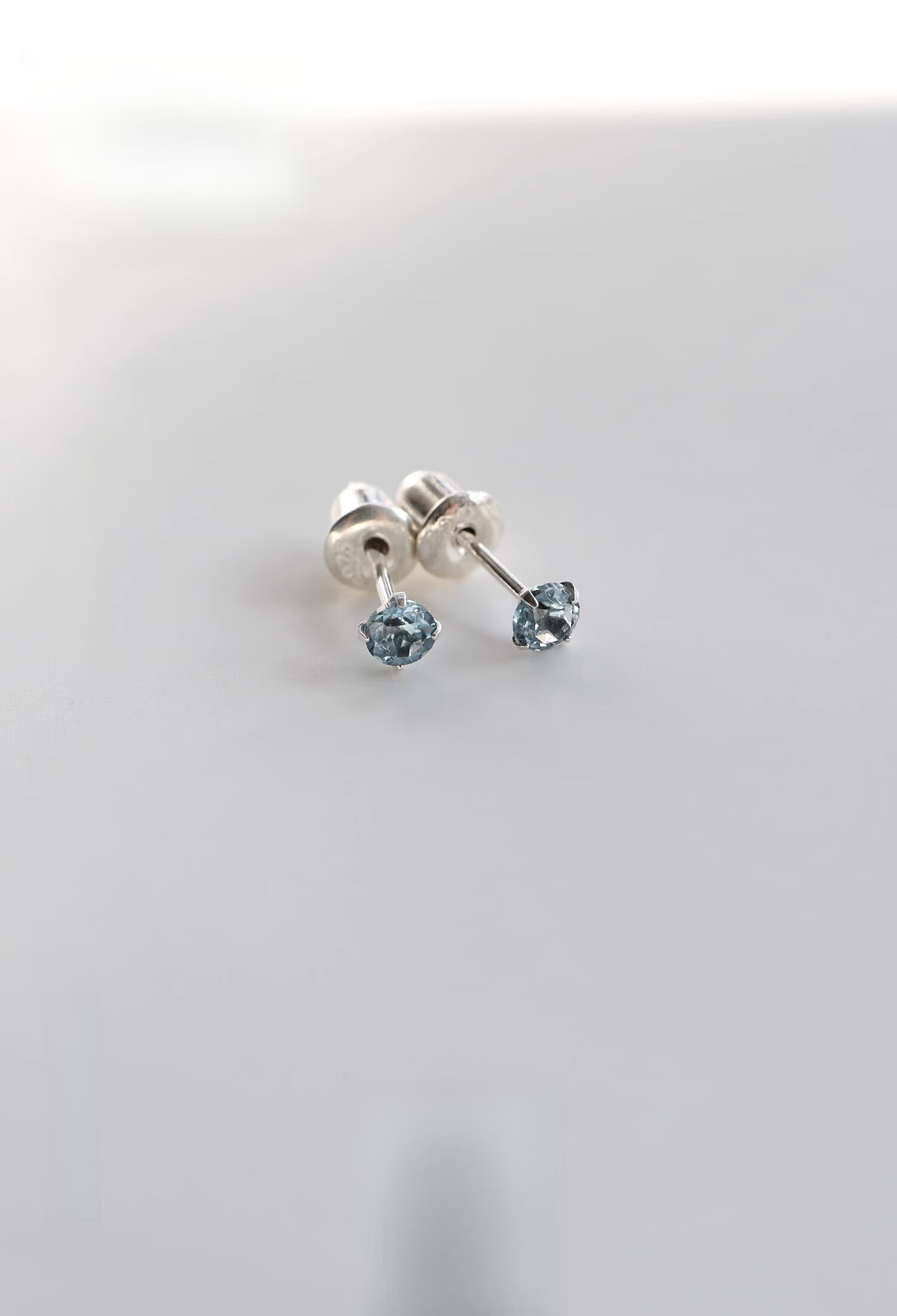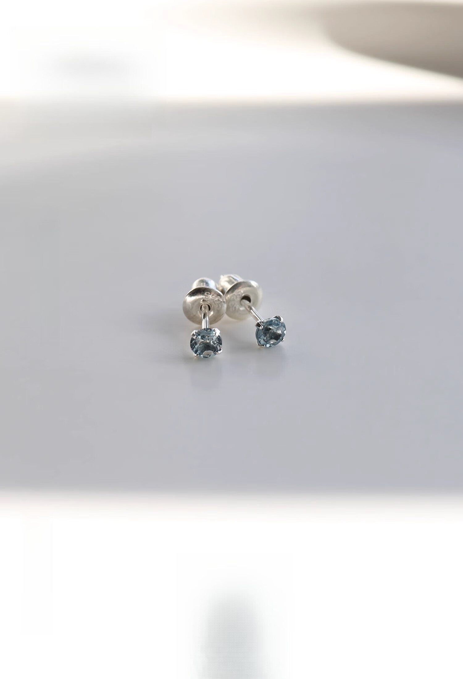Chixing Tanzanite Earrings Natural 3mm Sapphire London Blue Topaz Mini Silver Ears for Women Tanzanite Blue 3mm丨Silver Pair