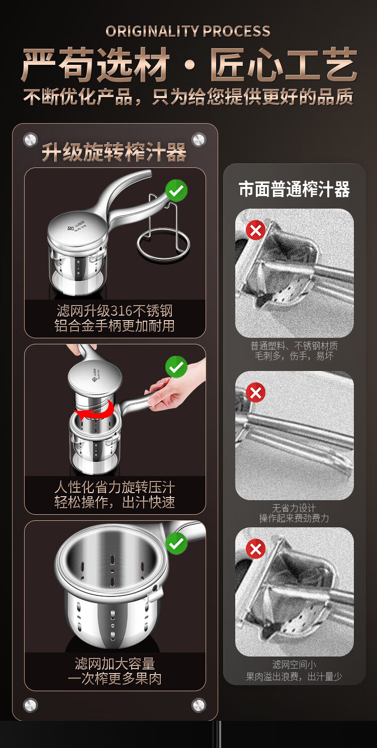 GOYN masher stainless steel grinder 316 stainless steel potato masher baby food masher