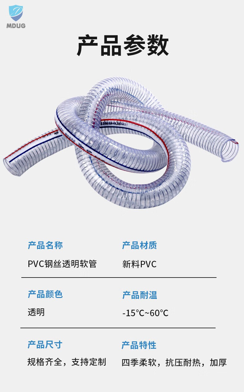 Pvc steel wire hose transparent plastic high pressure water pipe oil pipe with steel wire high temperature corrosion resistance whole roll 1/1.5/2 inch 10 meters inner diameter 16mm thick 25mm