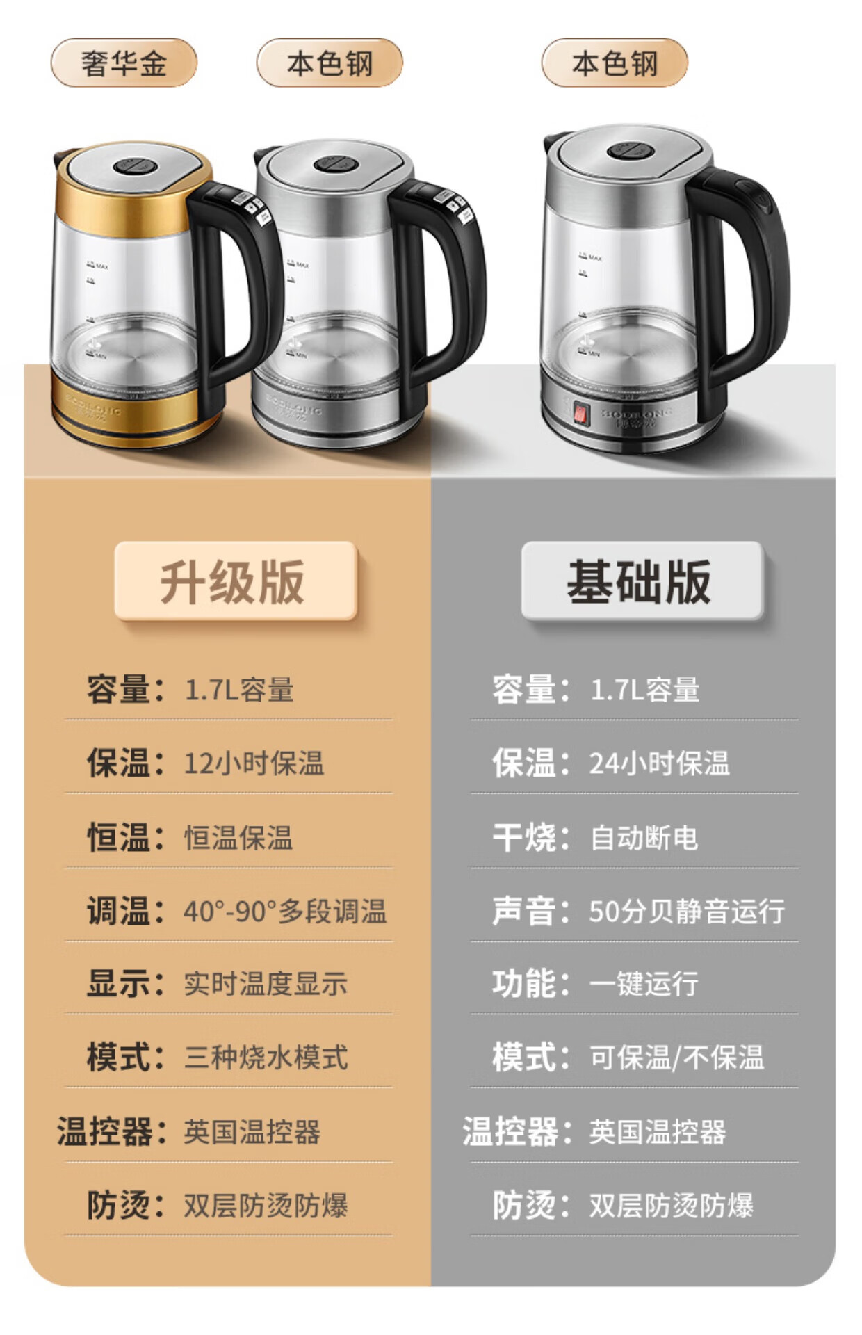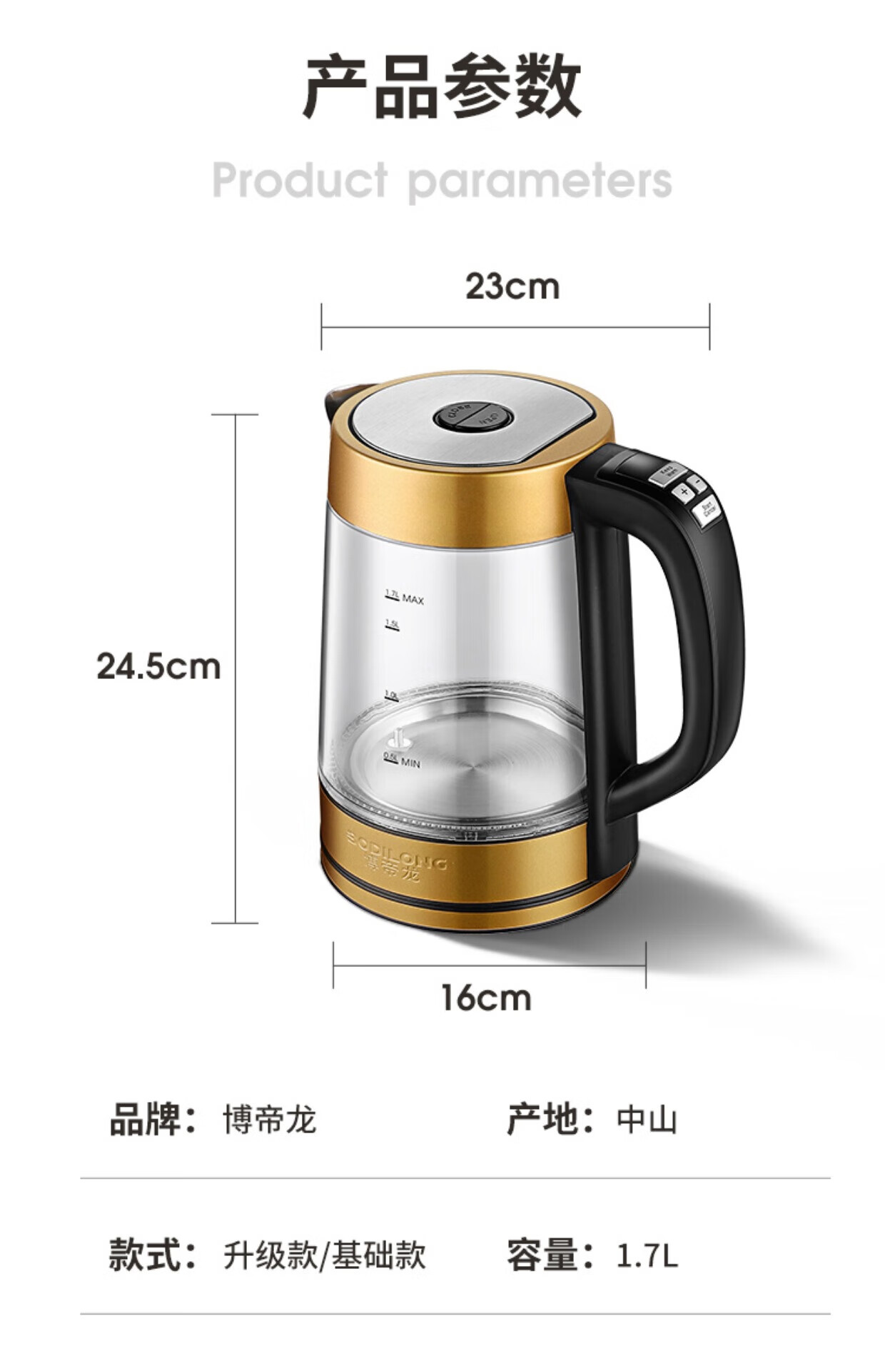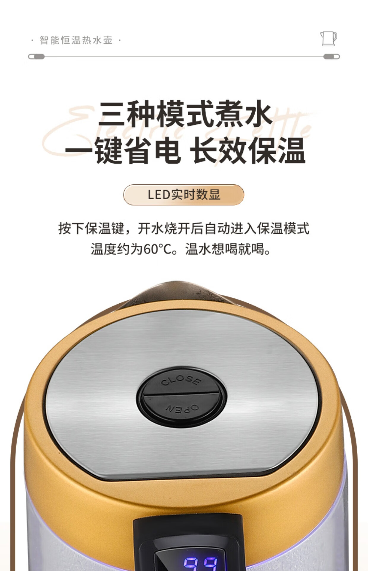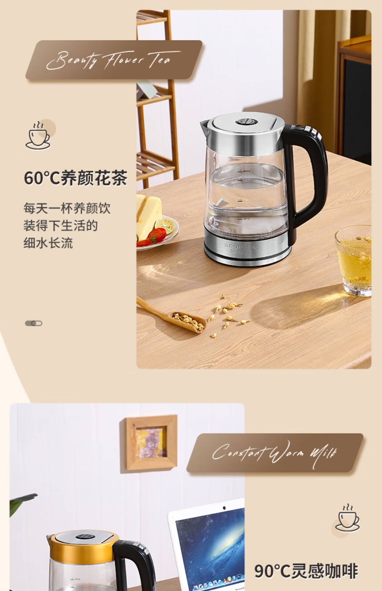 GOYN German original imported household kettle with automatic power off and insulation Bo Dilong household electric kettle with intelligent protection elegant silver + multi-stage temperature control 1.7L