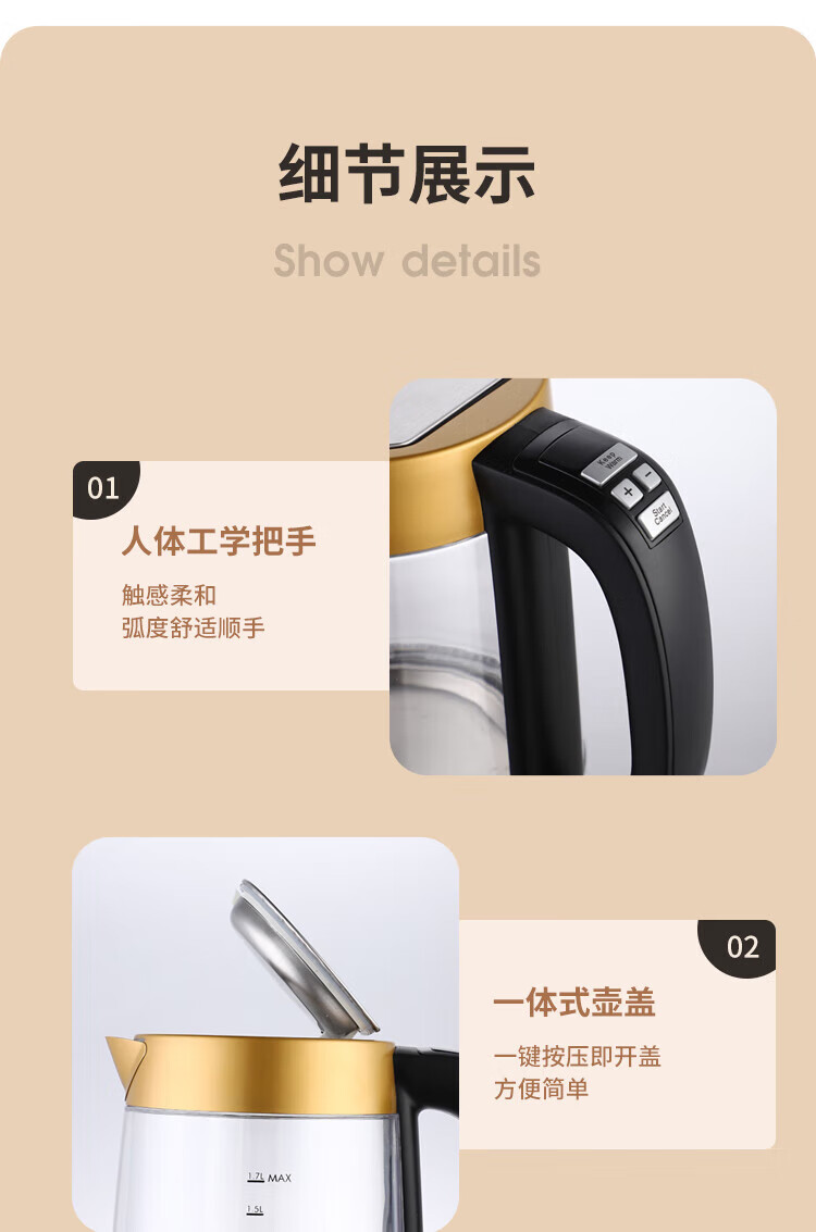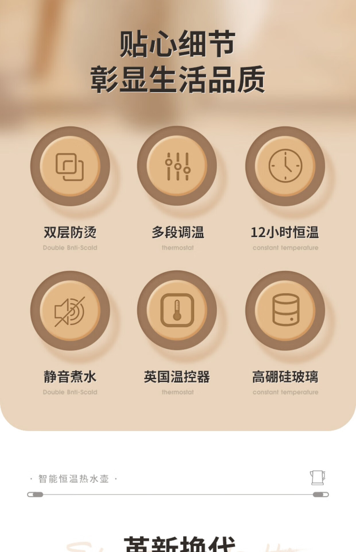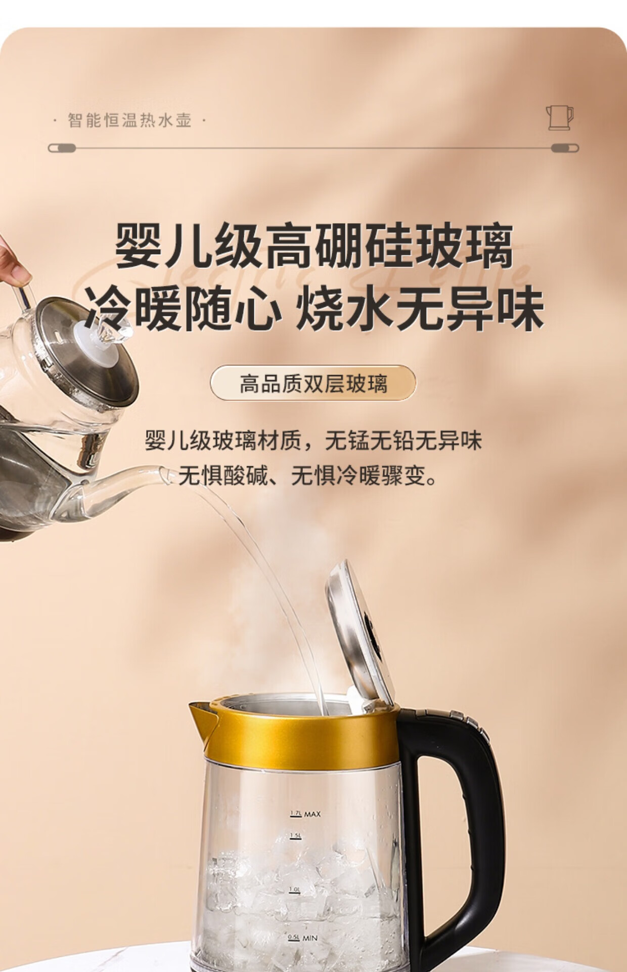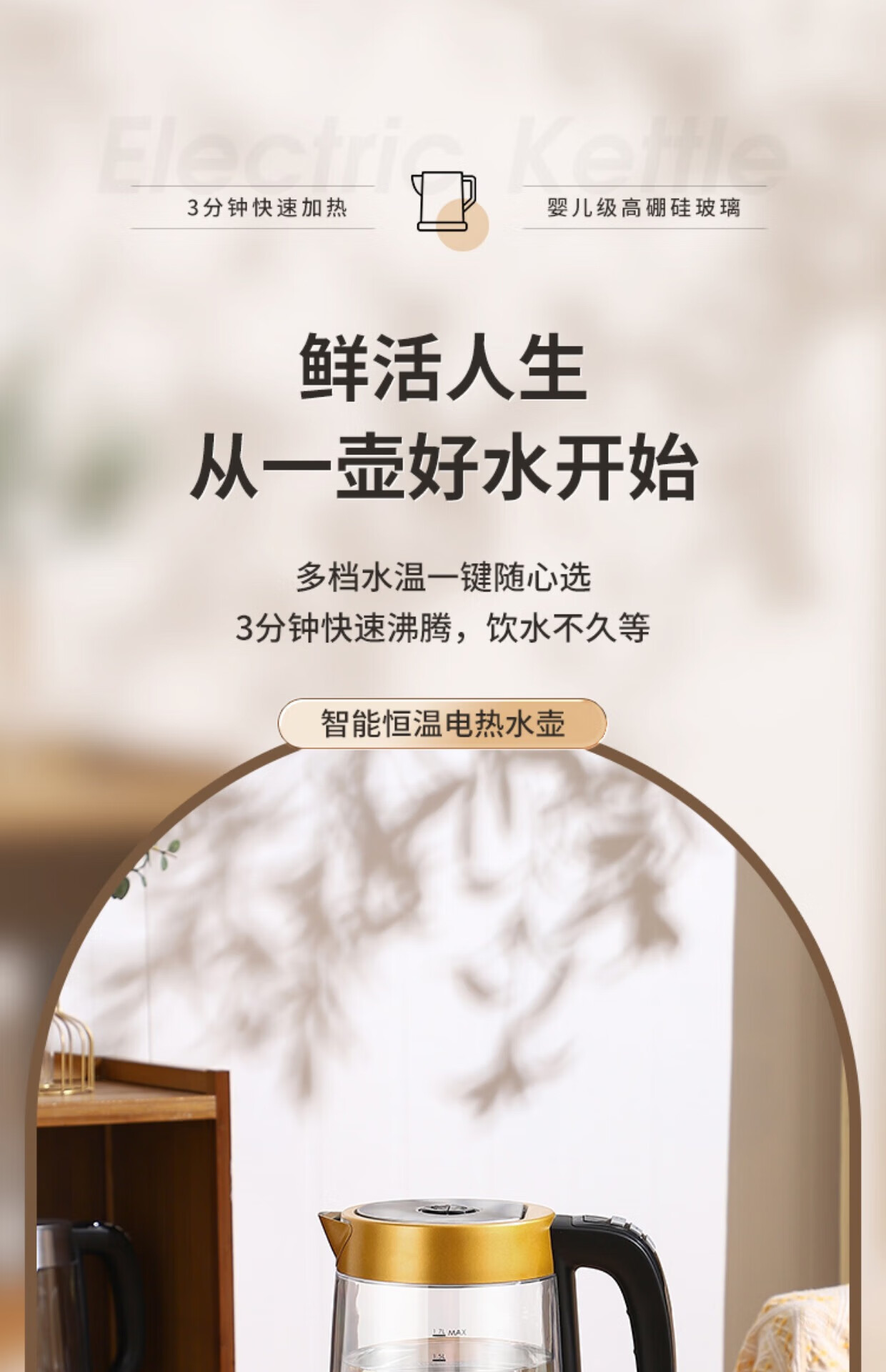 GOYN German original imported household kettle with automatic power off and insulation Bo Dilong household electric kettle with intelligent protection elegant silver + multi-stage temperature control 1.7L