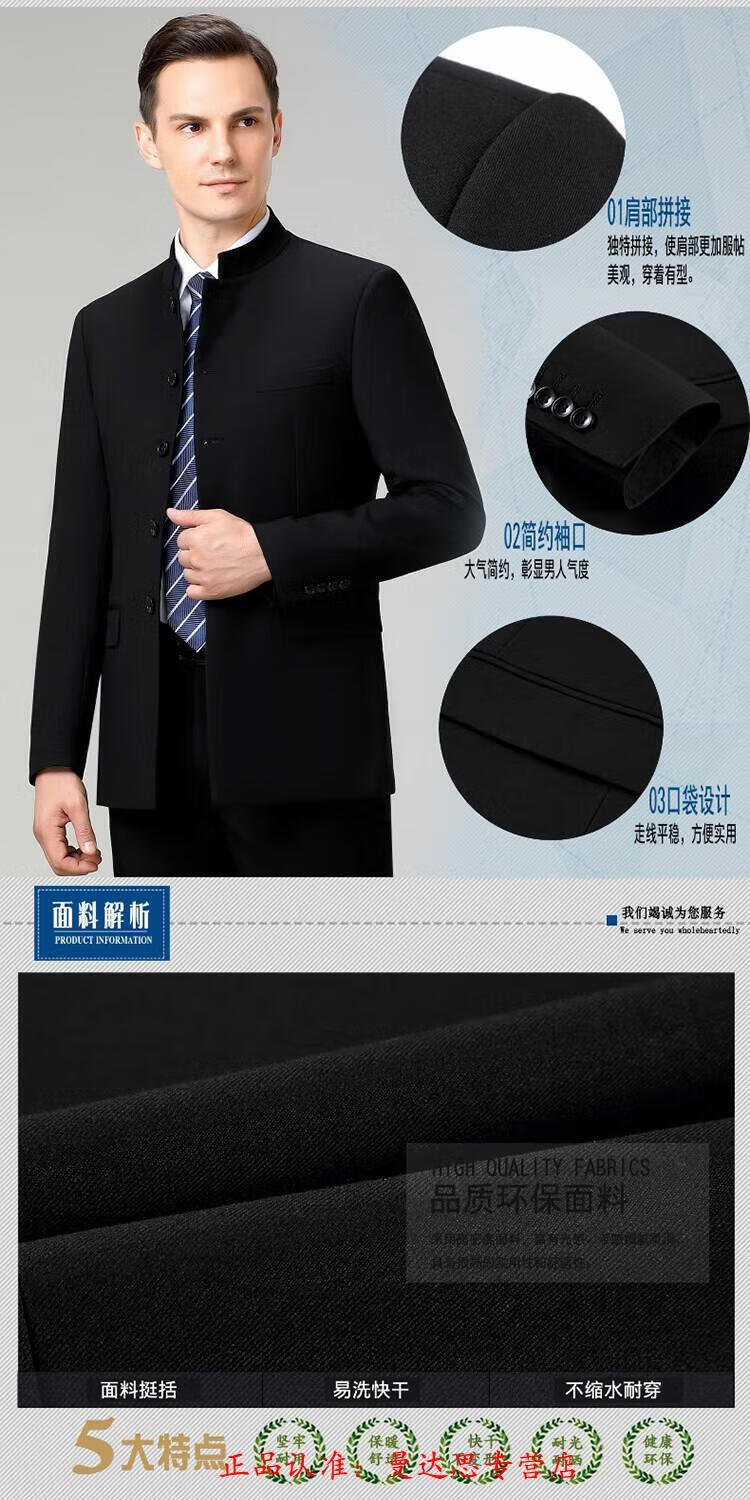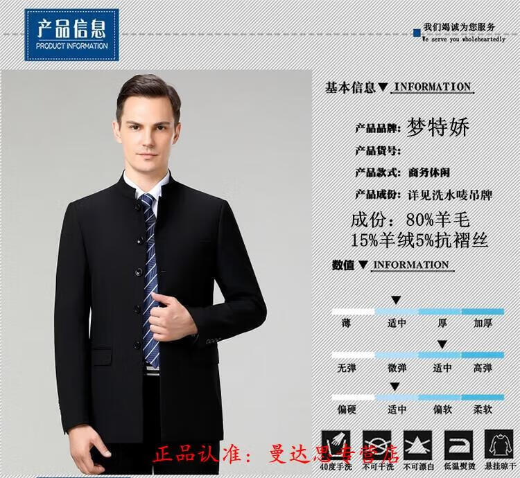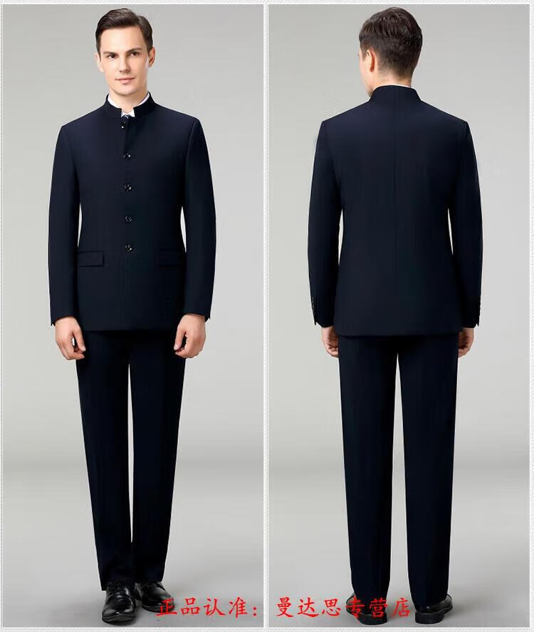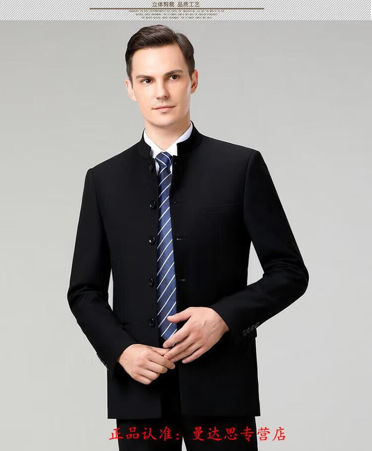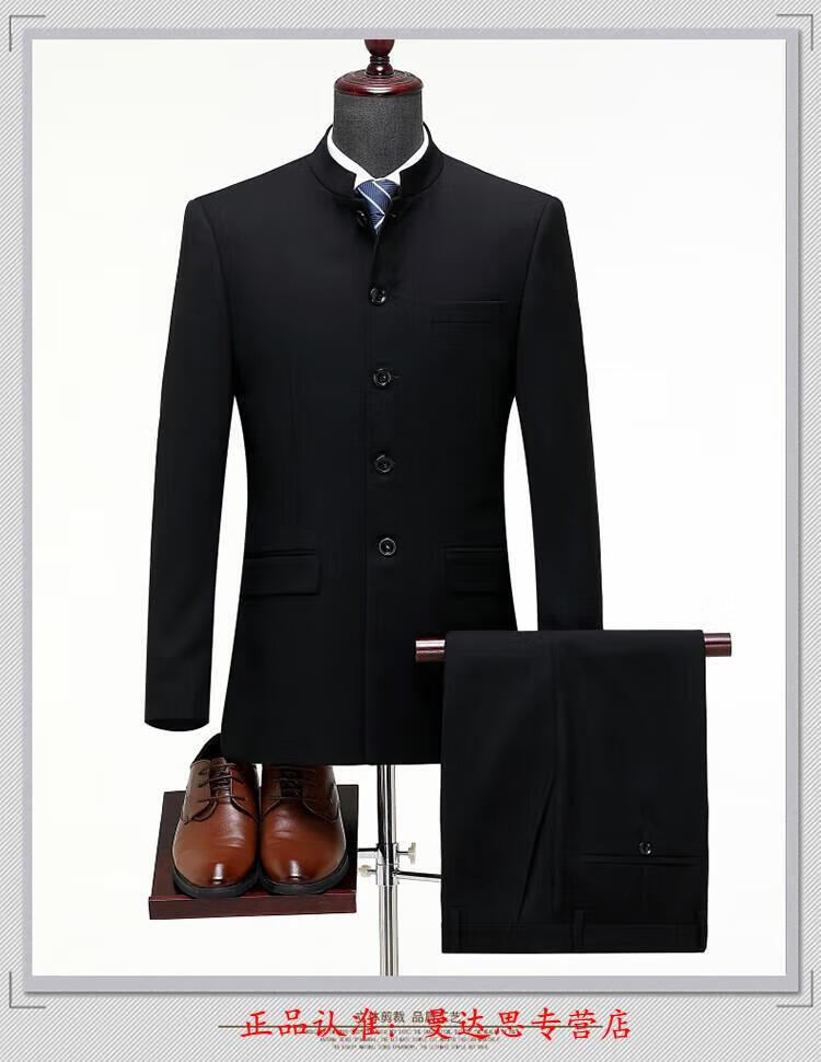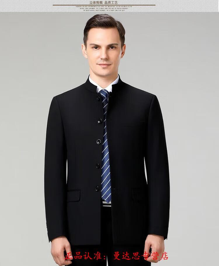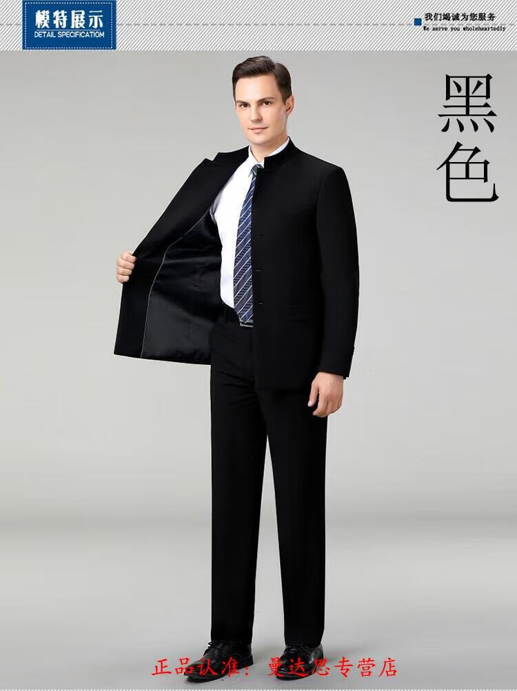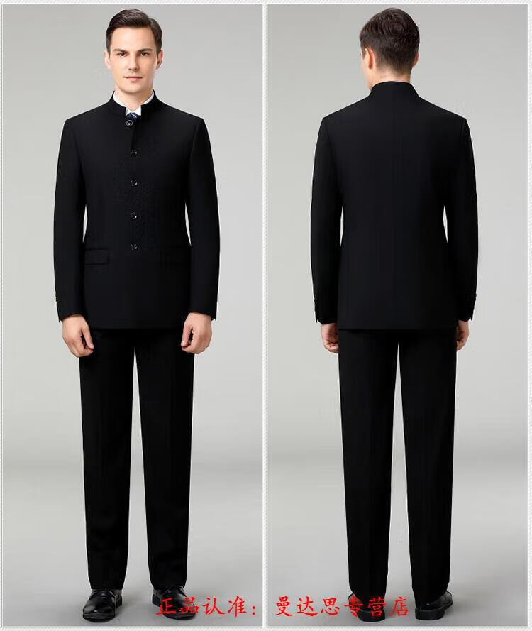 Montagut men's tunic wool suit suit middle-aged and elderly suit men's Chinese stand-up collar performance suit wedding Tang suit black two-piece suit 165/84A=46 top + pants pants