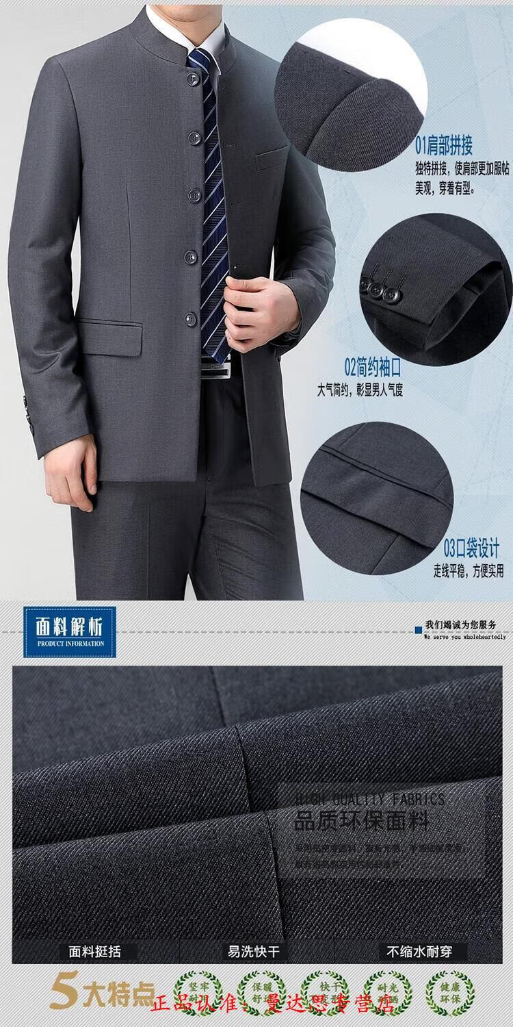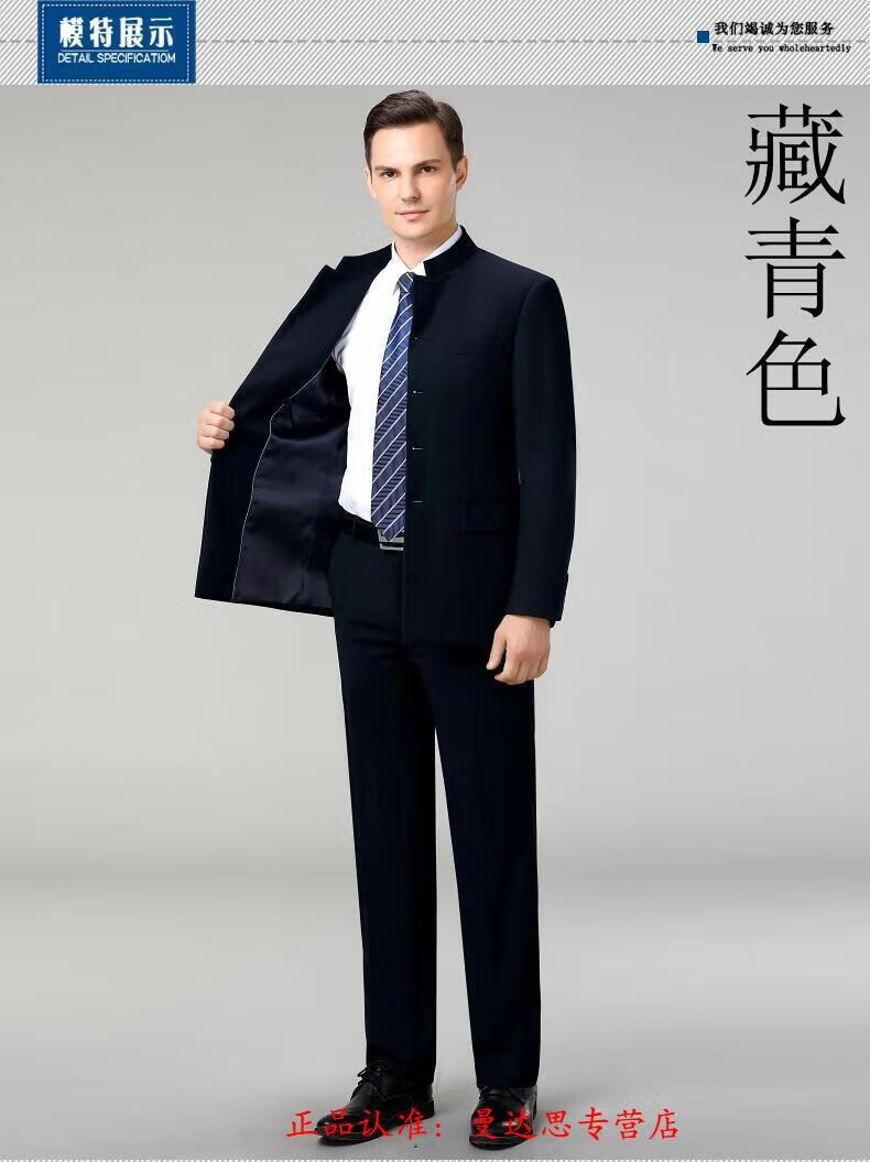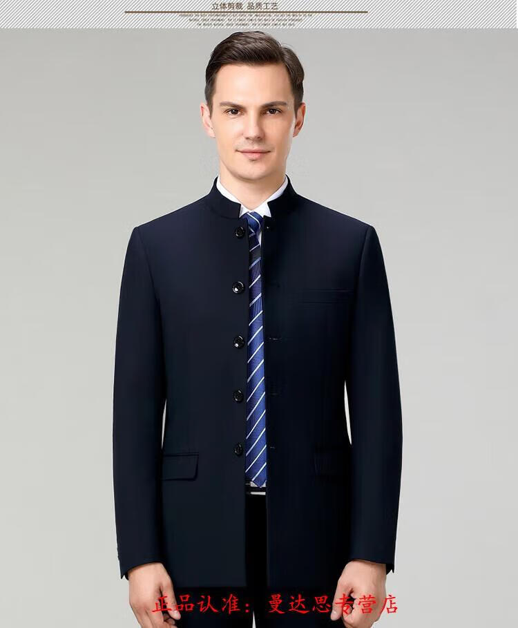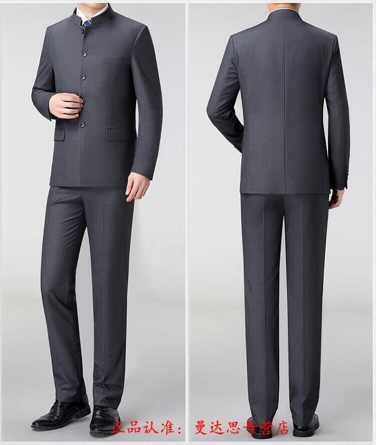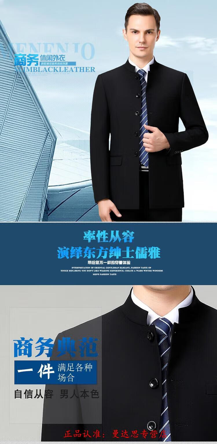 Montagut men's tunic wool suit suit middle-aged and elderly suit men's Chinese stand-up collar performance suit wedding Tang suit black two-piece suit 165/84A=46 top + pants pants