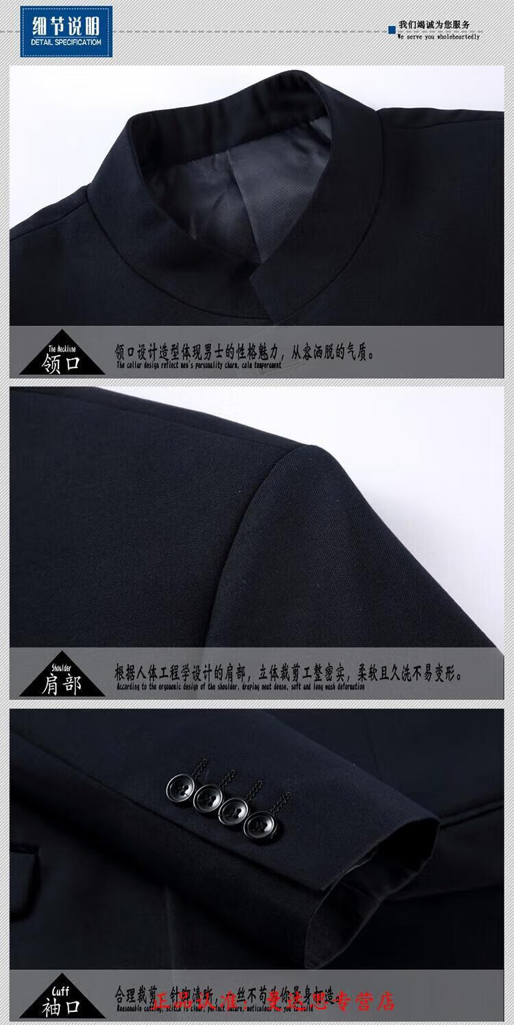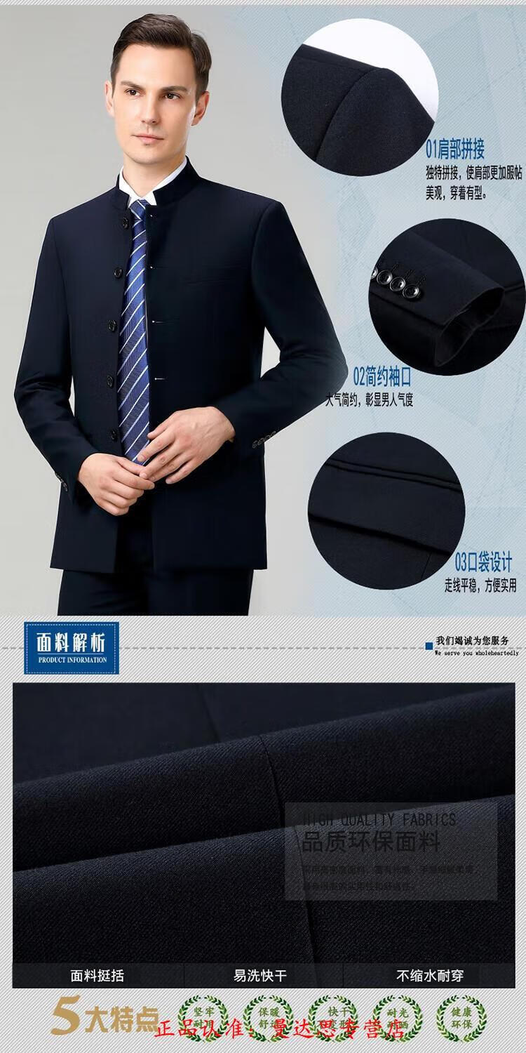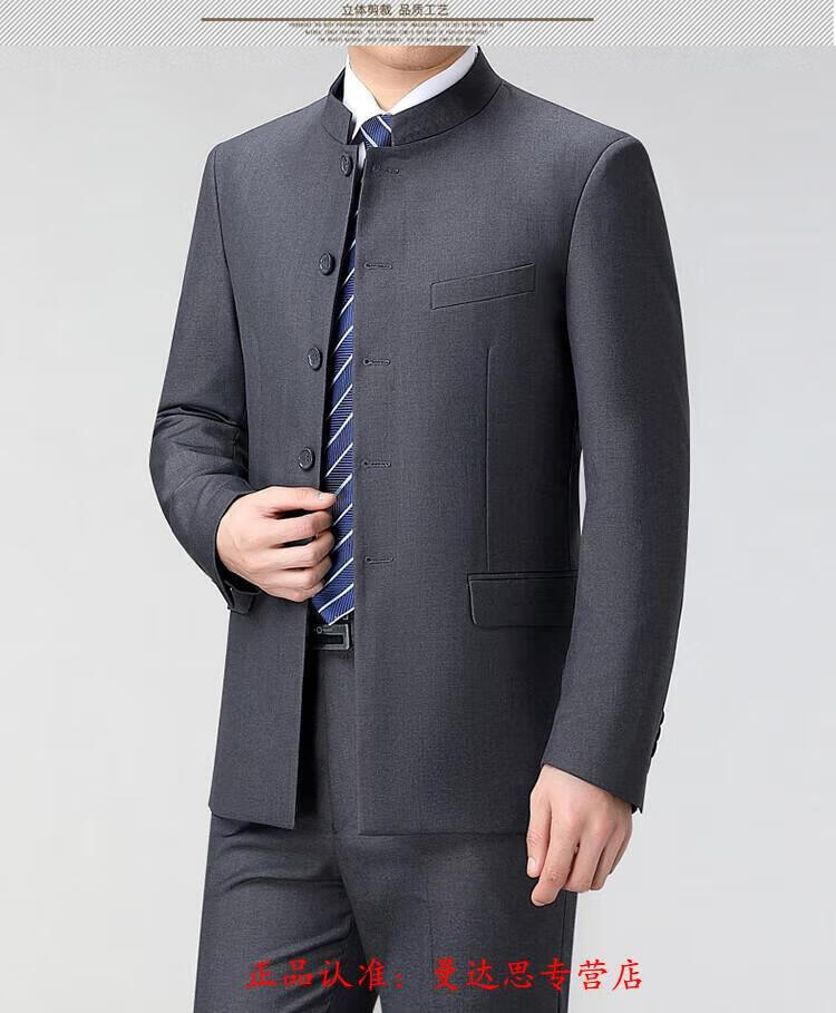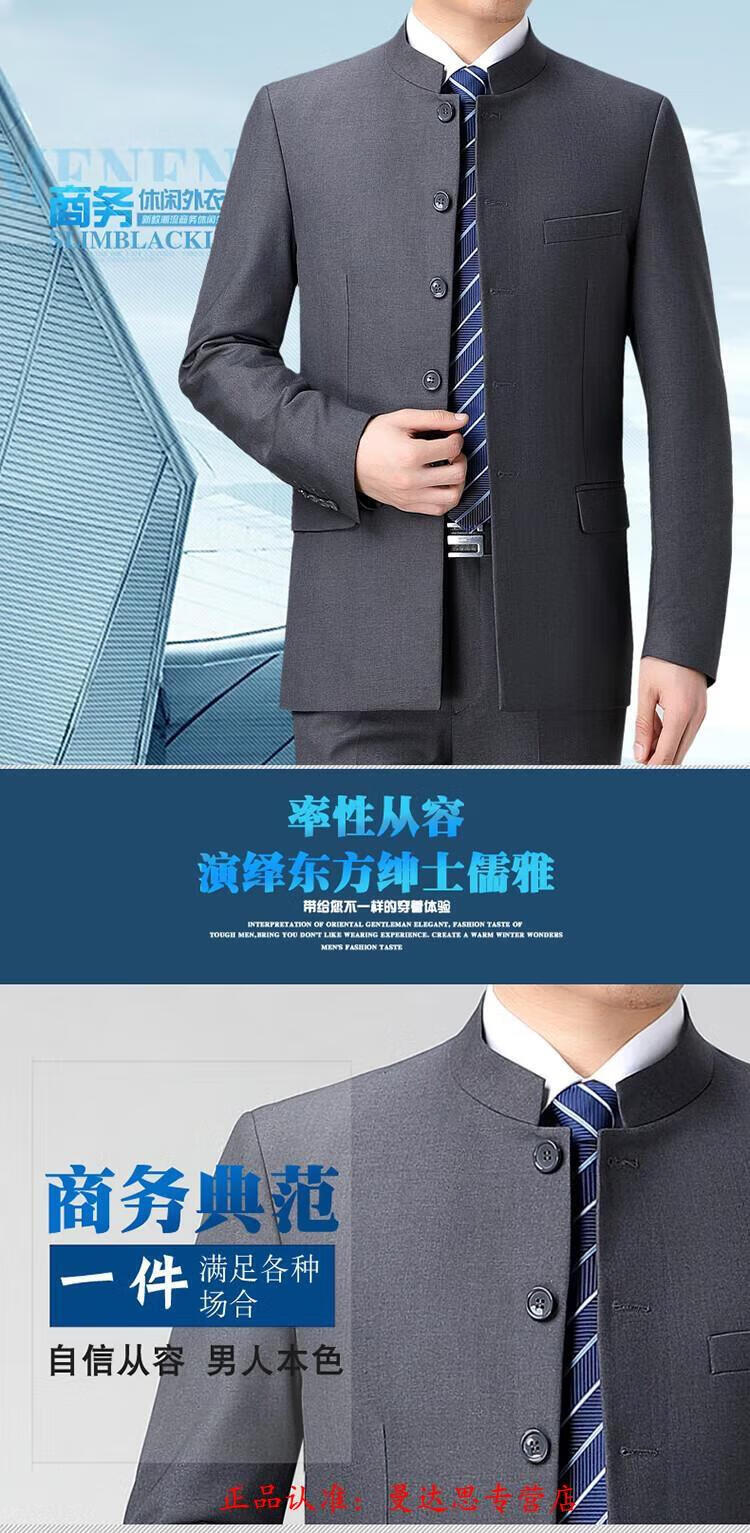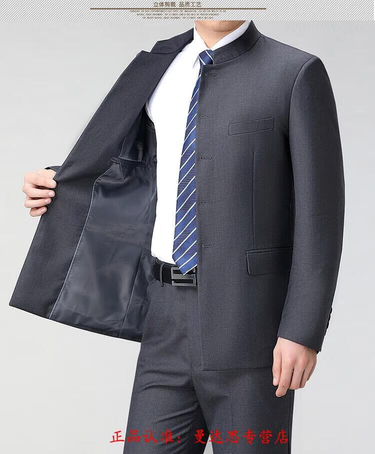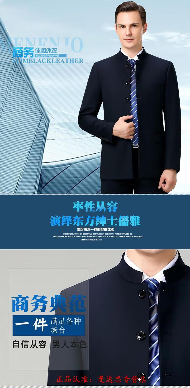 Montagut men's tunic wool suit suit middle-aged and elderly suit men's Chinese stand-up collar performance suit wedding Tang suit black two-piece suit 165/84A=46 top + pants pants
