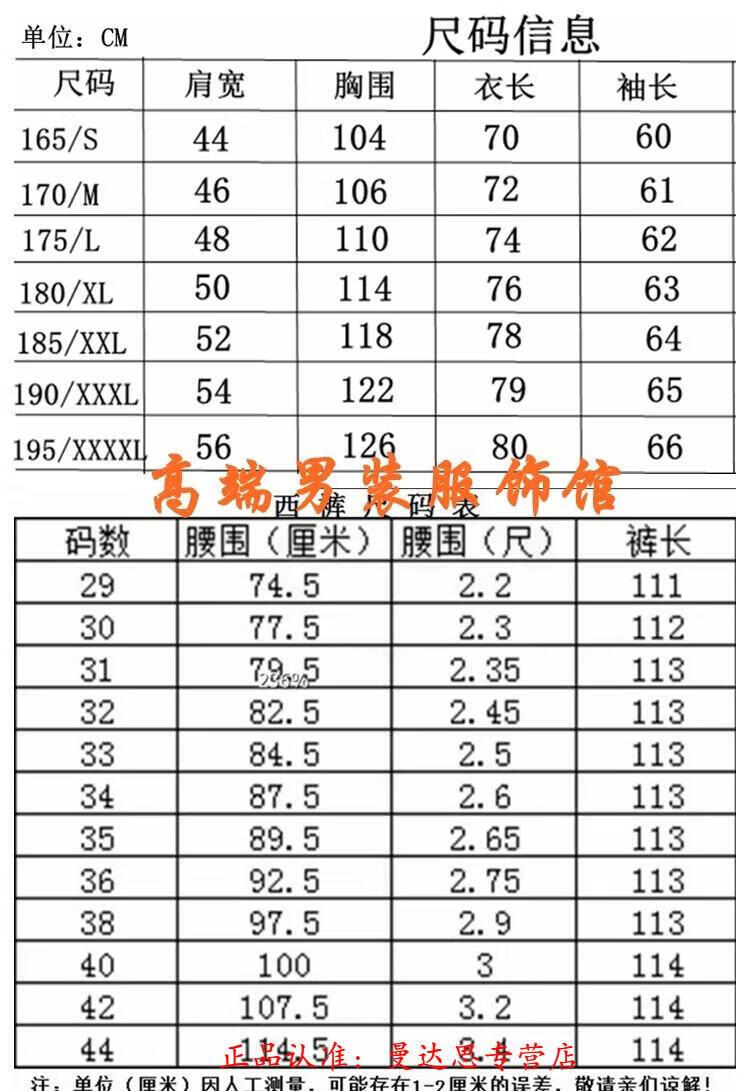 China (cm) 165 / 88-90 170 / 96-98 175 / 108-110 180 / 118-122 185 / 126-130