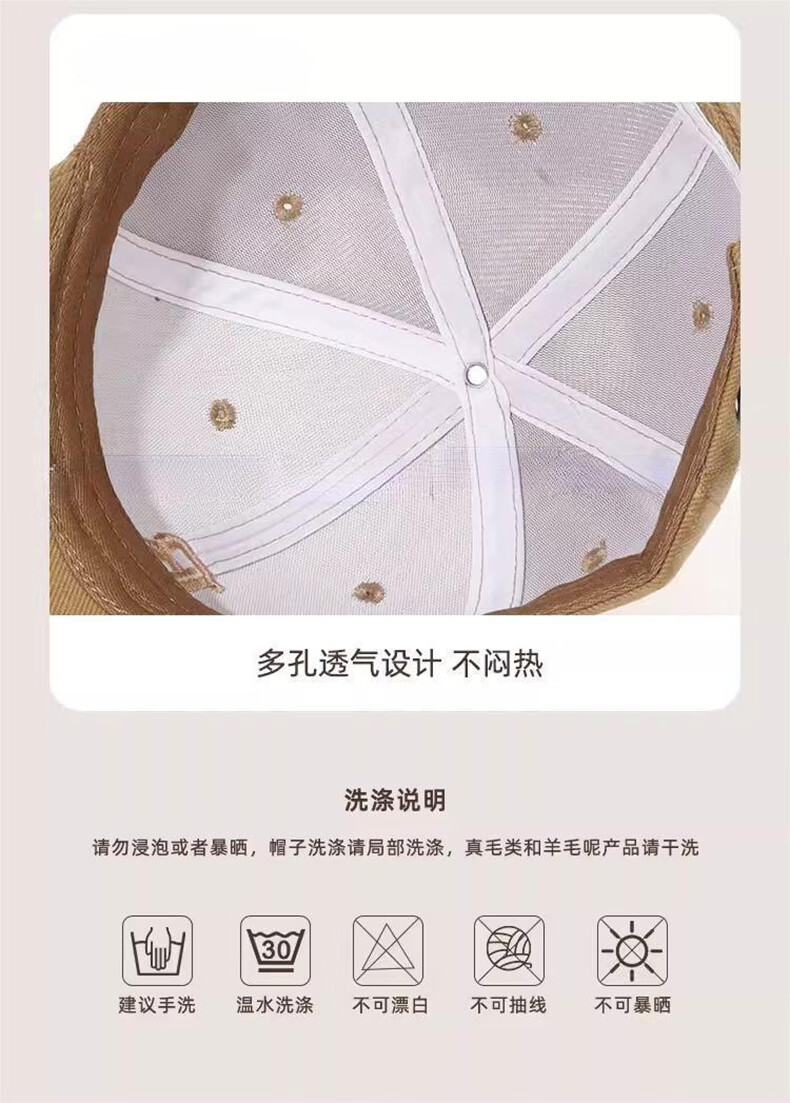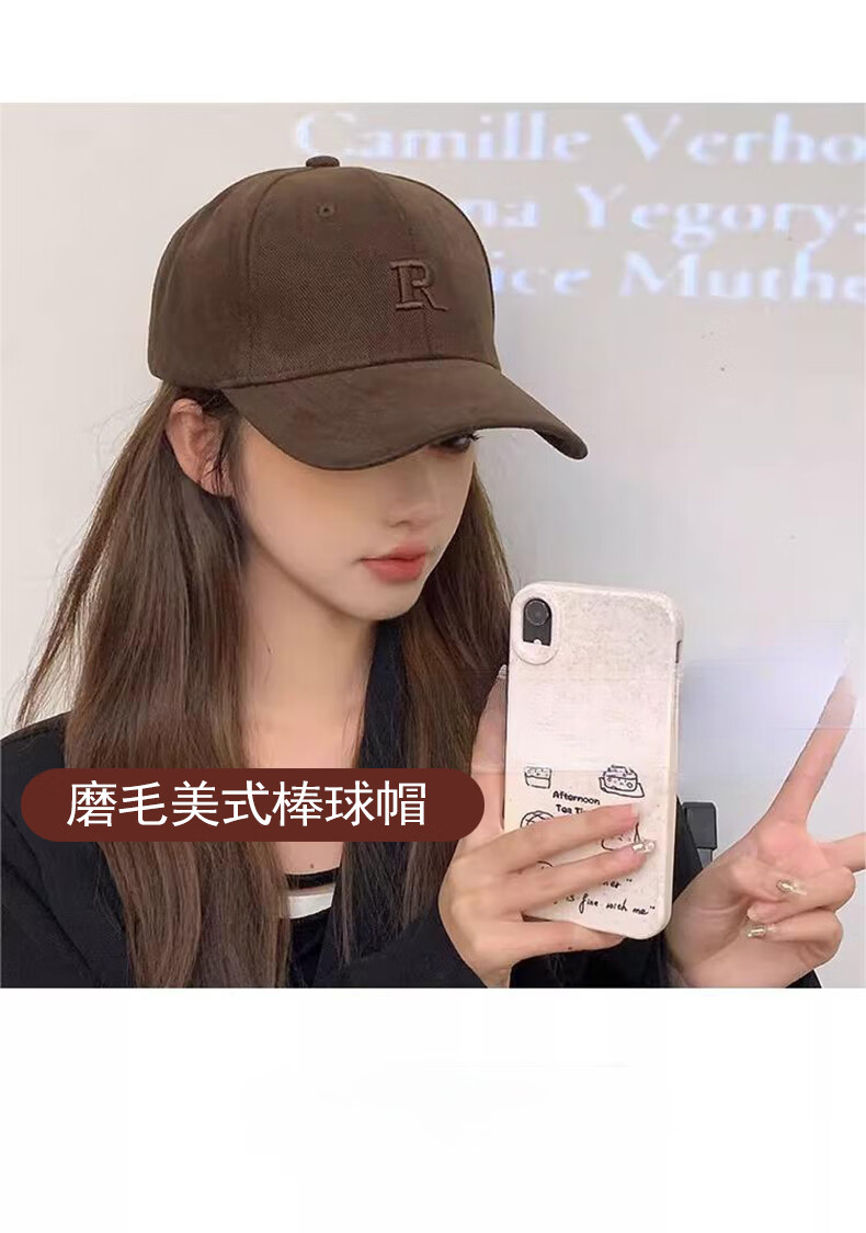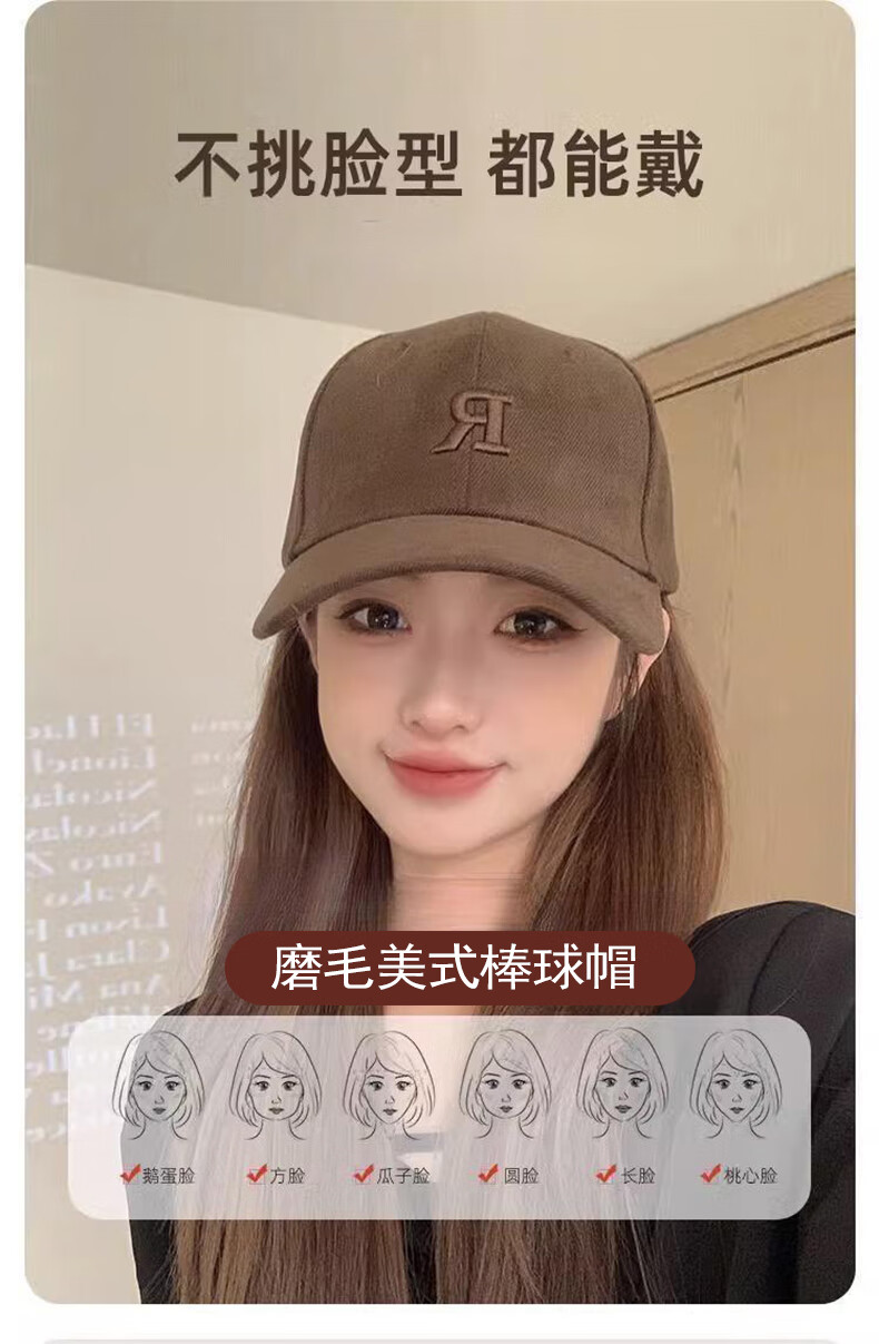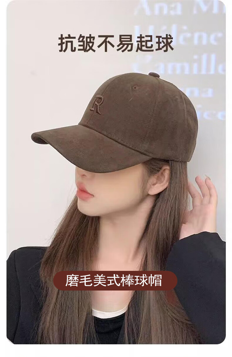 Brushed baseball cap, men's and women's high-end deep-top peaked cap, versatile all-season style, face-showing small sun visor, brown