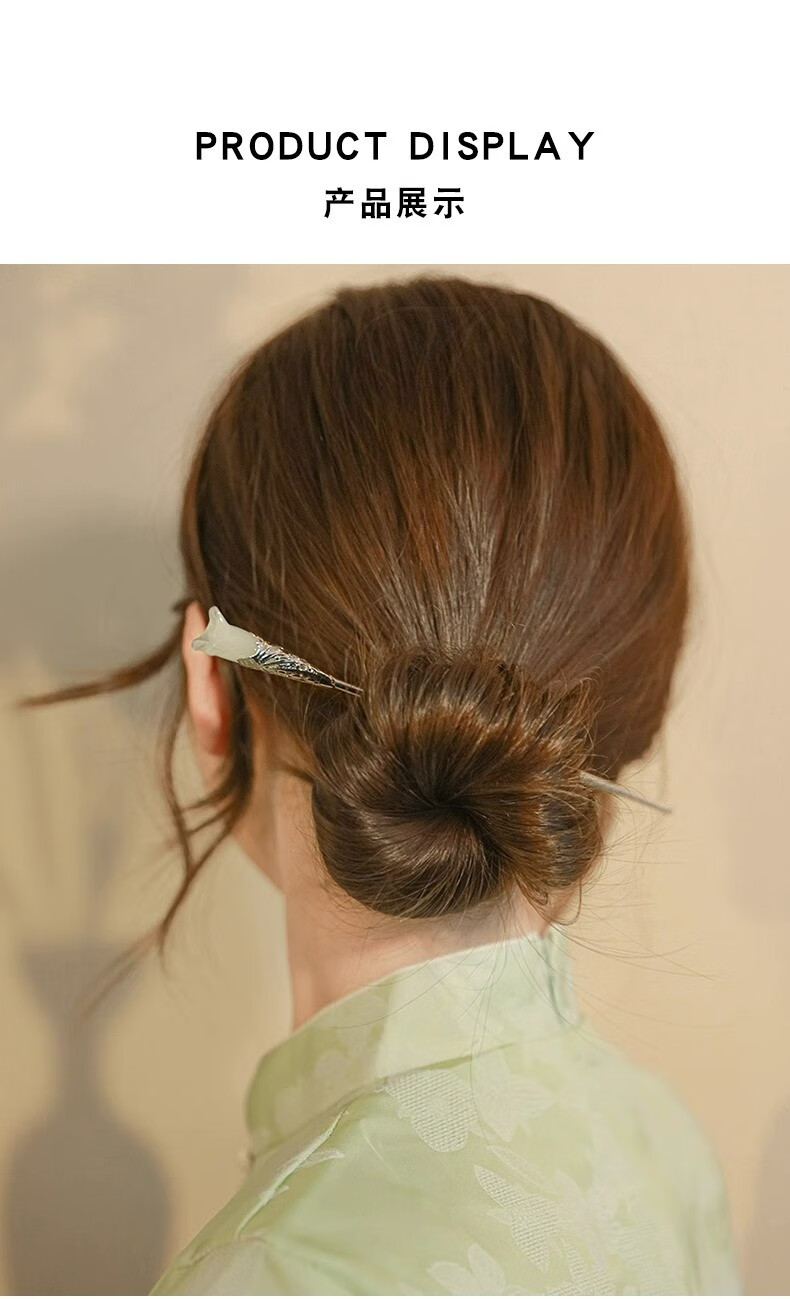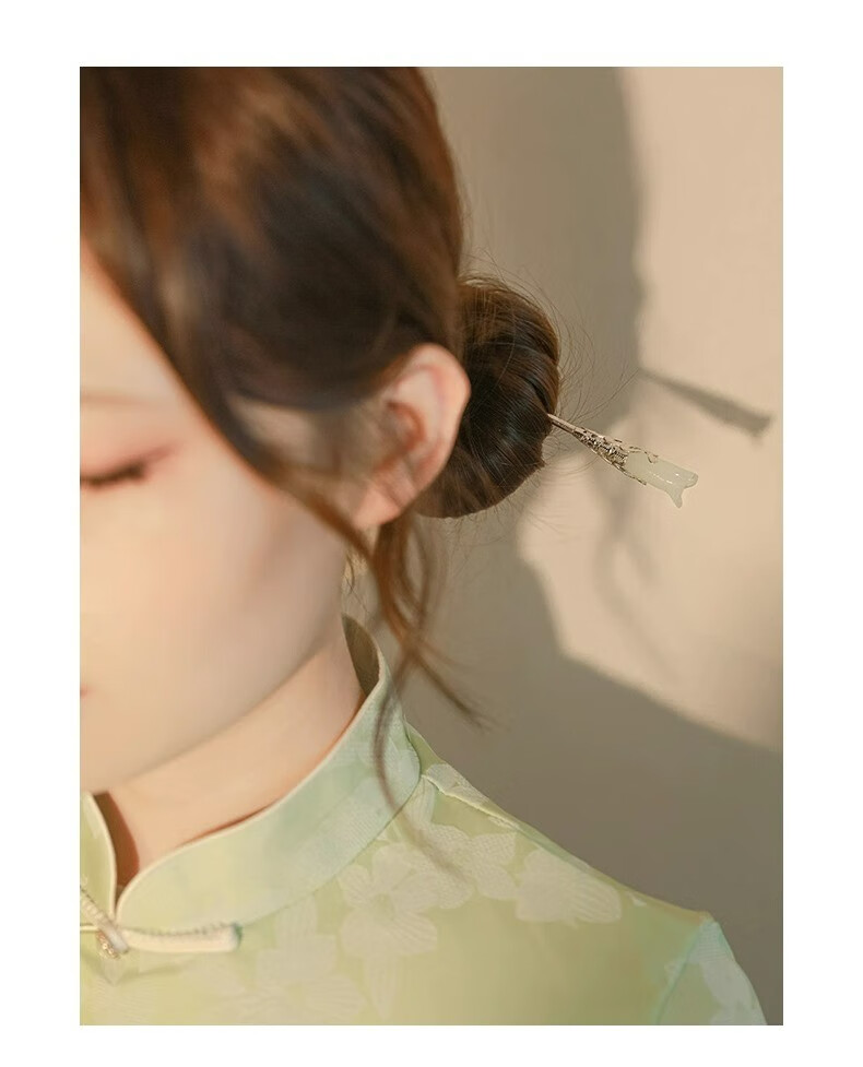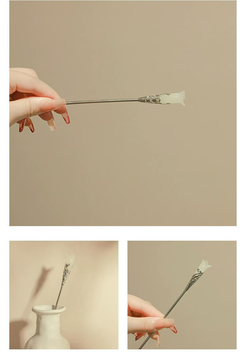 Mourou Chinese style magnolia hairpin simple modern white magnolia step shake hairpin ancient style Hanfu hairpin headdress golden branch jade hairpin A0901C
