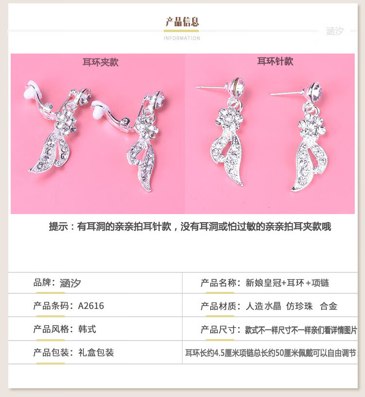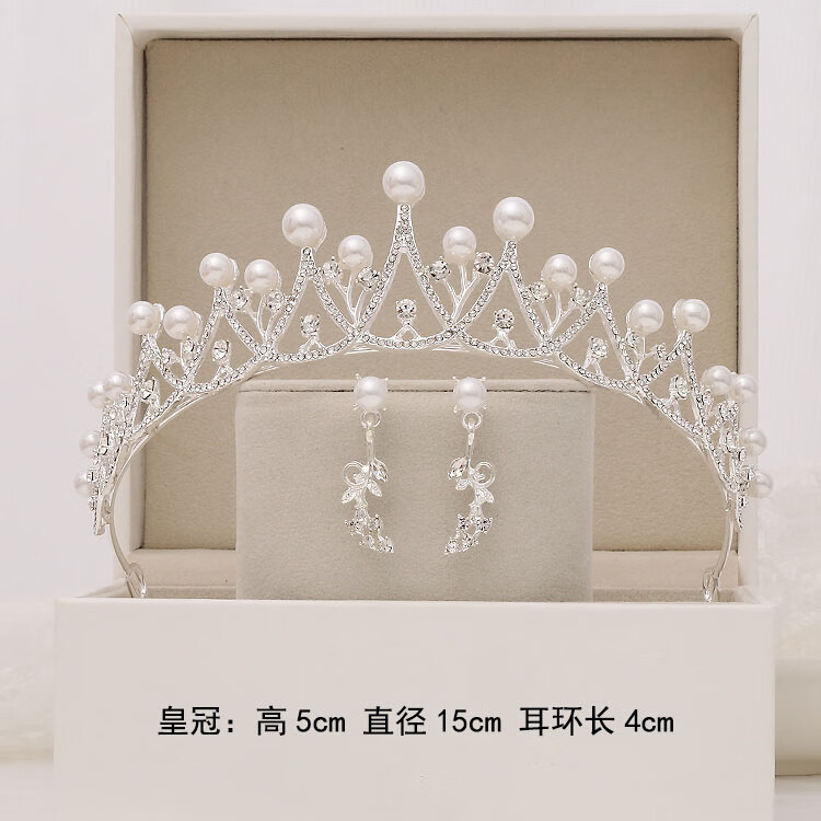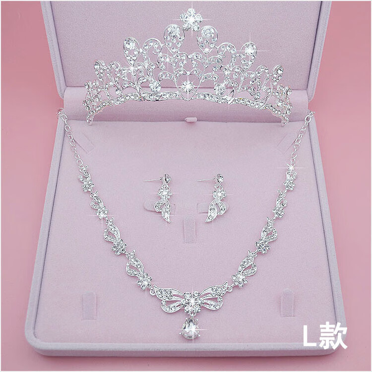 Shengli crown tiara, bridal three-piece set, veil, atmospheric forest style super fairy wedding dress, crown, birthday, internet celebrity, Korean style wedding girl, A style three-piece set, ear acupuncture gift box