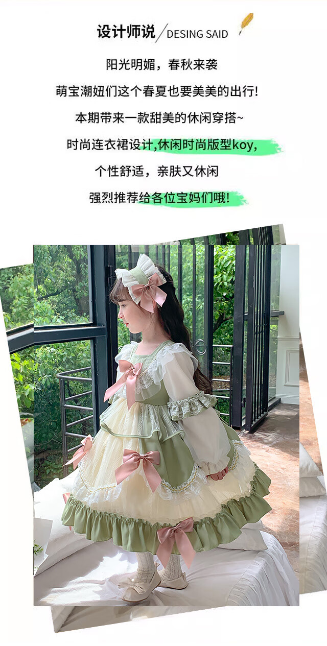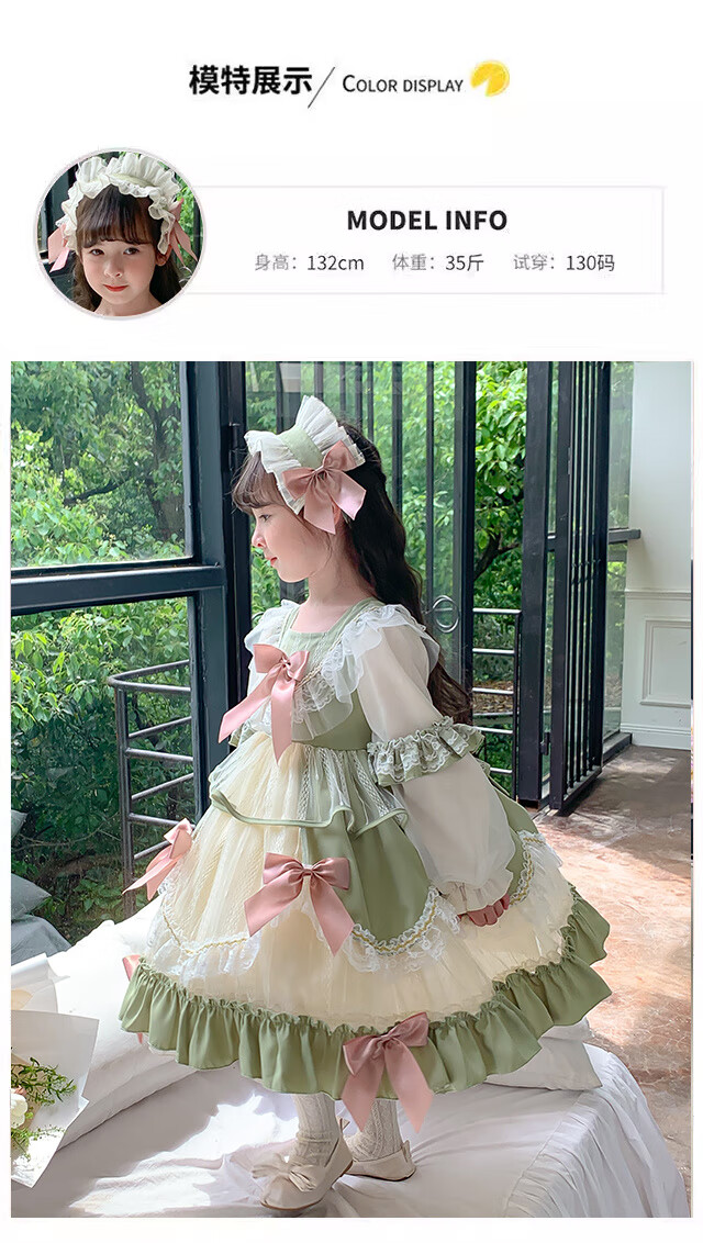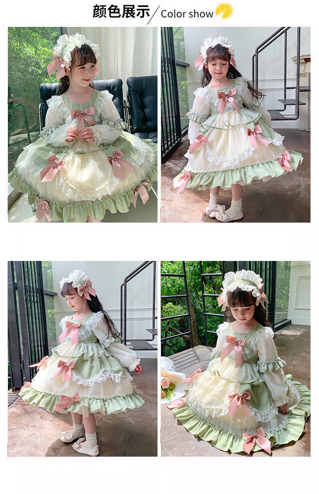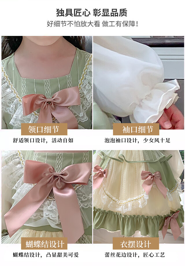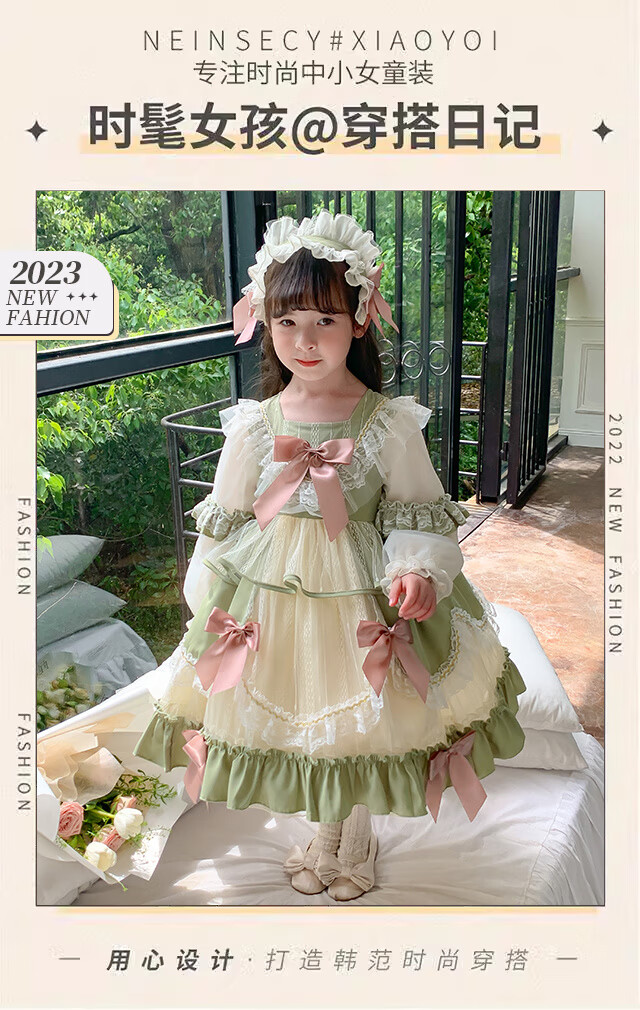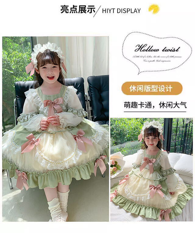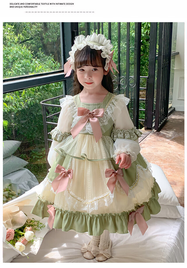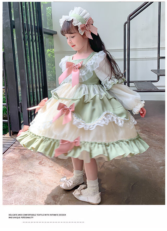 Ye Yu Girls Autumn and Winter Lolita Princess Dress Baby Girl Cute Sweet Birthday Dress Dress Children's Dress New Fashion 101 Green Separate Skirt 100