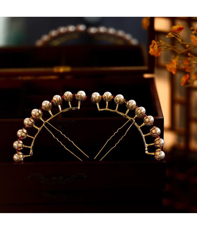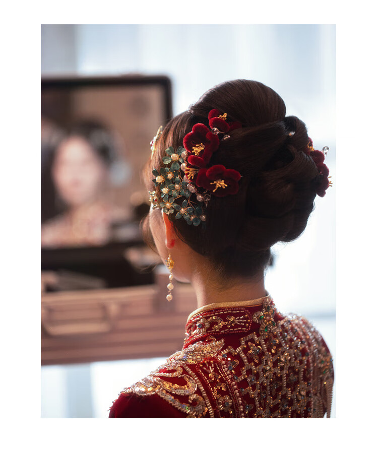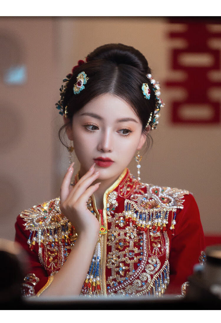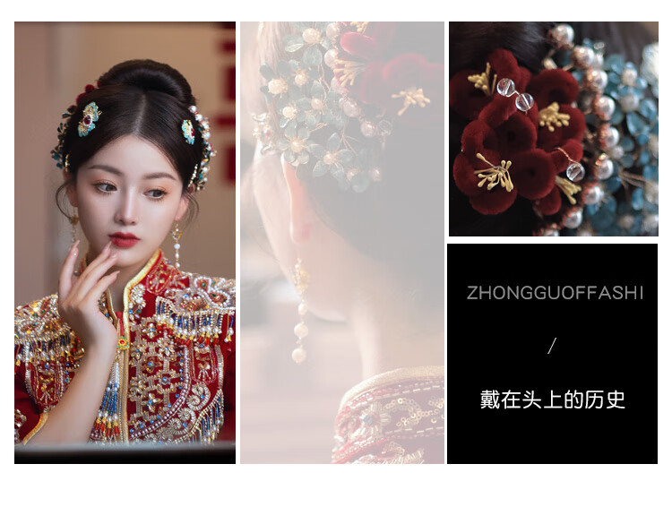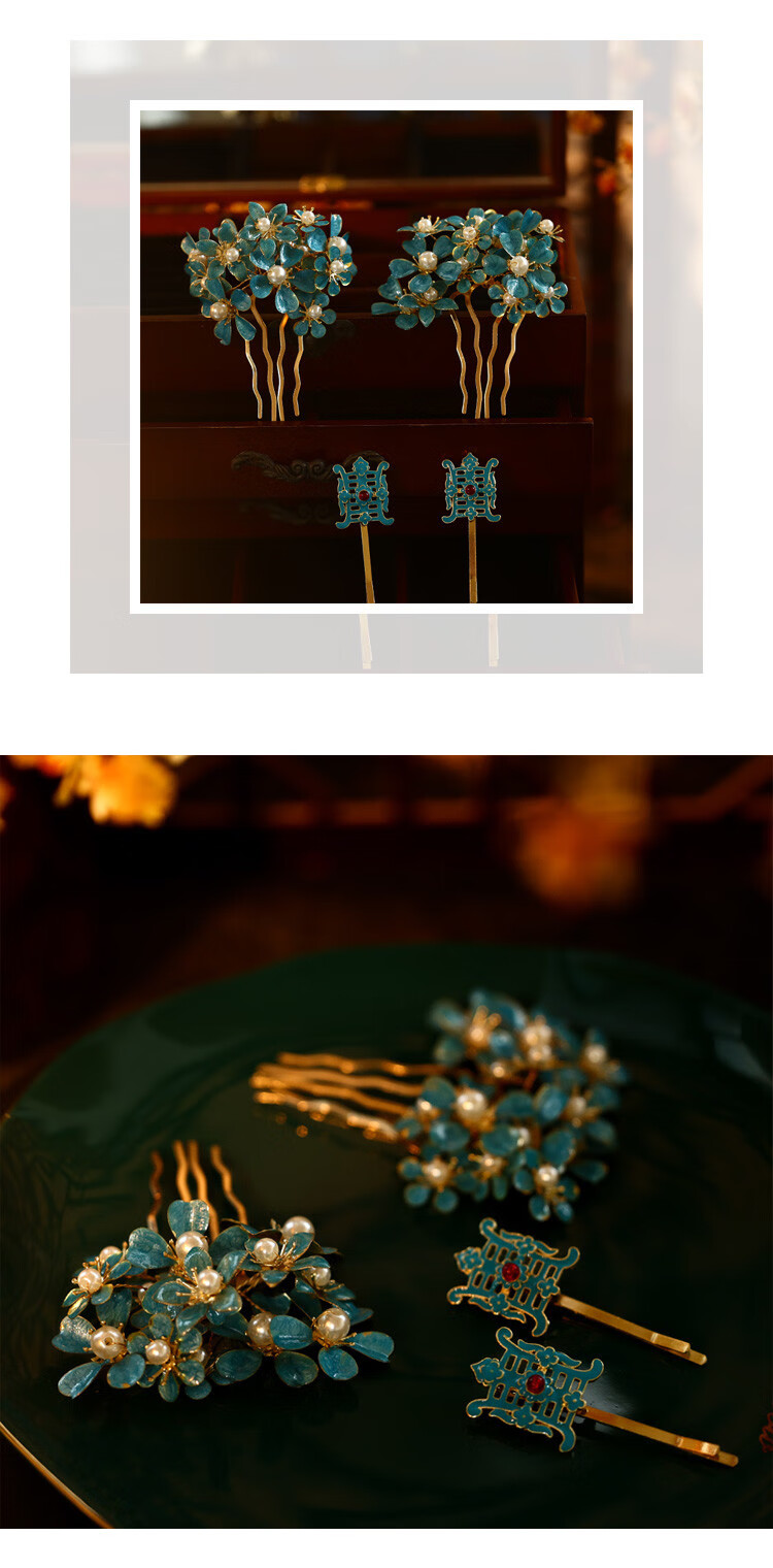 Shengli Chinese antique hair accessories handmade velvet flower small set embellished multi-purpose Xiuhe clothing ancient costume hair accessories bridal headdress 4 velvet flowers + a pair of butterfly hairpins 6-piece set