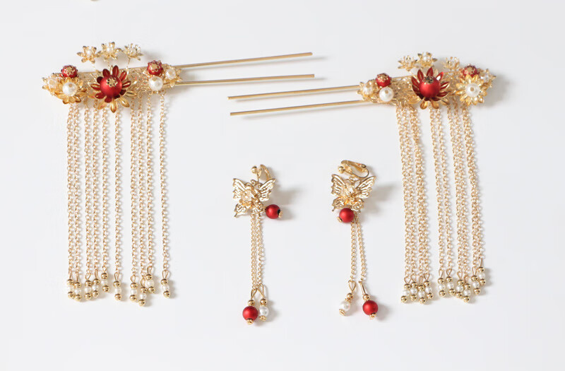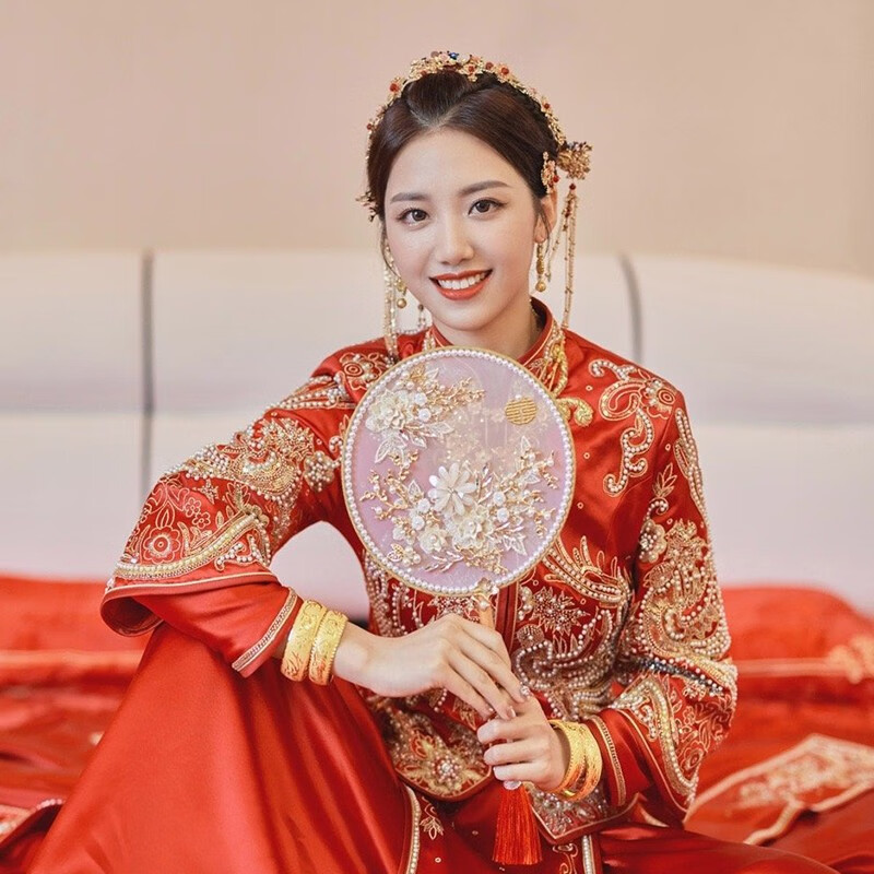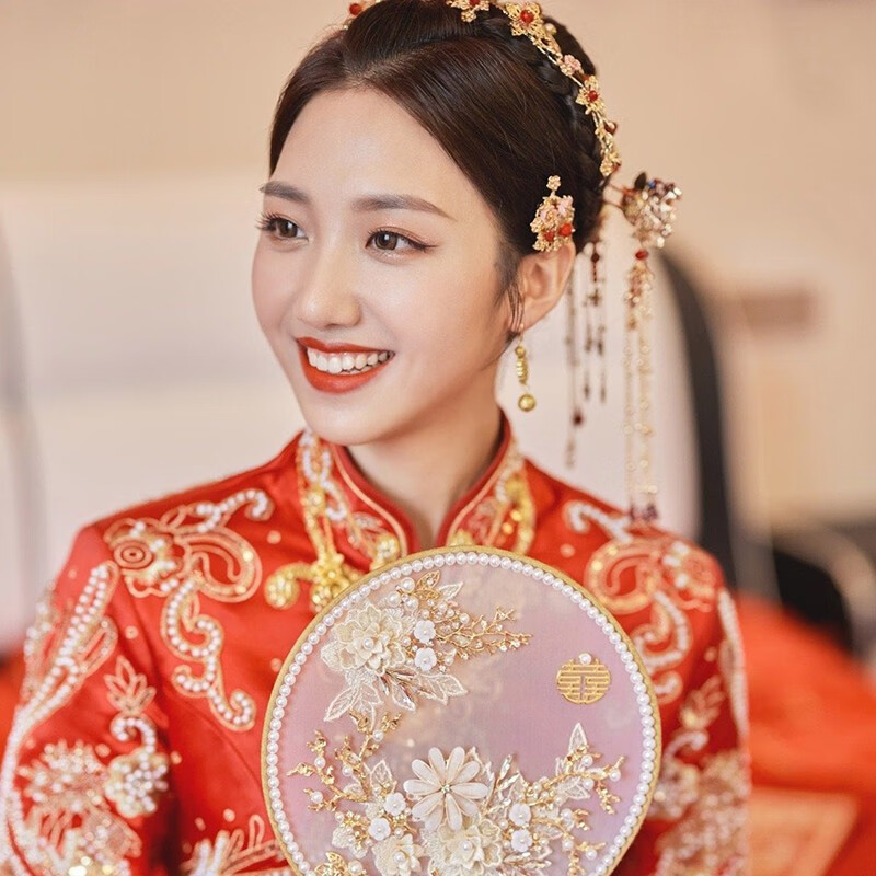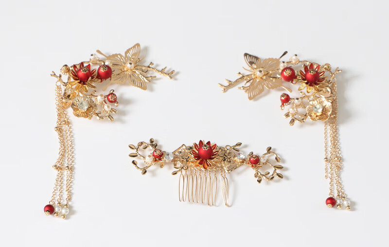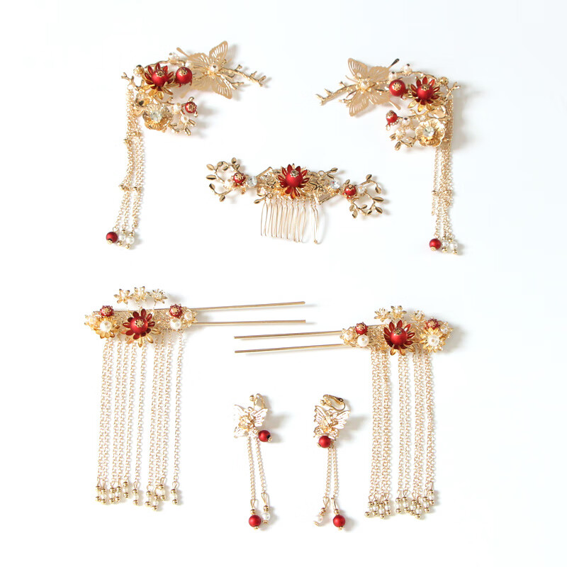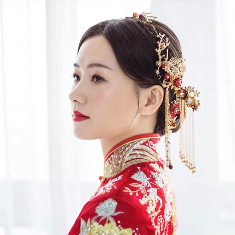 Shengli Xiuhe clothing headdress female bride 2024 new style simple and elegant simple wedding dragon and phoenix gown hair accessories new Chinese style with branches and ear hooks set
