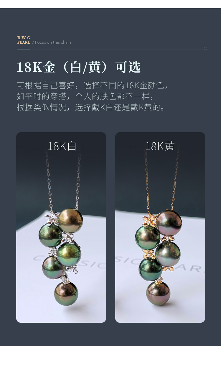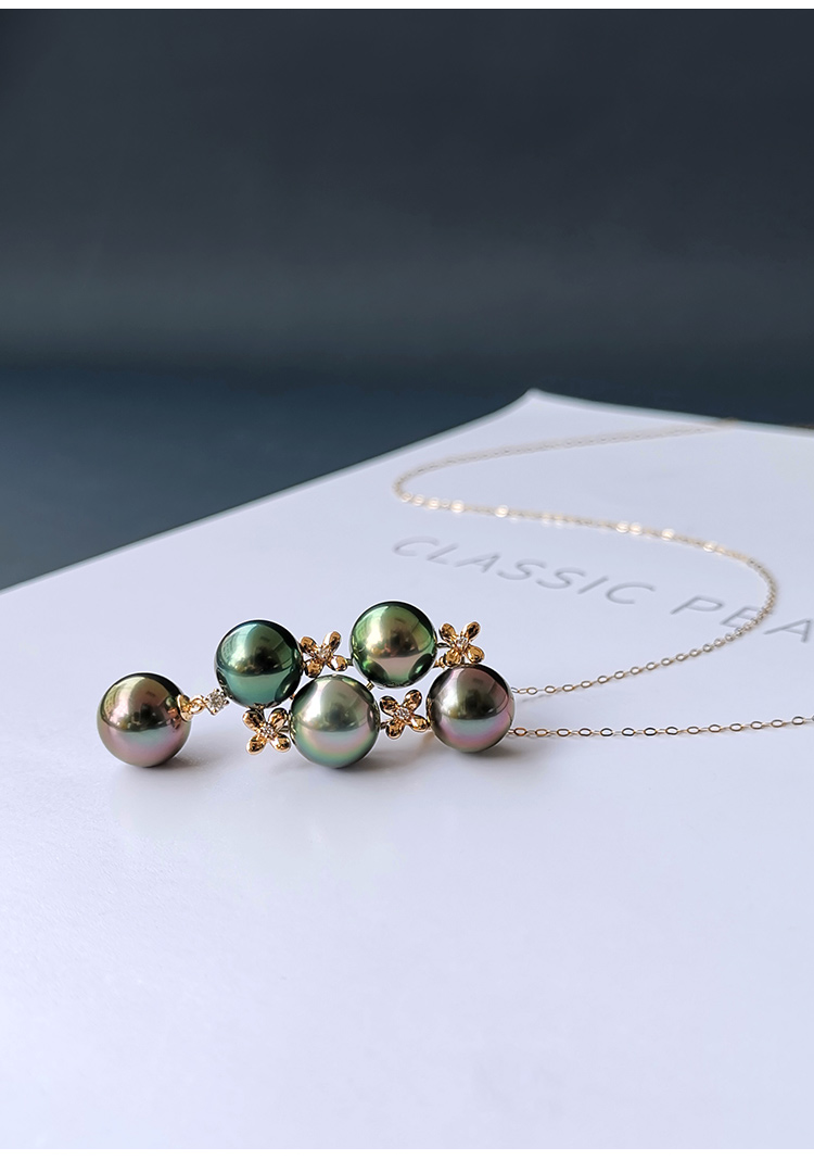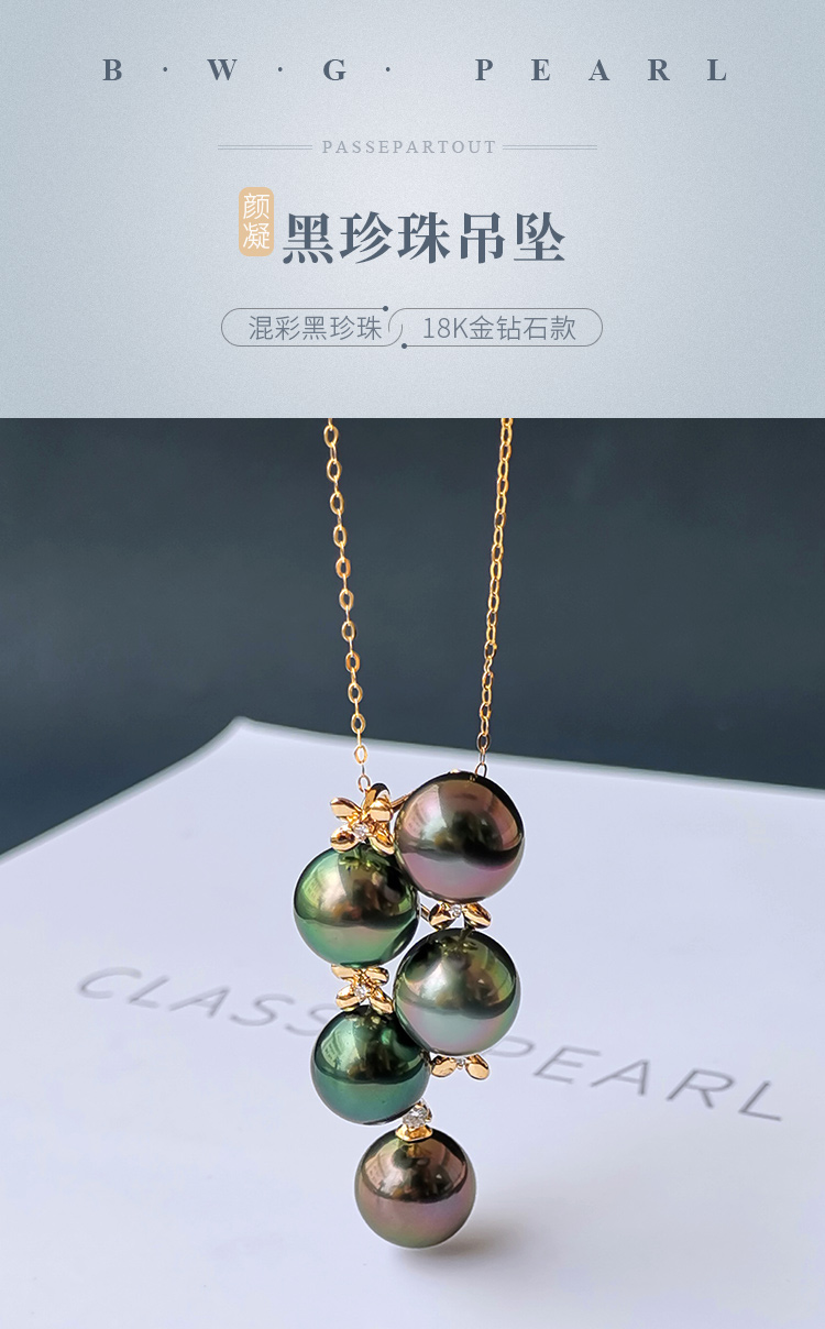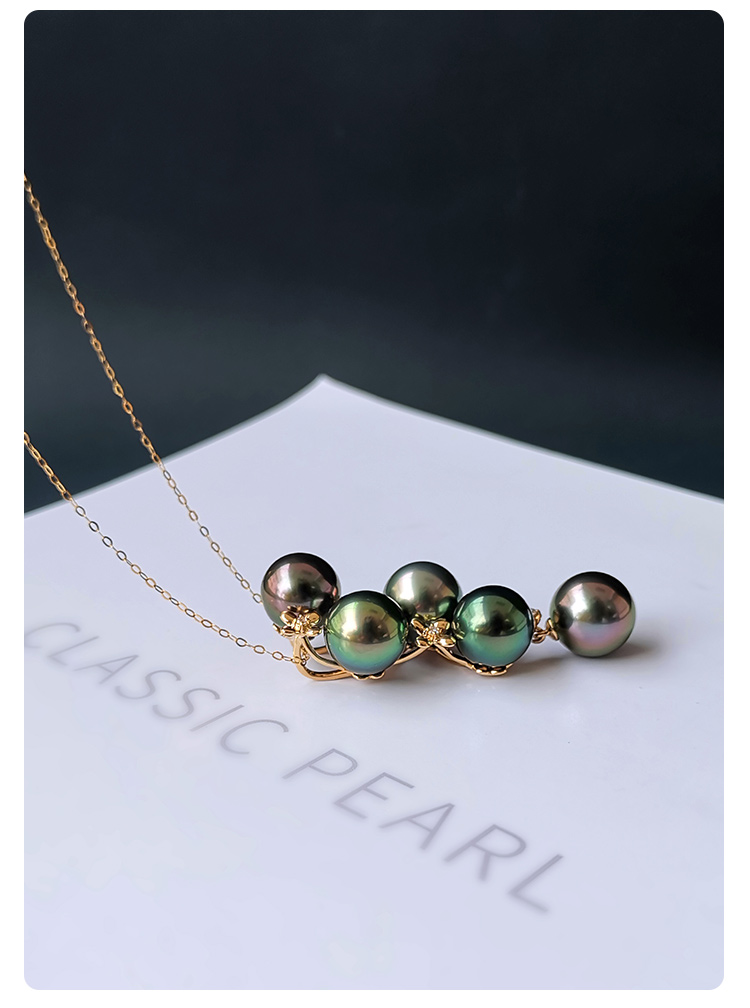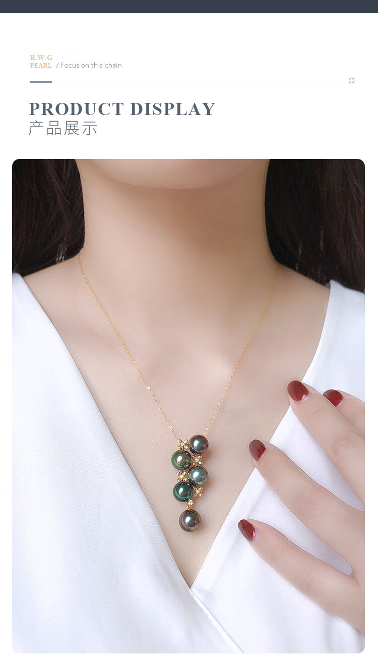 Chi Xing black and white gold pearl Tahitian black pearl pendant seawater pearl necklace 18K gold diamond mixed color gift for wife K yellow diamond style (9-10mm)
