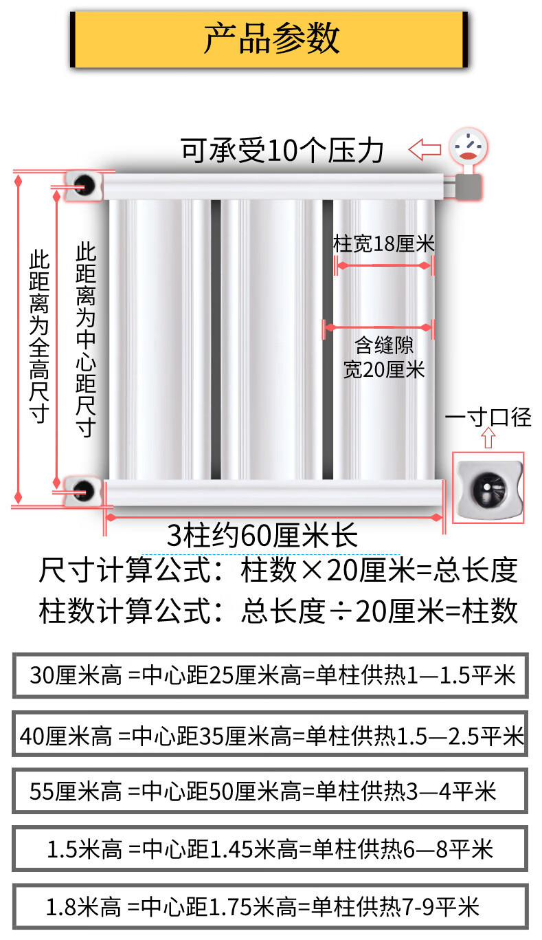Yina Gaogao thickened aluminum alloy radiator central heating pressure-bearing household radiator water heating copper aluminum steel total height 550 high 8 columns (about 1.6 meters long)