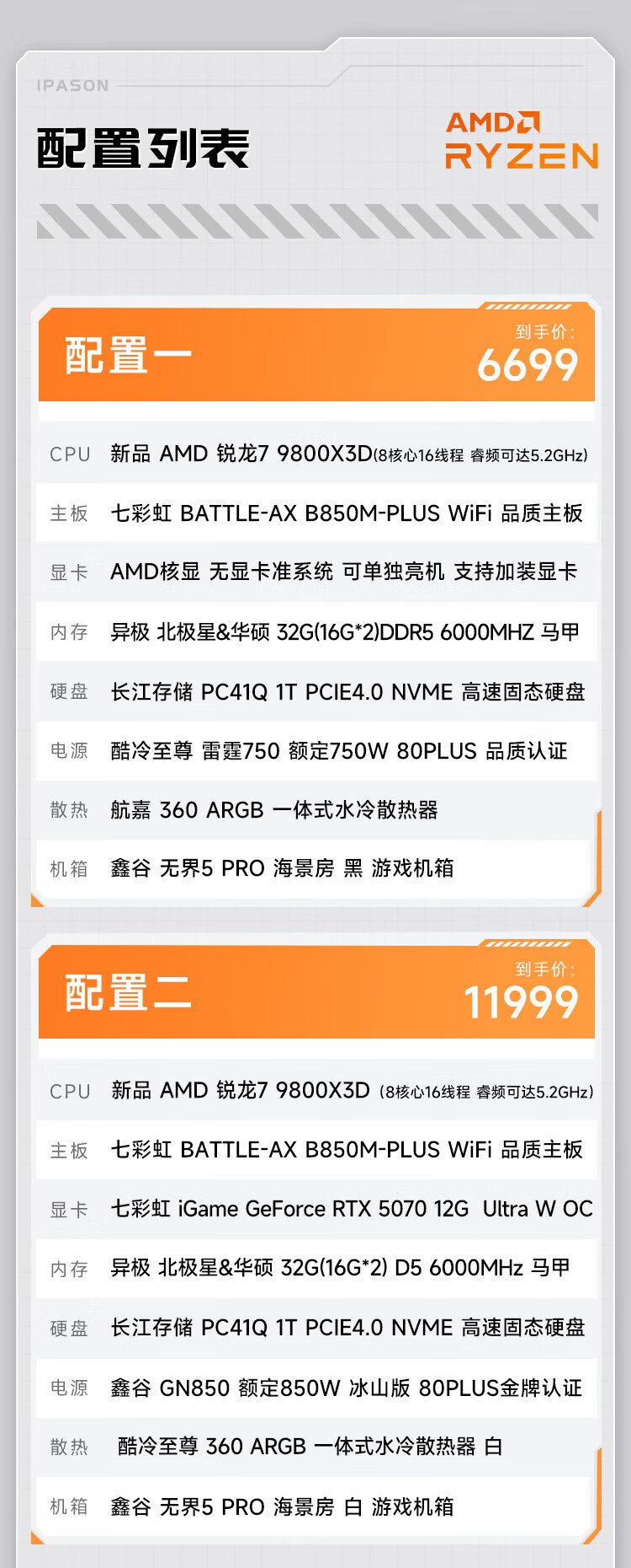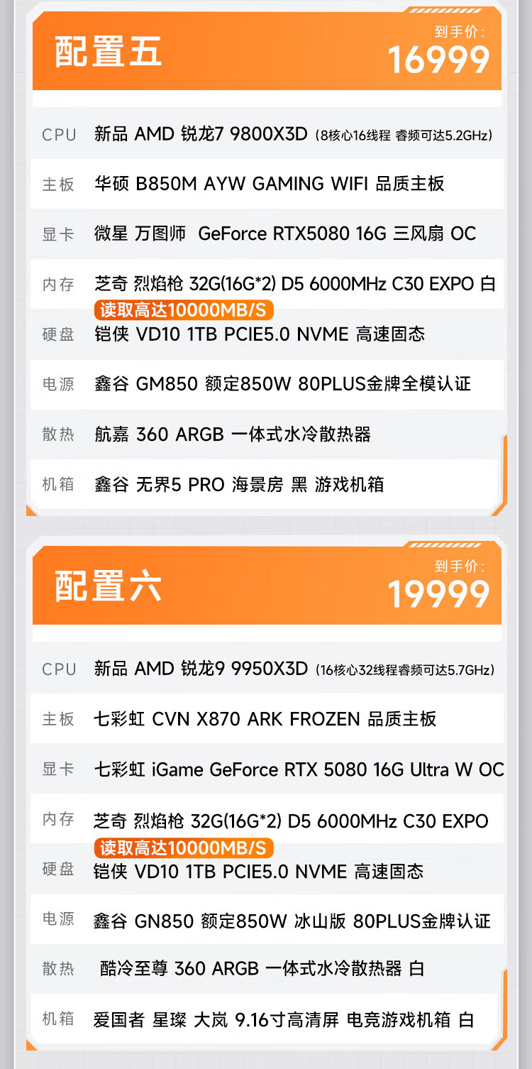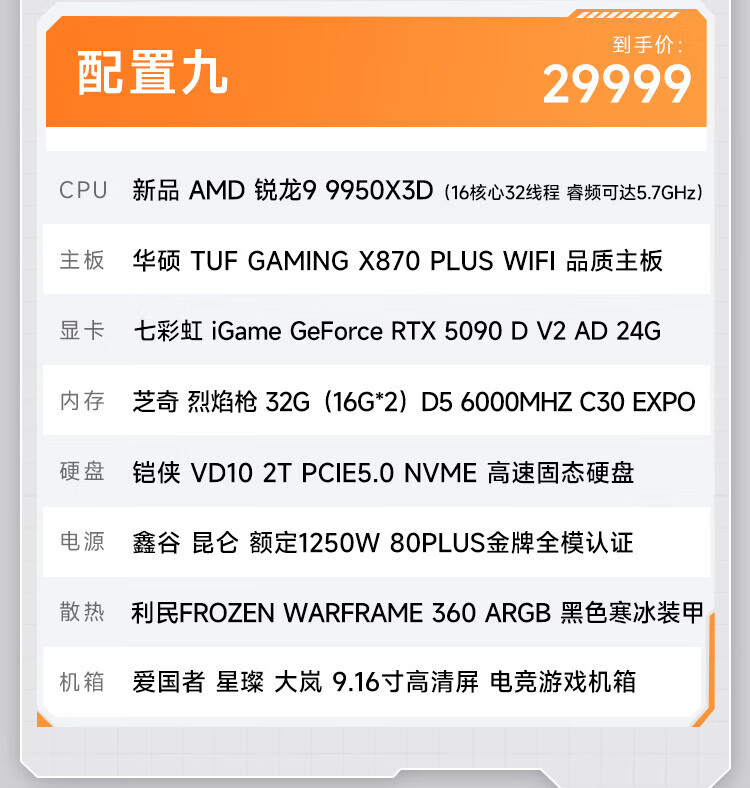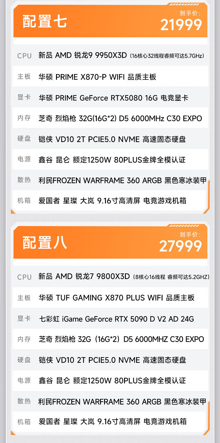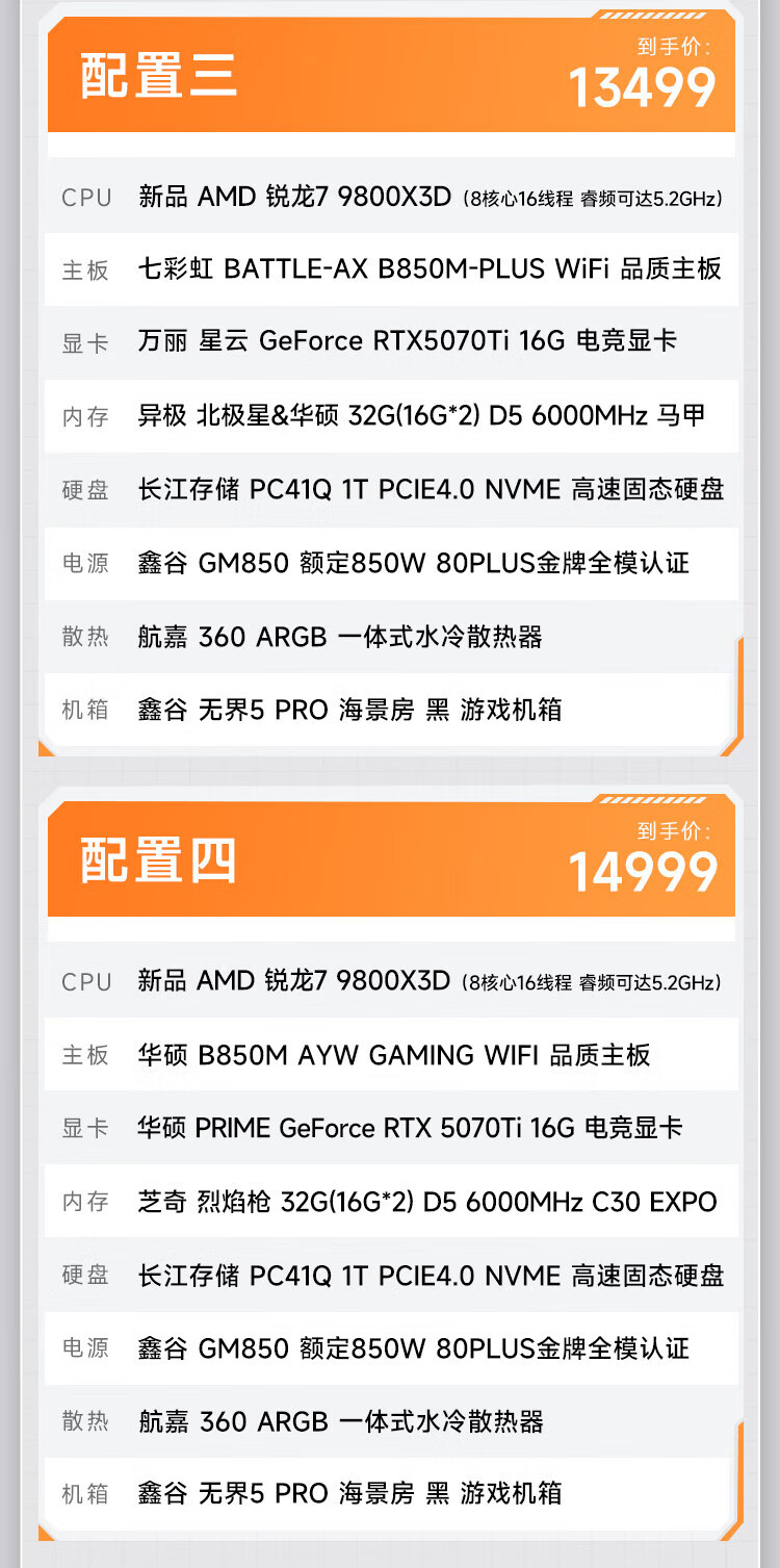 AMD Ryzen 7 9800X3D/RTX5080/5090D/5070Ti/graphics card thousand frames e-sports game desktop live broadcast AI design editing assembly computer host DIY assembly machine R7 9800X3D+RTX5070丨Configuration 2