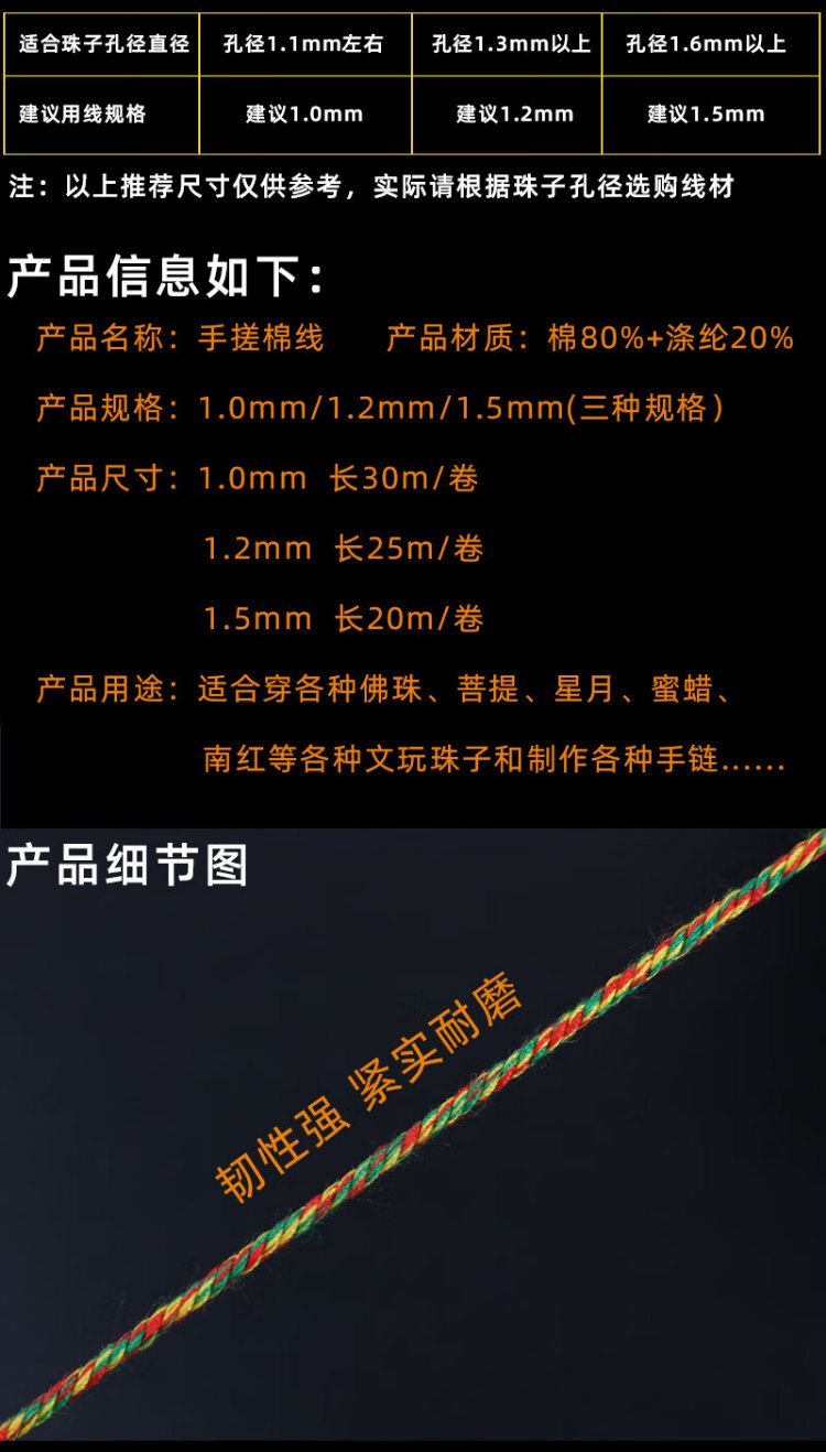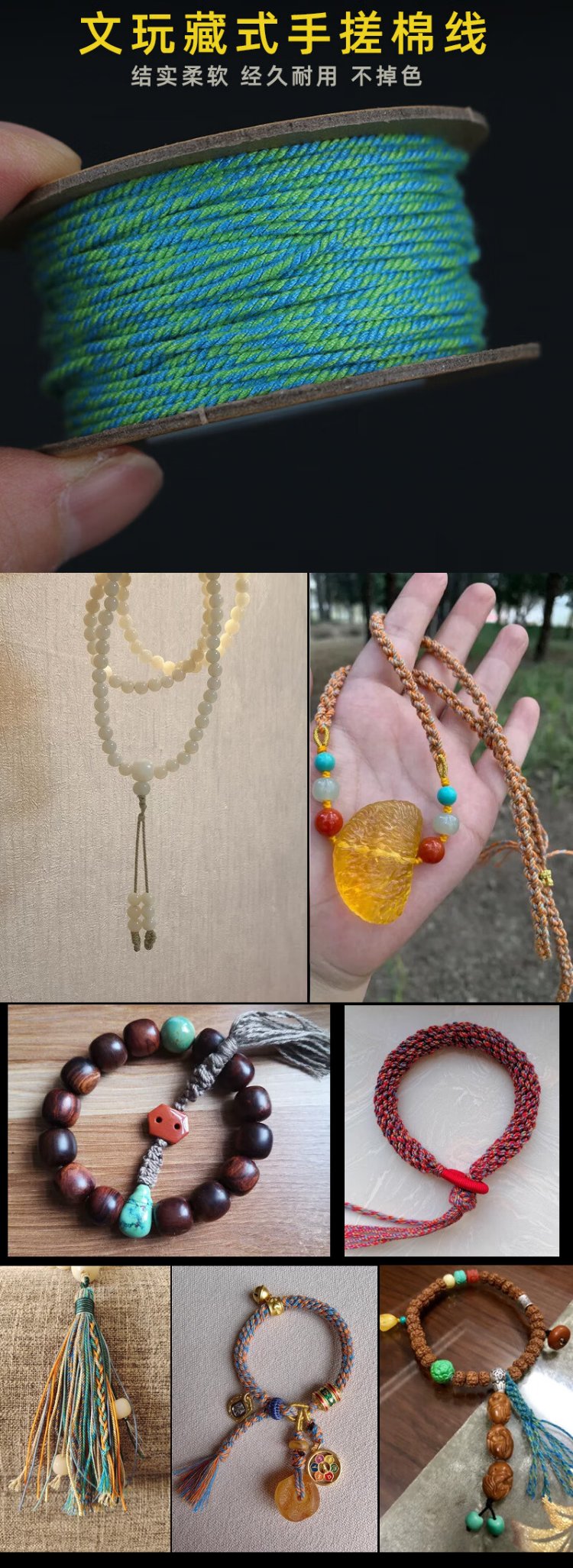 Oein hand-rolled cotton rope non-core wrapped cultural toy rope hand string rope Buddha bead thread star and moon phoenix eye passion seed bodhi bracelet white 1.5mm length 20 meters / roll