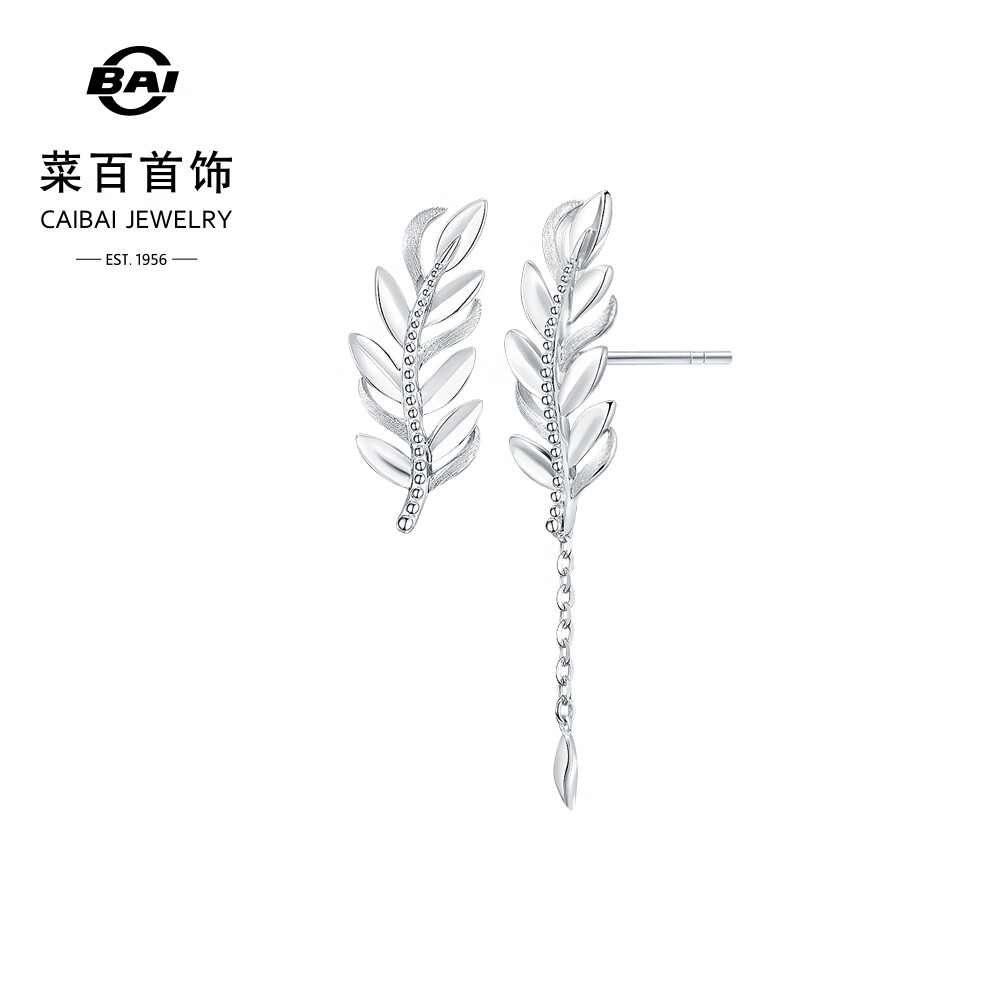 Caibai Jewelry Platinum Earrings Pt950 Platinum Fashion Minimalist Style Leaf AB Style Earrings Priced BJ Platinum Earrings (without ear plugs) About 2.77g