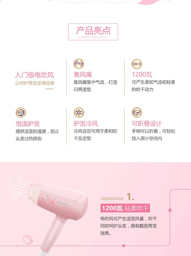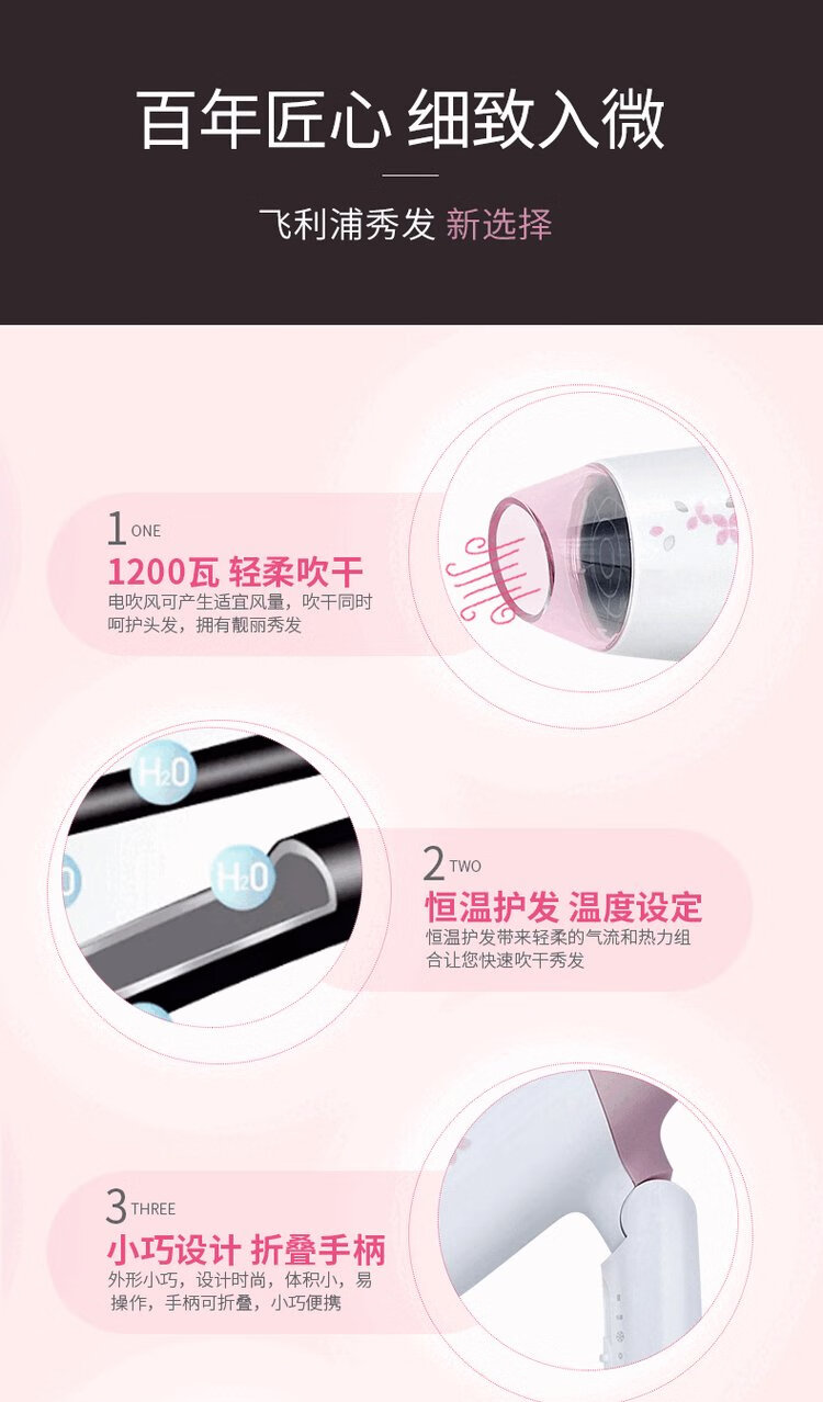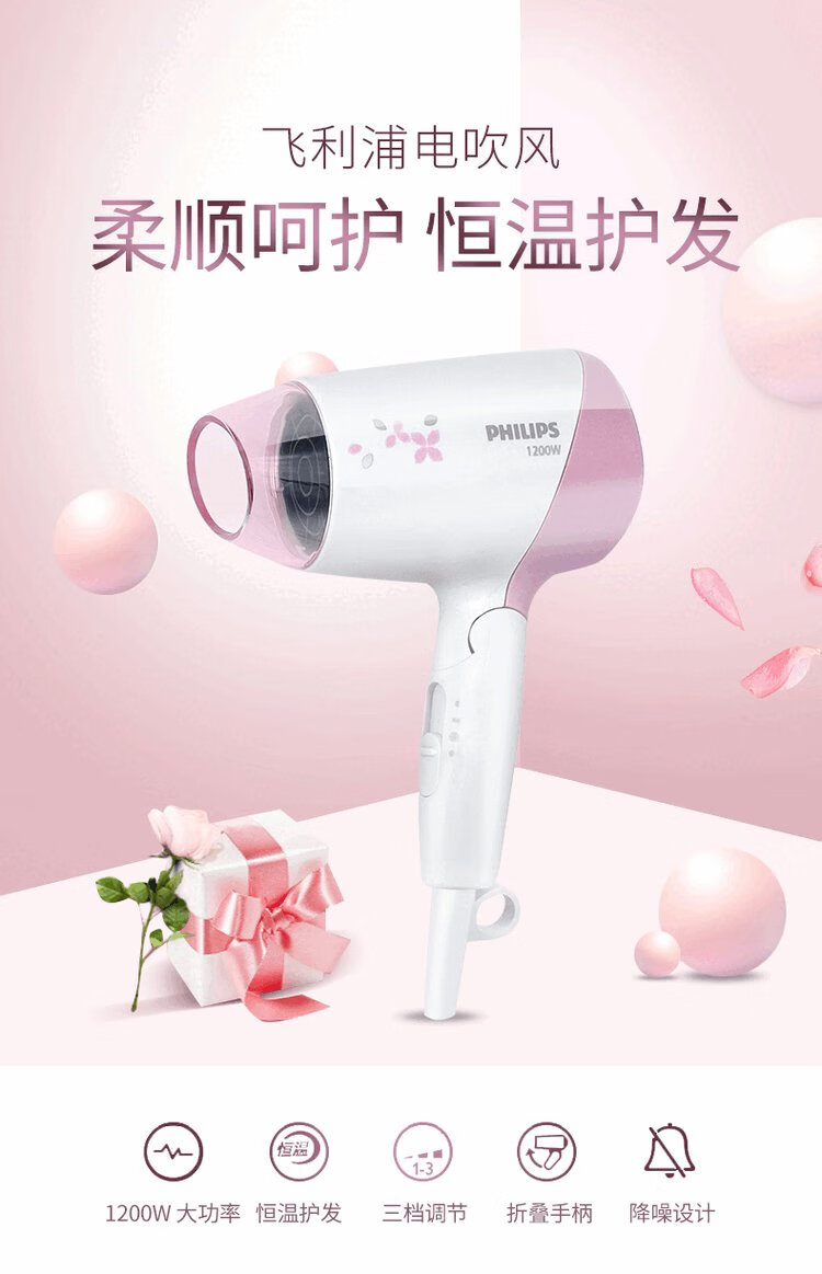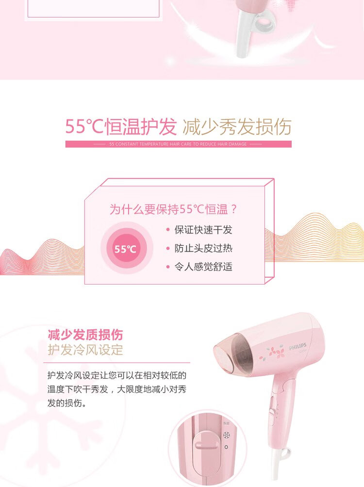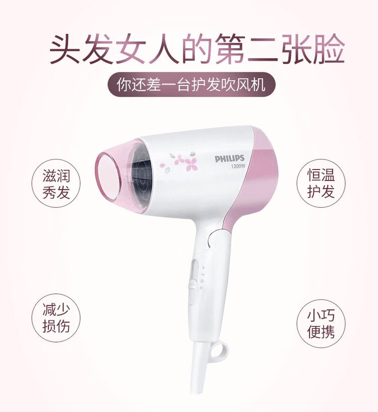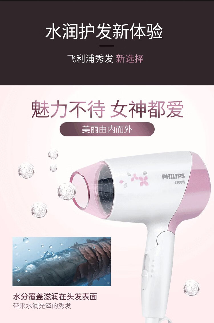 Philips (PHILIPS) hair dryer household high-power hair dryer constant temperature hair dryer must-have for student dormitories BHD720 water light machine 200 million negative ions + water ions