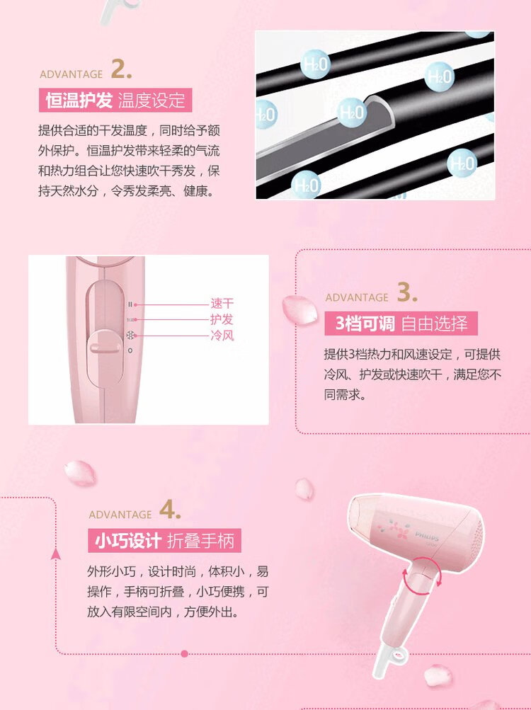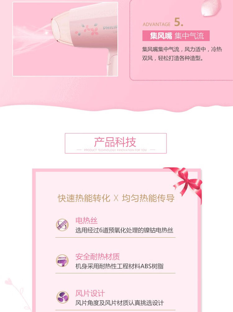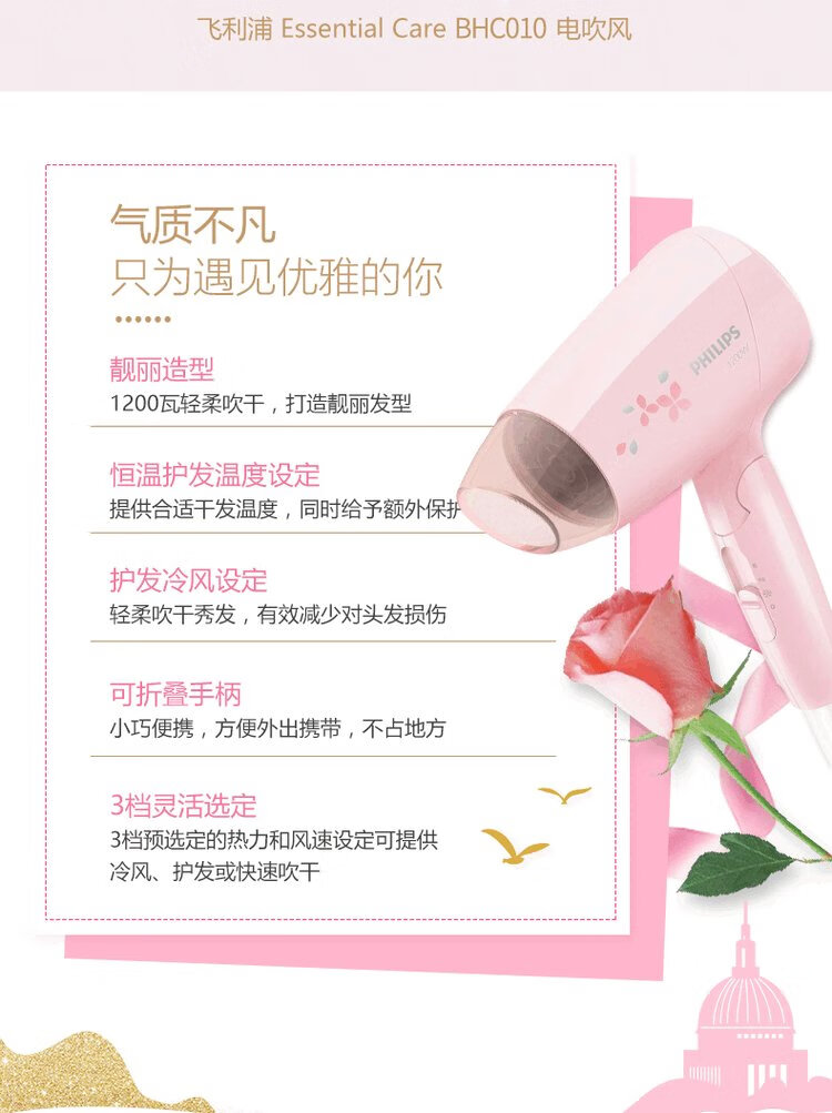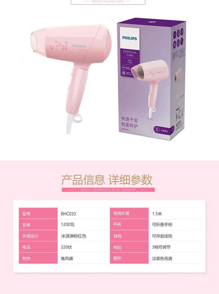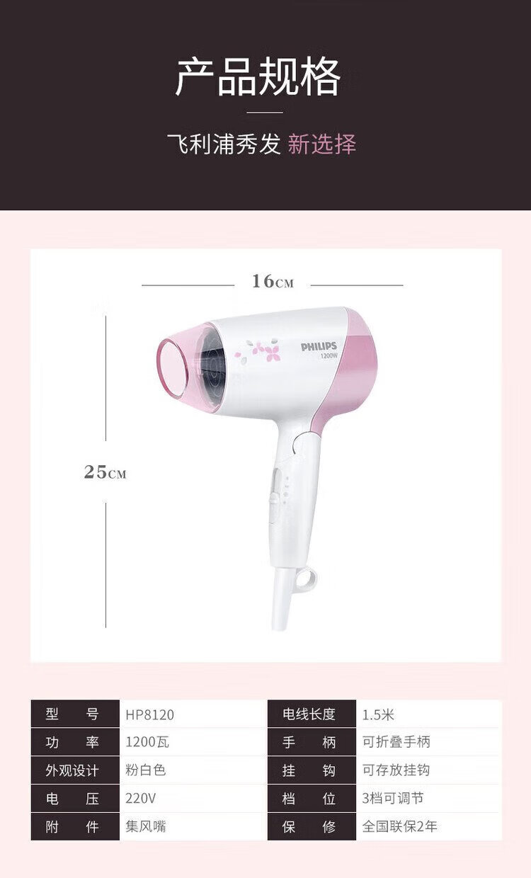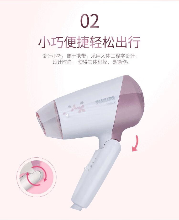 Philips (PHILIPS) hair dryer household high-power hair dryer constant temperature hair dryer must-have for student dormitories BHD720 water light machine 200 million negative ions + water ions