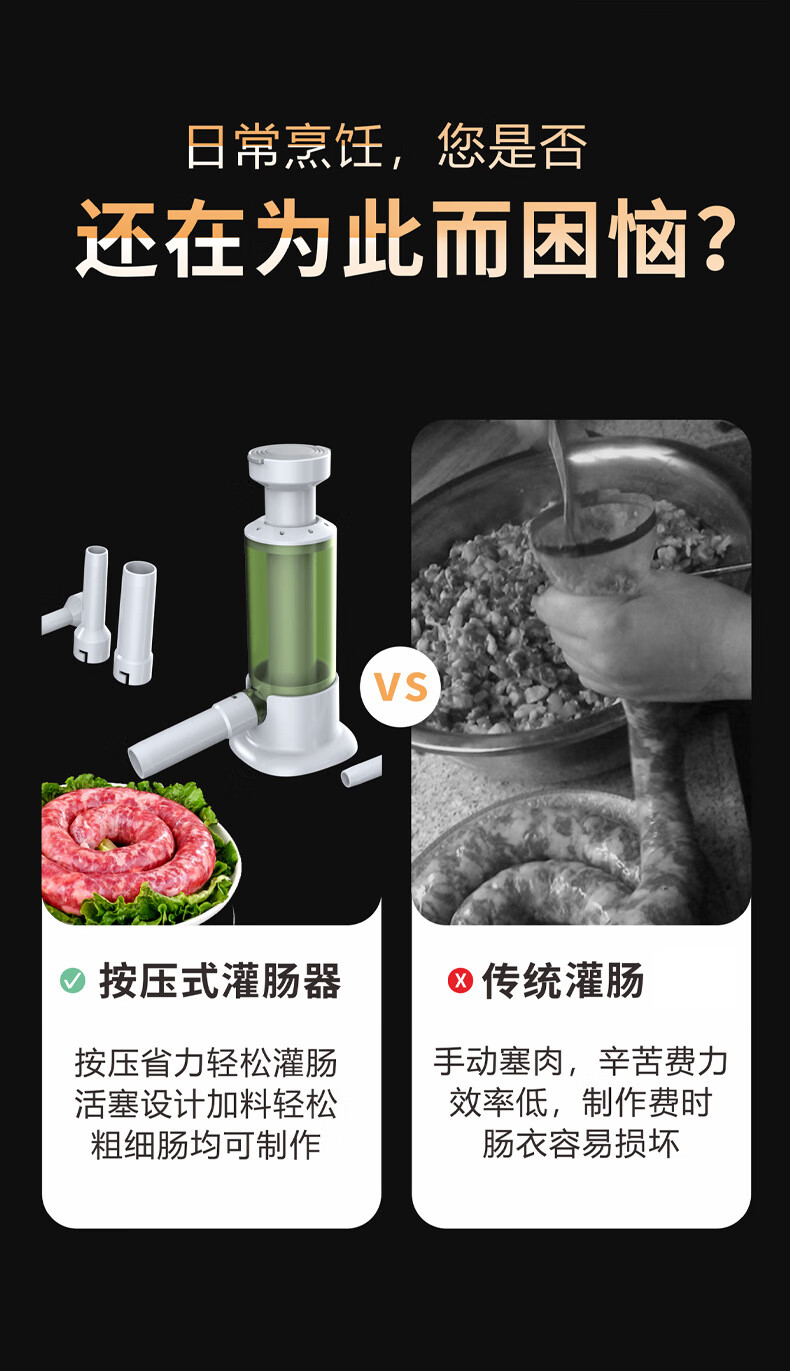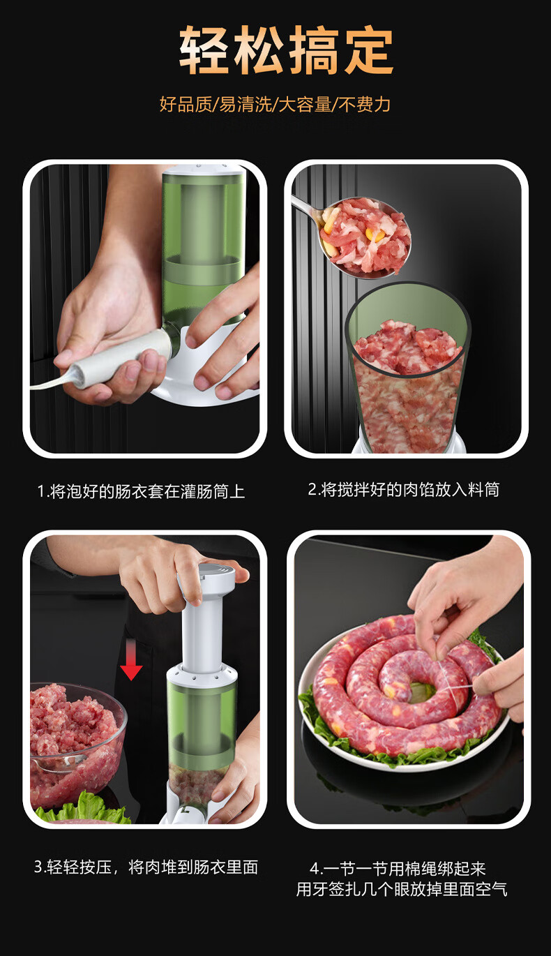 Rice harvesting sausage machine, household manual sausage machine, sausage machine, sausage casing filling tool, canned sausage artifact, coffee color - with 4 tubes