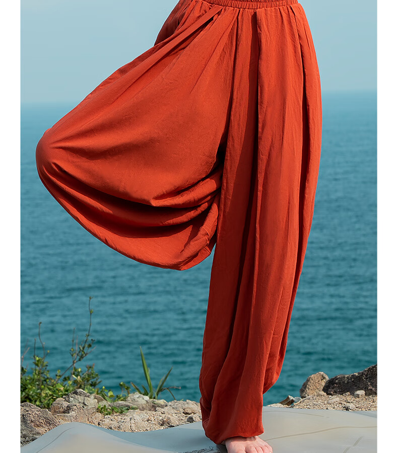 Meesu Yoga Pants Sports National Style Ethnic Style Lightweight Dance Training Pants Women's Pilates Loose Meditation Meditation Bloomers Black 2XL