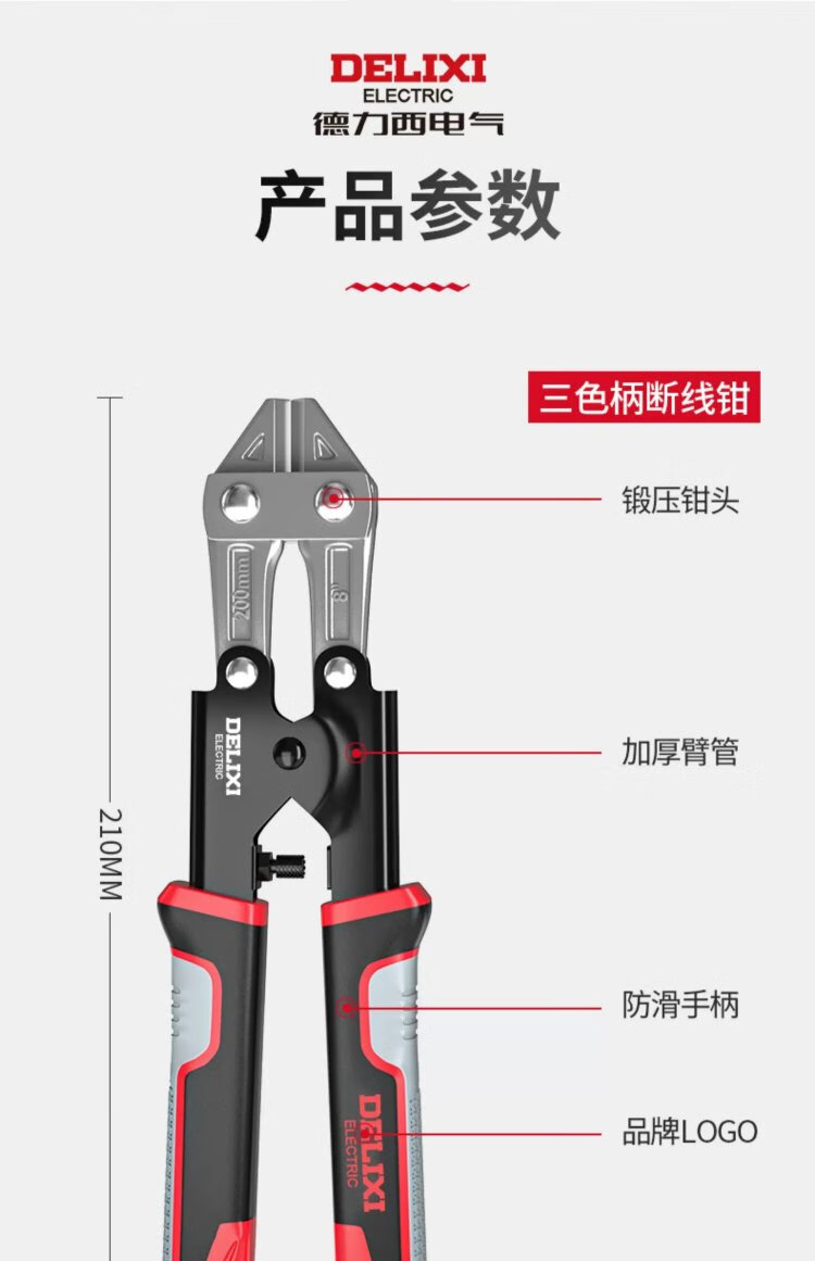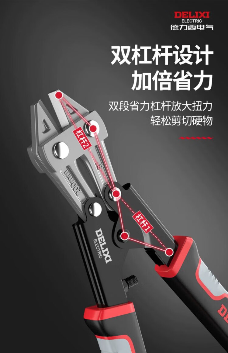 Delixi bolt cutters scissors steel bar cutting pliers multifunctional labor-saving wire cutters powerful wire cutting pliers Delixi 8-inch heavy-duty industrial grade bolt cutters-gloves
