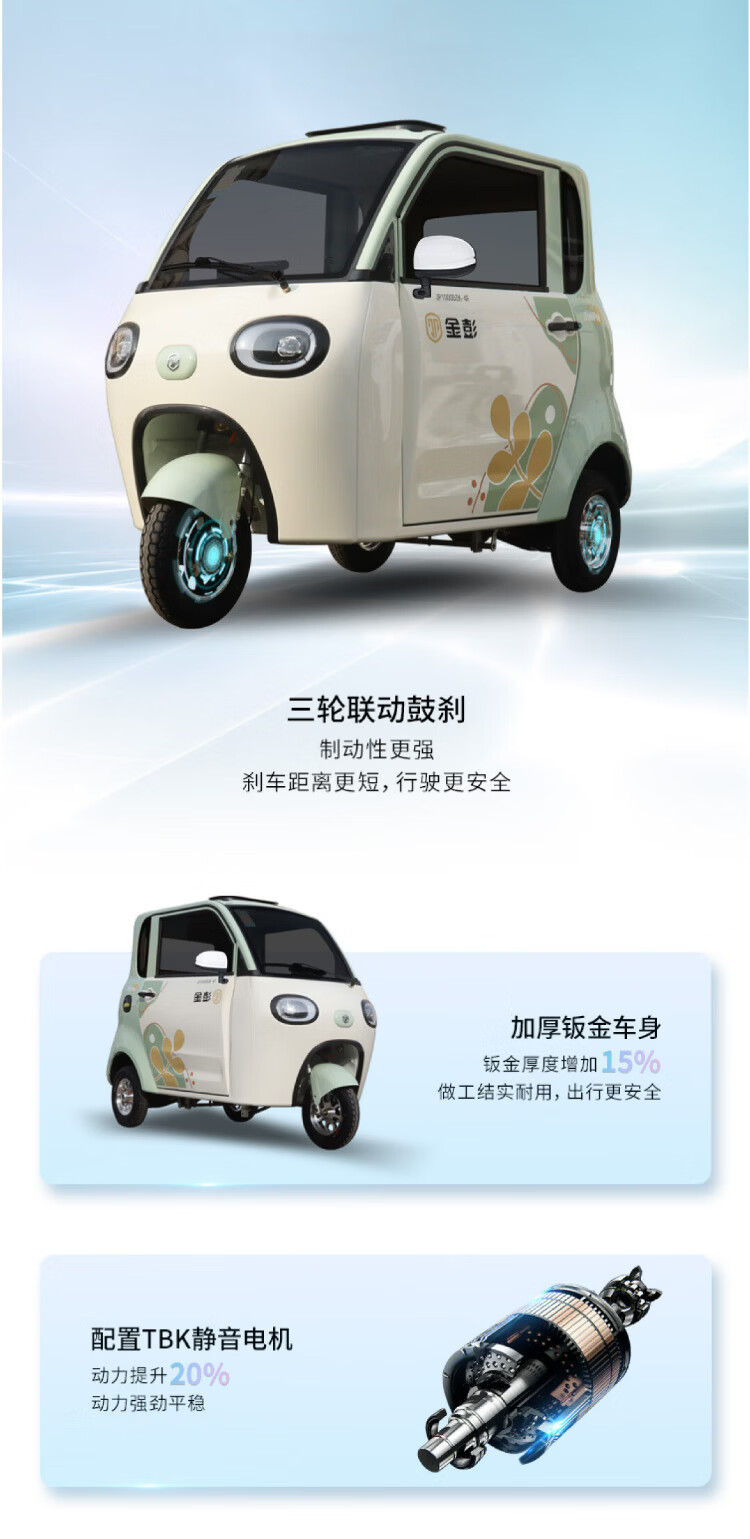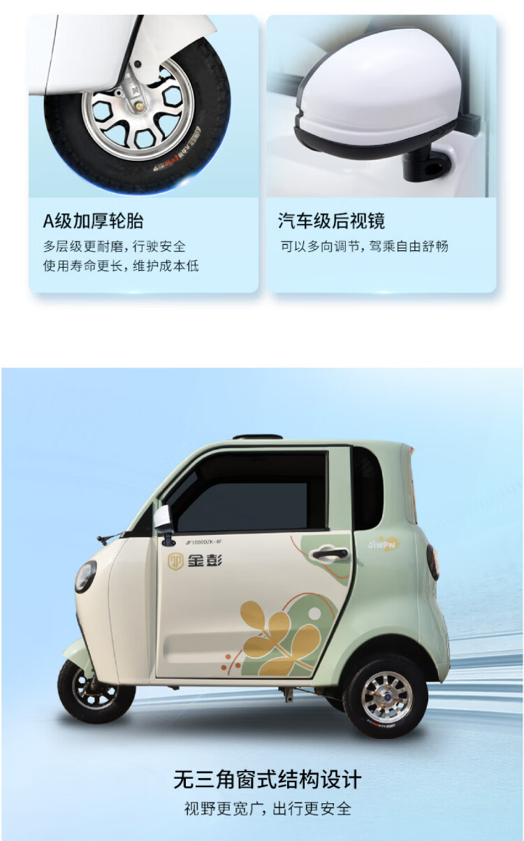 Jinpeng Xuebao high-end electric tricycle caravan for the elderly to transport adult women to pick up and drop off children electric battery car flagship version 1000W lead-acid battery 60V52A variable speed