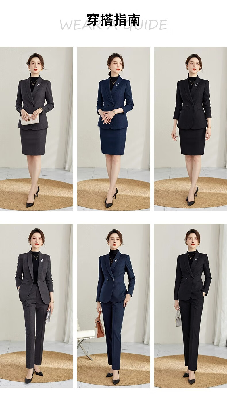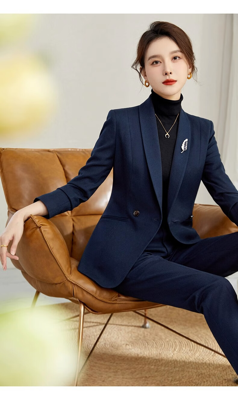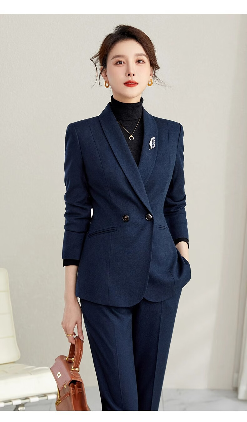 ROMON high-end professional suit, thickened formal suit, winter professional suit, fashionable commuting suit for women, navy blue suit jacket + trousers XL