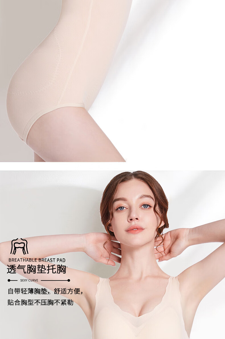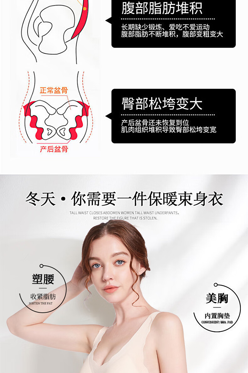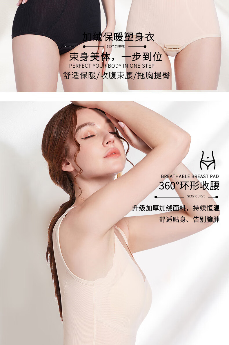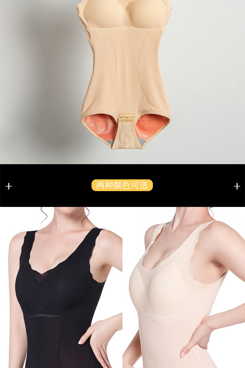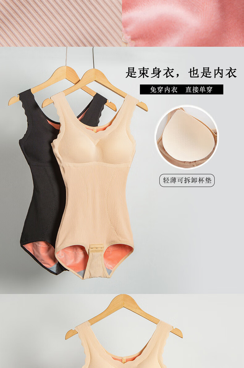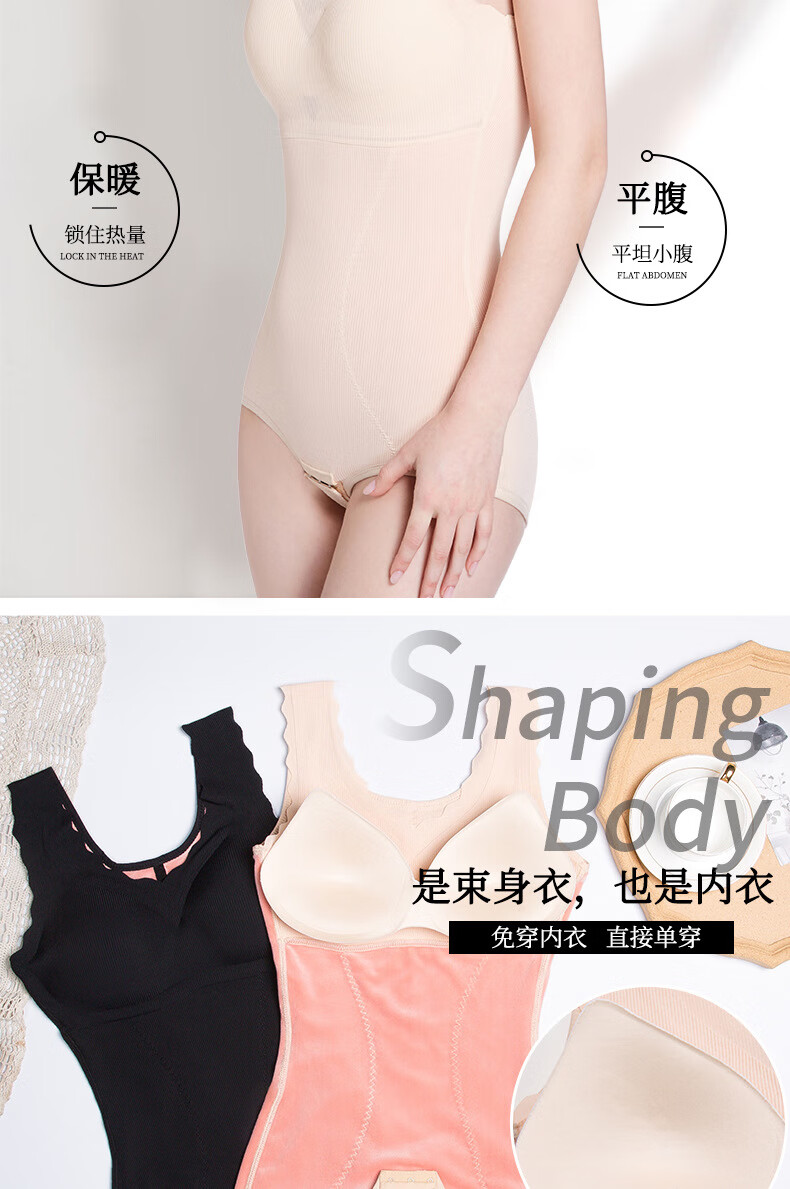 LangSha (LangSha) Autumn and Winter Warm Vest Women's Shapewear One-piece with Padded Padded Underwear Plus Velvet Thickened Butt Lift Bottoming XL Size Seamless Underwear Free Style/Fair Skin Color 2XL (Recommended 130-150Jin Jin equals 0.5kg)
