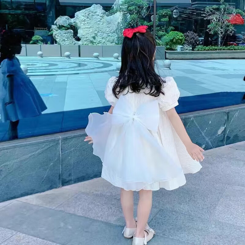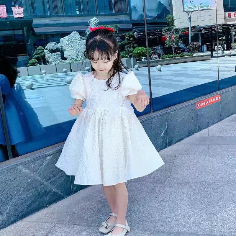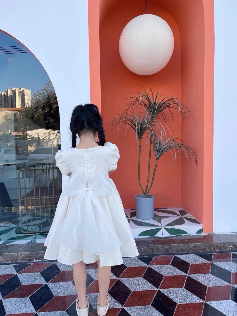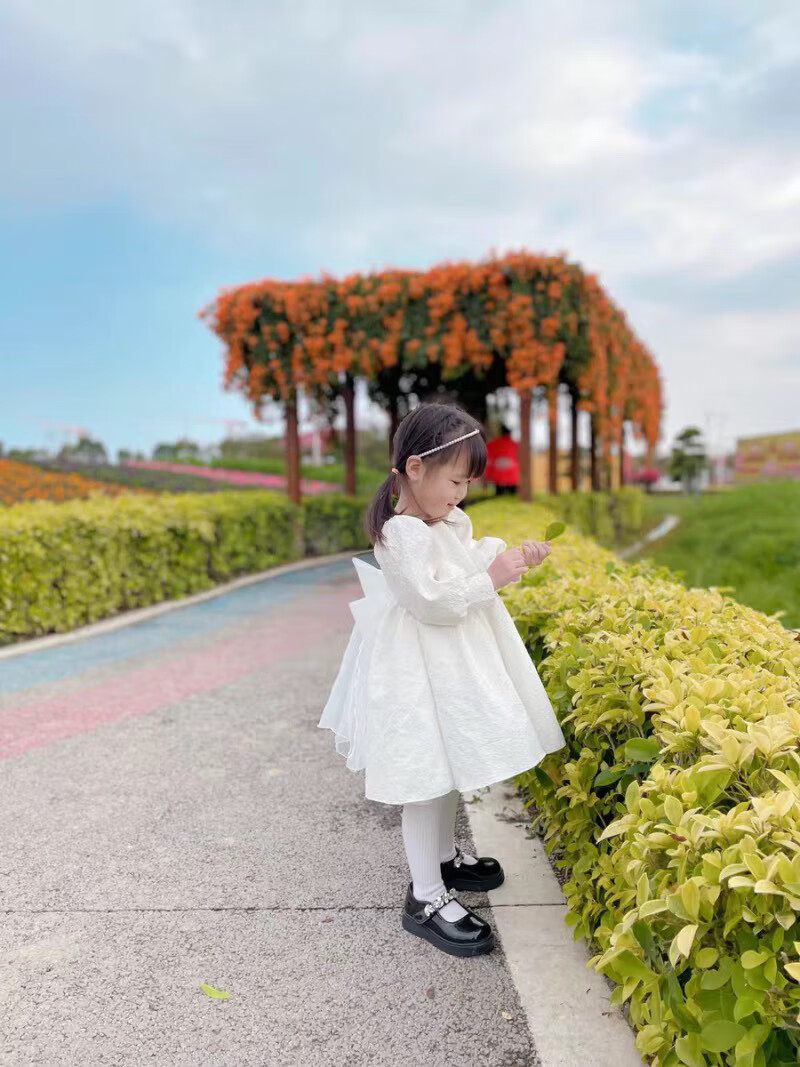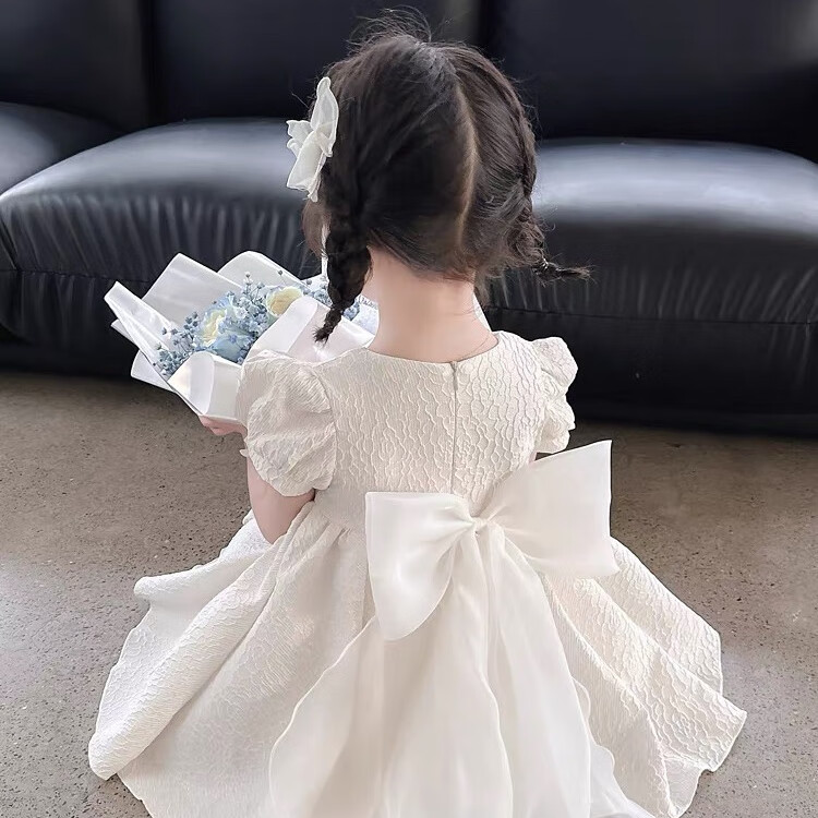 Nian Lulan Princess Dress Girls 2024 Spring and Autumn Korean Flower Girl White Dress One Year Old Dress Baby Girl Summer White Long Sleeves with Pearl Headband 90