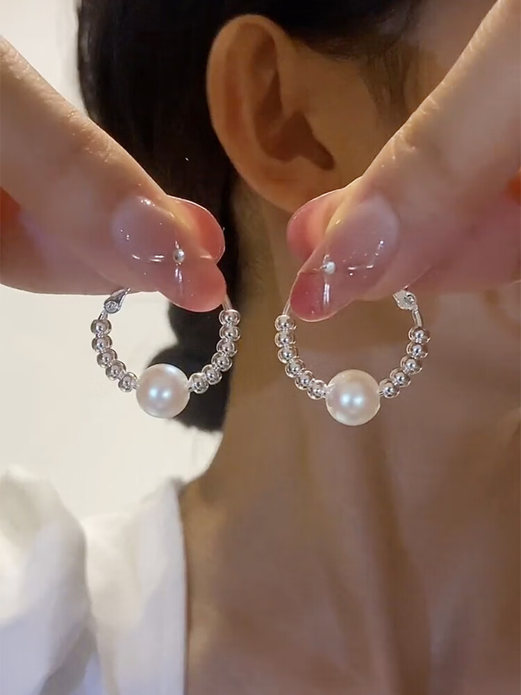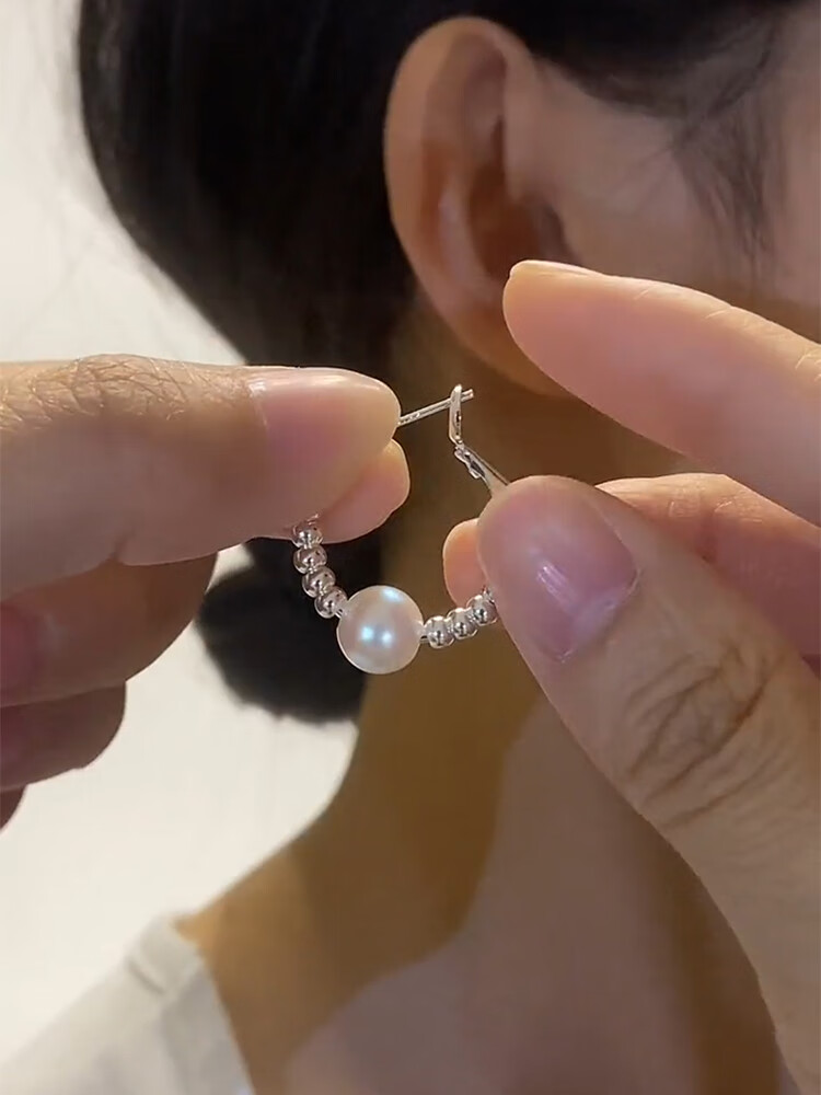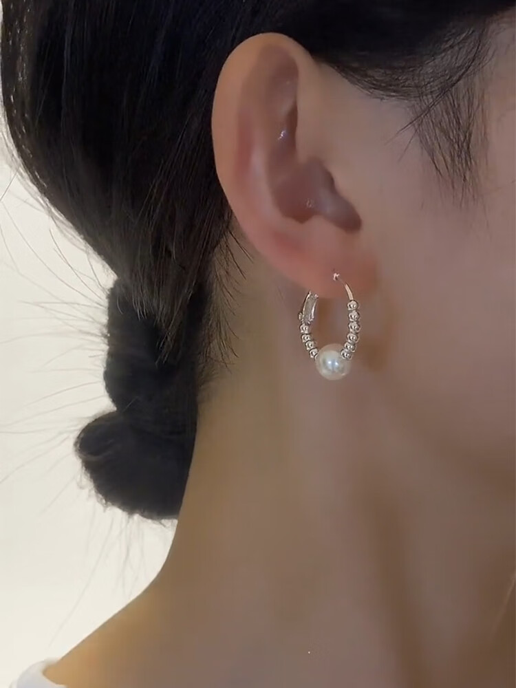 Old silversmith light luxury pearl broken silver hoop earrings 925 silver needle-like temperament earrings and ear buckles to show face and slim ear jewelry broken silver pearl earrings