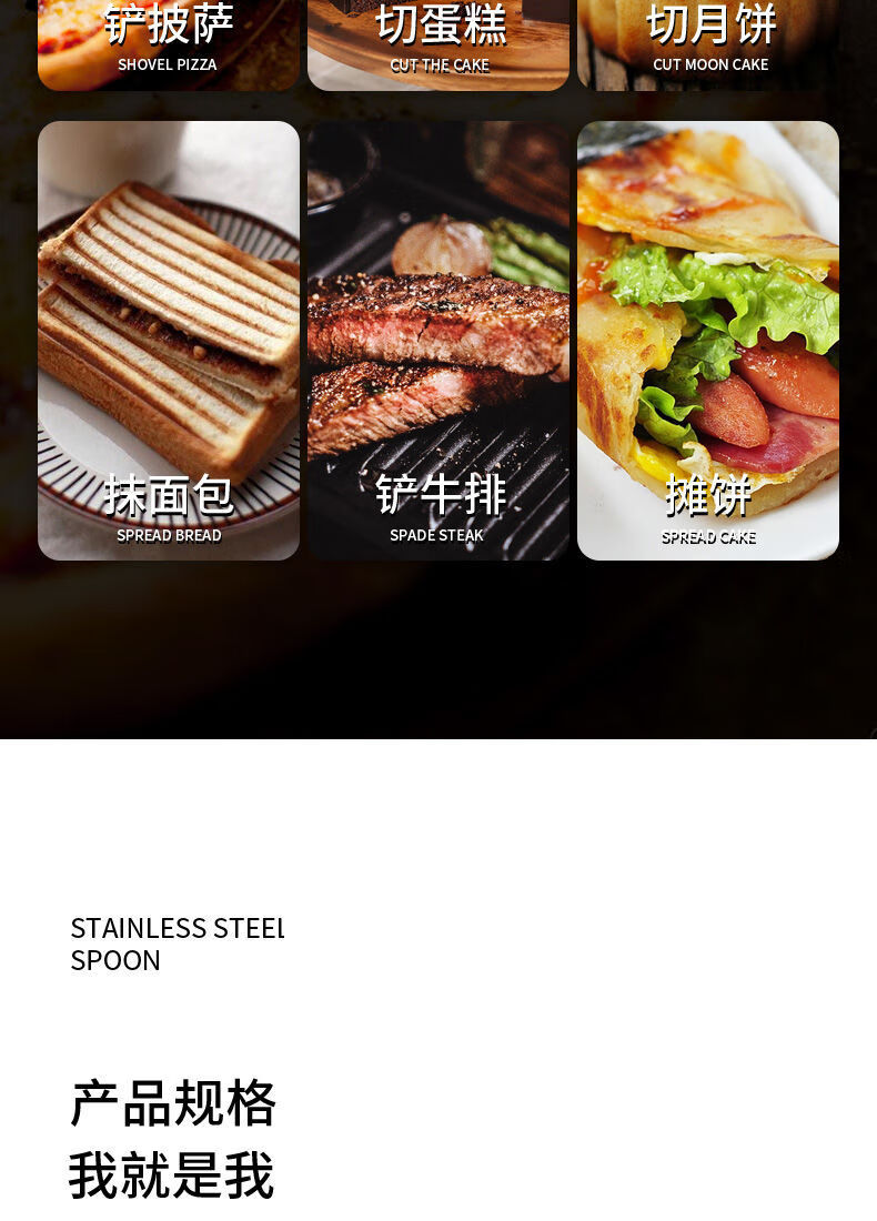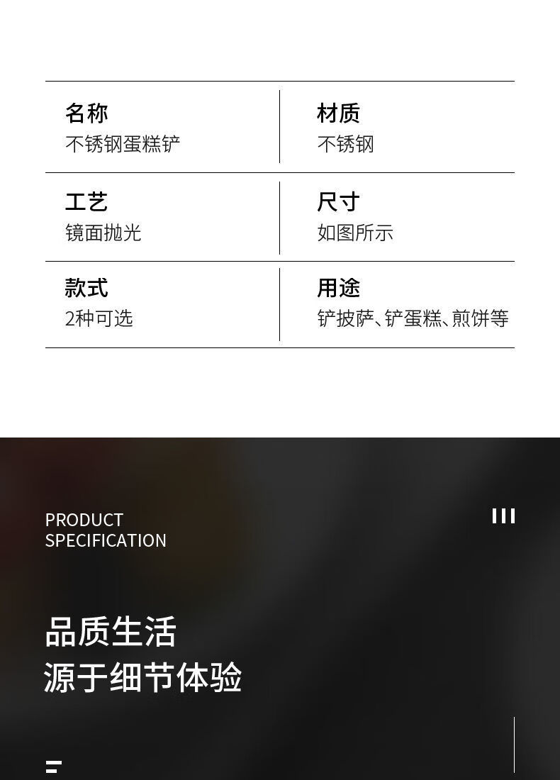 Quhe Internet celebrity stainless steel cake knife dessert cutting scraper kitchen baking gadget pizza shovel knife wide shovel one pack