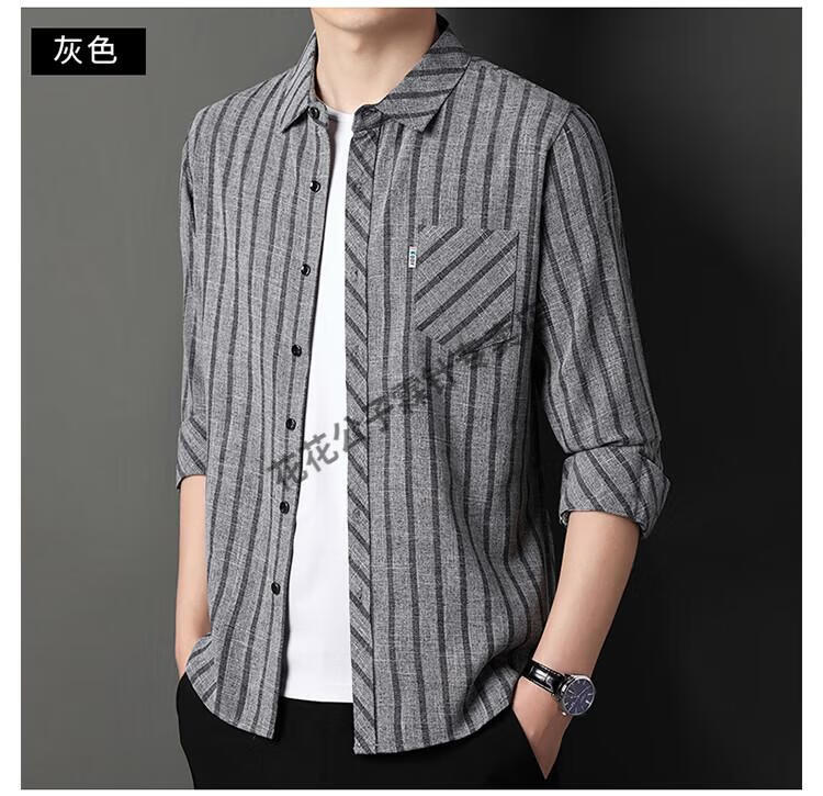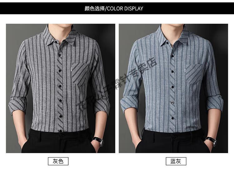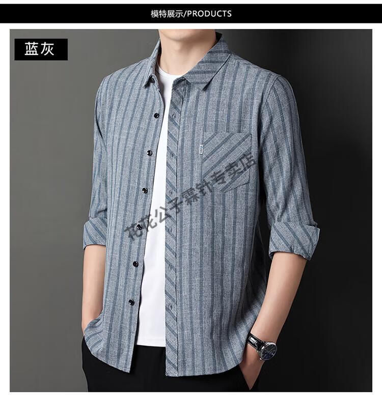 Playboy (PLAYBOY) Autumn and Winter Men's Long-Sleeved Shirt Pure Cotton Plus Velvet Thickened Business Stripes Real Pocket High-End Dad-inch Clothes Blue Gray (Fleet Plus) Thick Section 2XL 185 Recommended 165-180 Jin Jin equals 0.5 kg