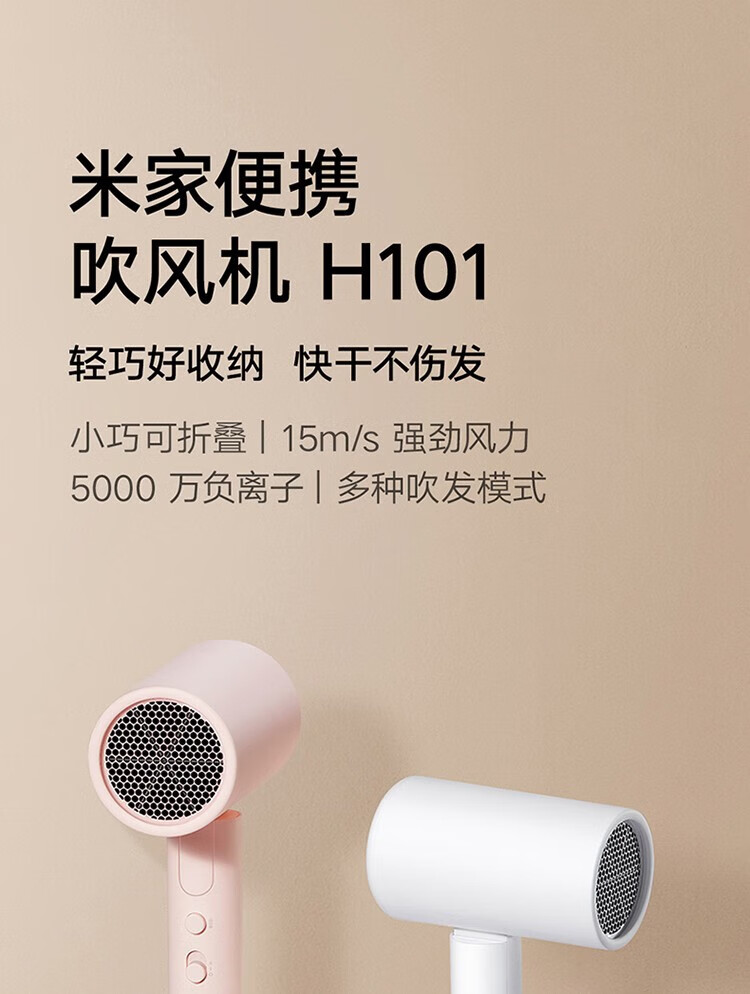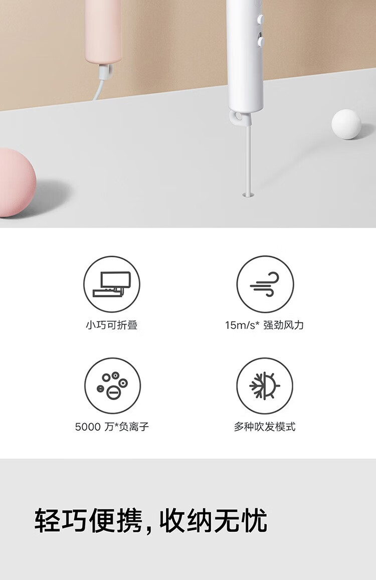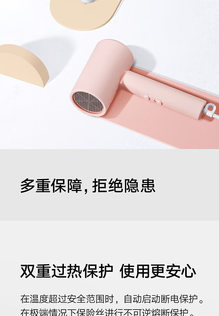 Mijia Xiaomi Portable Hair Dryer H101 Folding Hair Dryer Negative Ion Hair Care Travel Hotel Storage Hair Dryer Strong Wind Overheating Protection With Suspension Hook Portable Hair Dryer H101 Pink