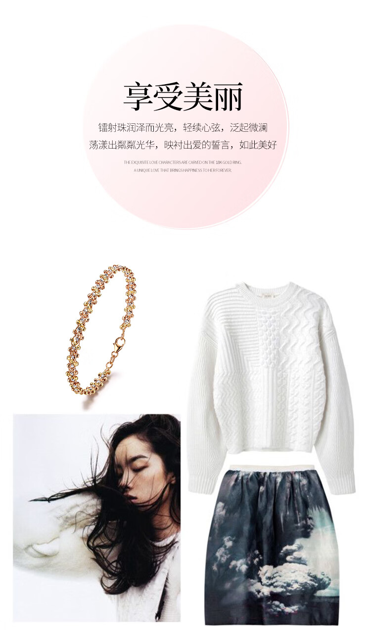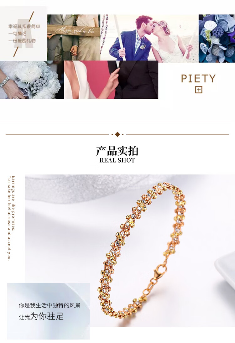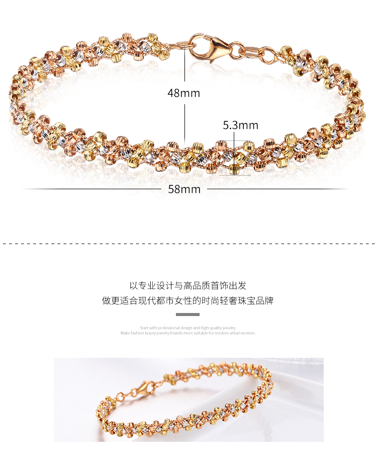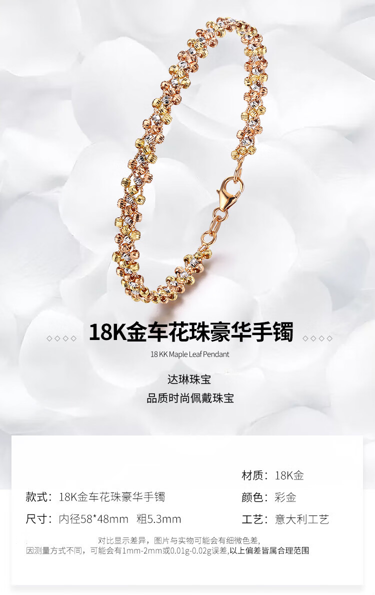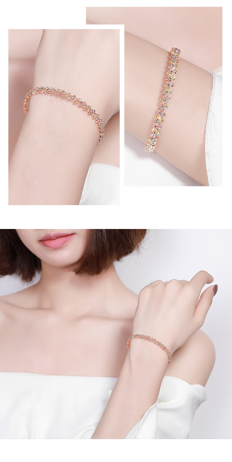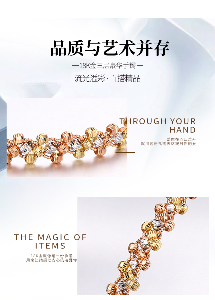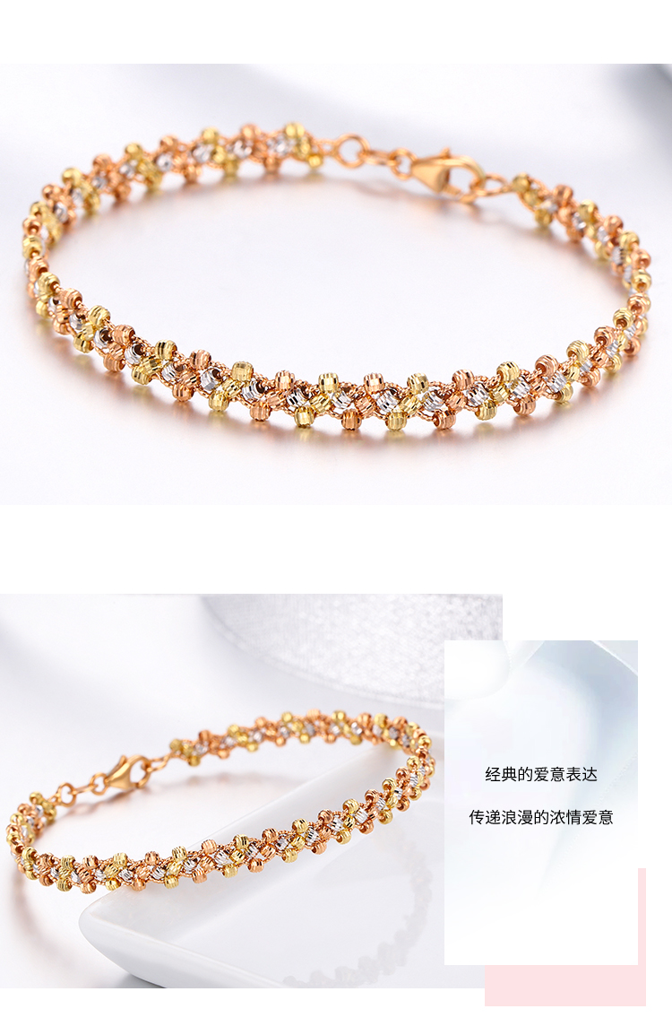 Shanguan 18K gold bracelet for women au750 color gold three-strand car flower bead braided bracelet luxury girl birthday Chinese Valentine's Day gift