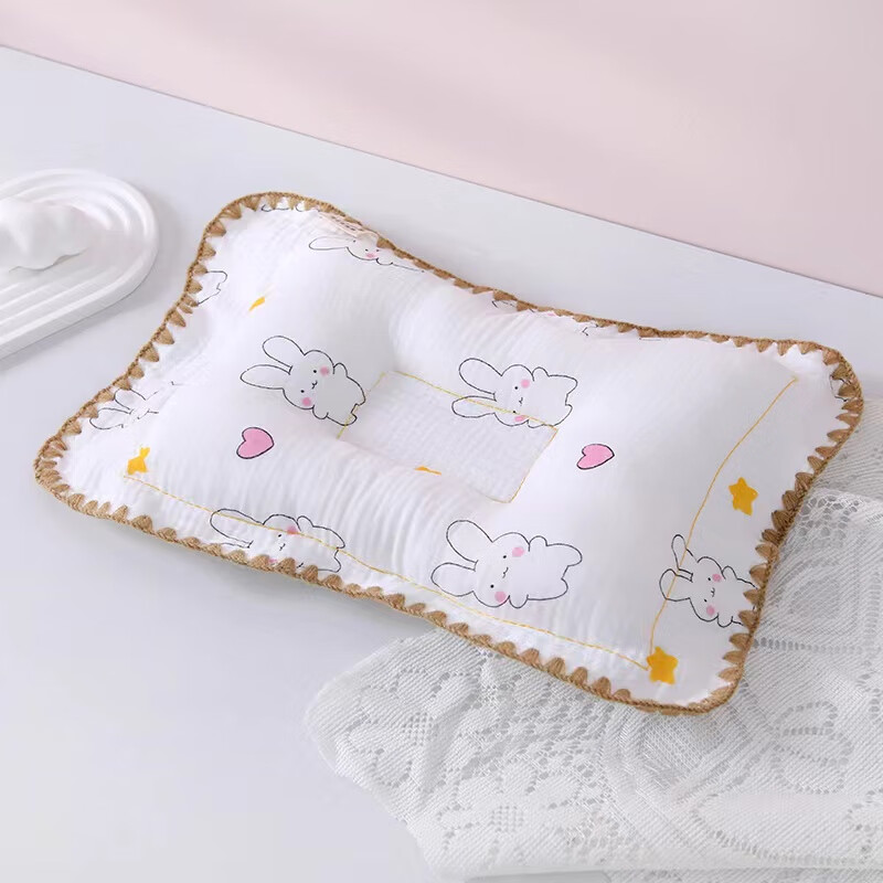 Baby pillow, newborn baby shaping pillow, 0 to 6 months and above, anti-bias head correction pillow, breathable and sweat-absorbent pillow, 0-3 years old lace pillow-anti-migraine head, Tianyuan Bunny
