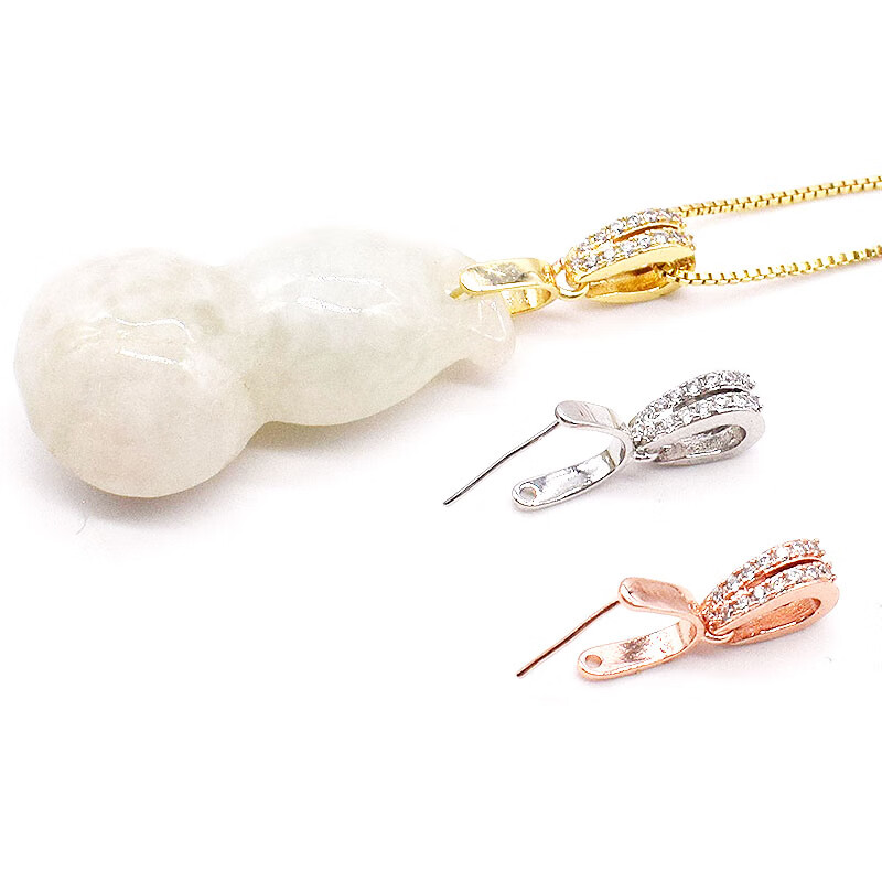 Green 18k gold buckle accessories s925 plated long needle fine needle small pendant jade pendant buckle diy jade pendant necklace gold color (c175 style)