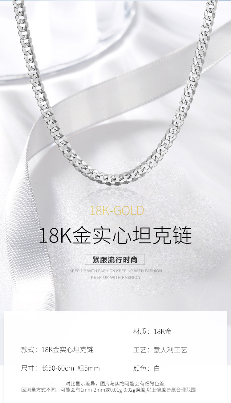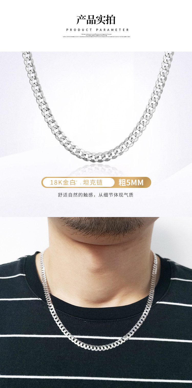 Micro boat thick 18K gold necklace men's au750 platinum tank side necklace atmospheric boss chain birthday gift 60cm14.1g about 4mm thick
