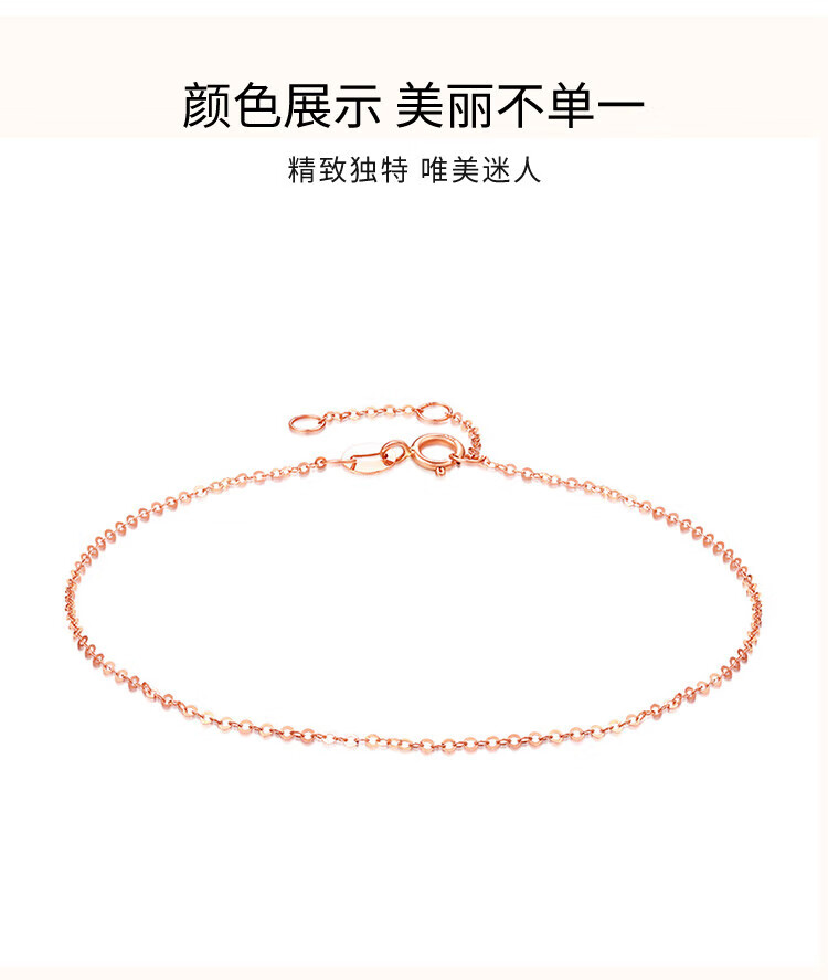 Weizhou 18K gold bracelet, flashing O-shaped chain, simple plain chain, rose gold color gold, white gold bracelet, gift for women, 18K gold, rose gold
