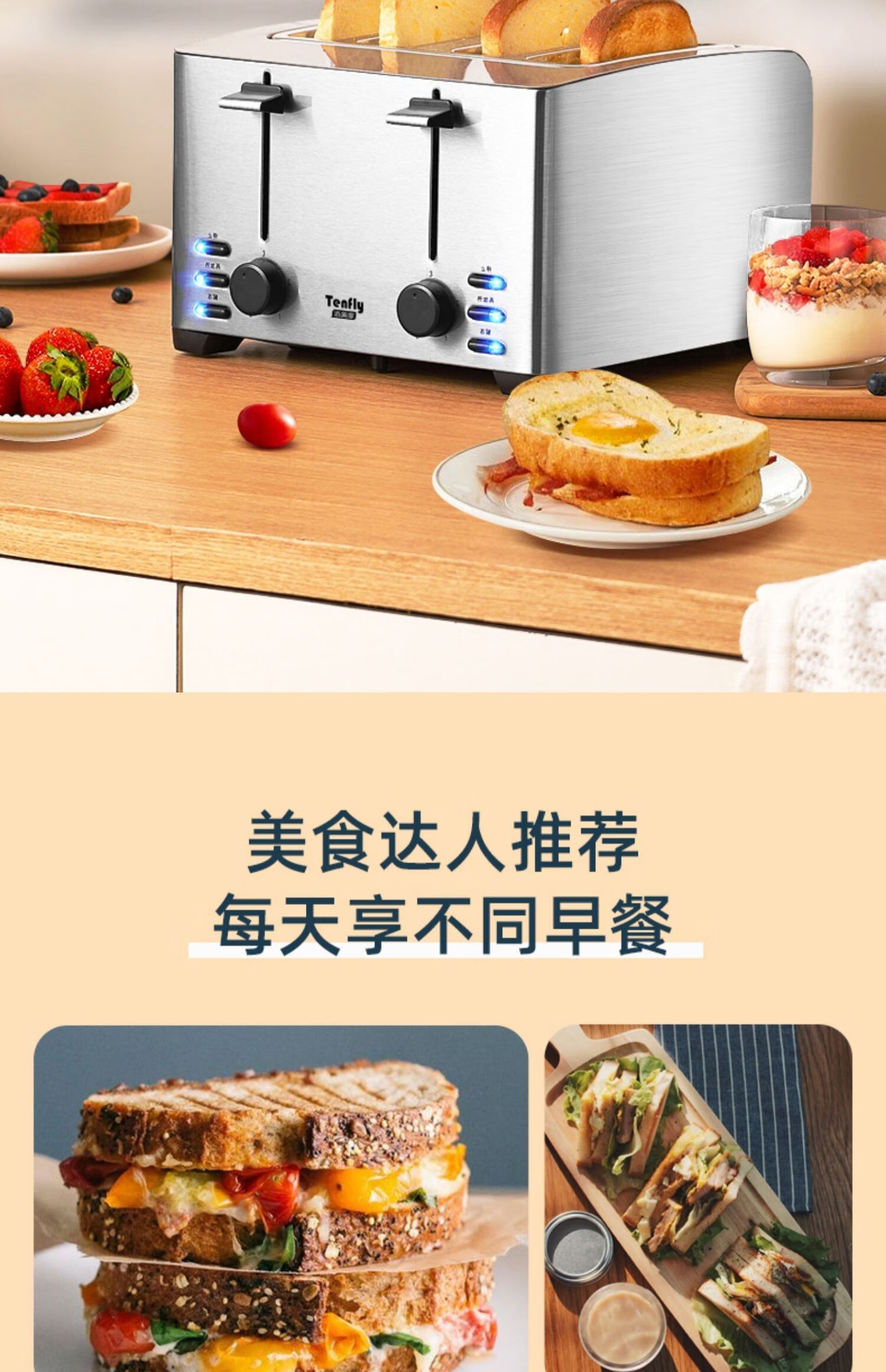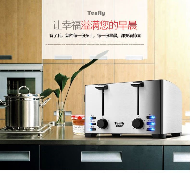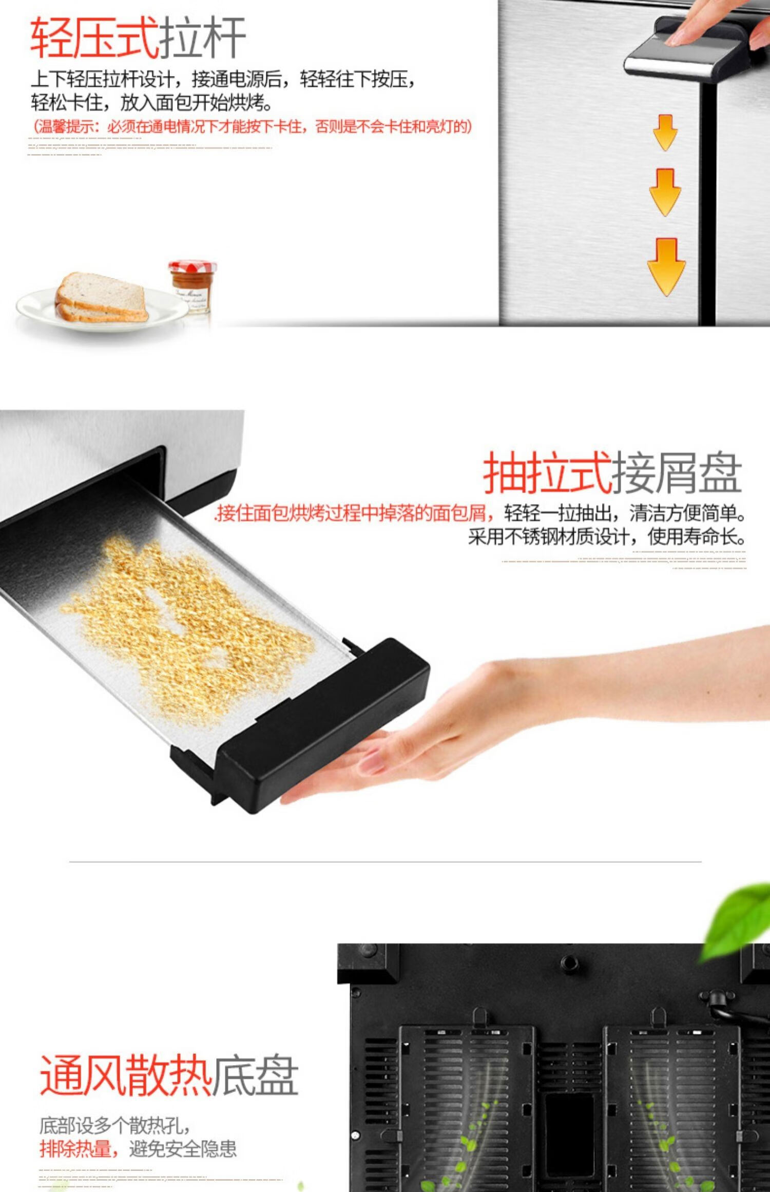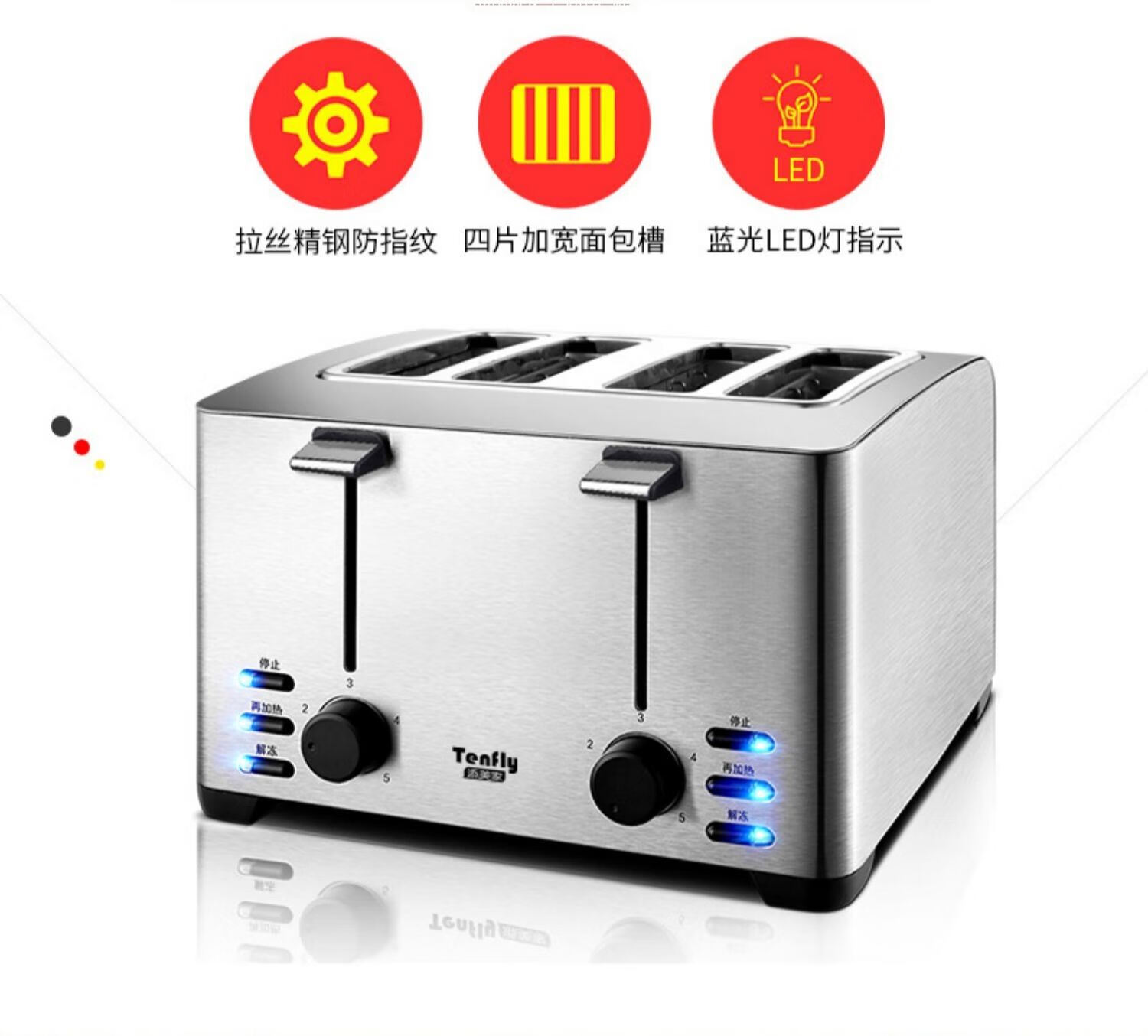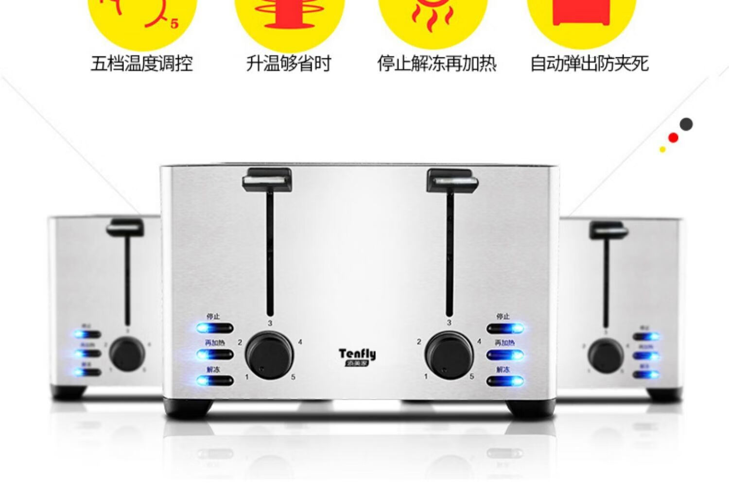 Toaster Stainless steel 4 slice toaster2 stainless steel toaster toast hotel Dongling noble silver two slots