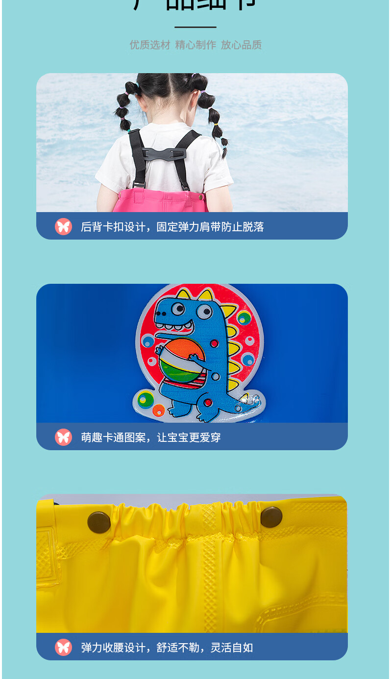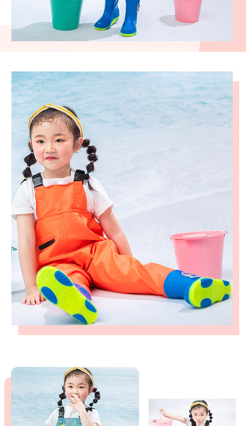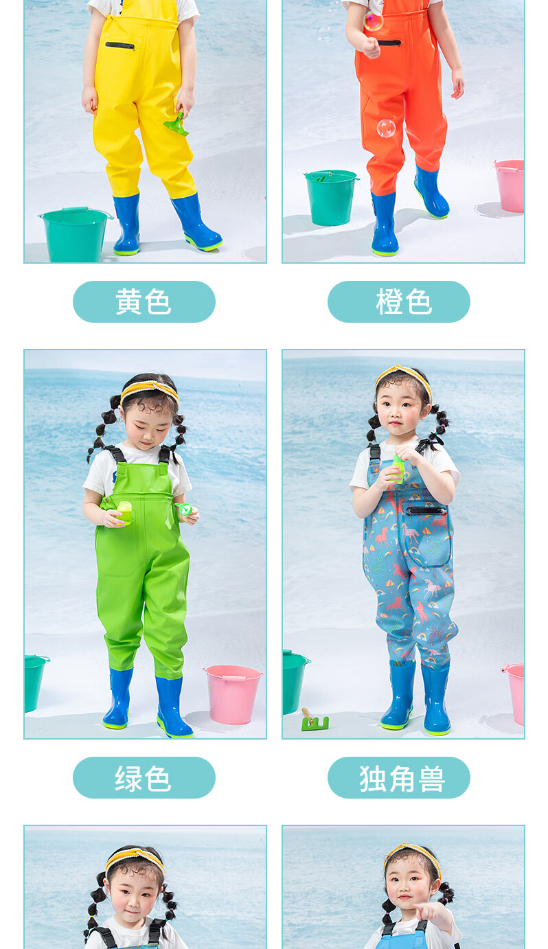 Children's water play one-piece waders kindergarten waterproof children's beach rain boots men and women fishing rain pants beach children's pink overalls (with pockets) size 21/27 (shoe inner length 14.5cm)