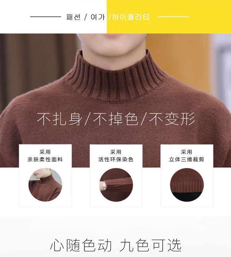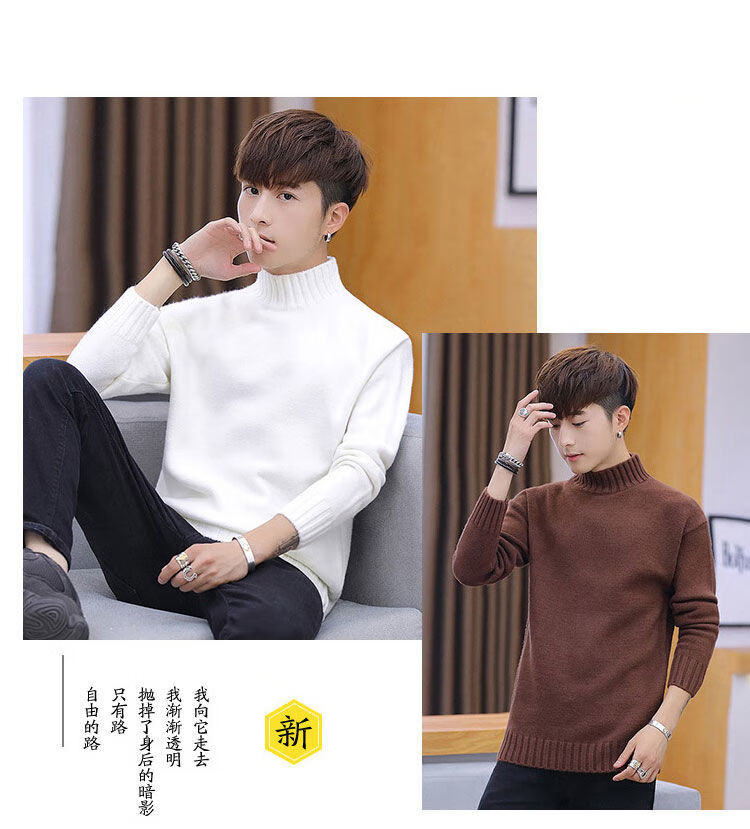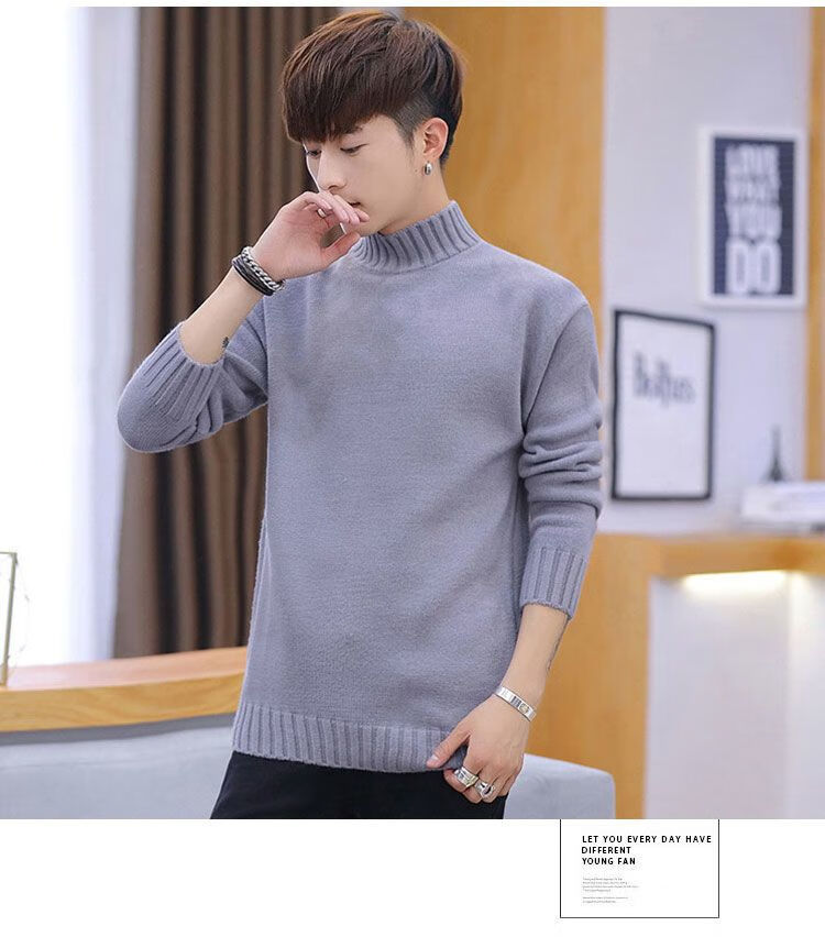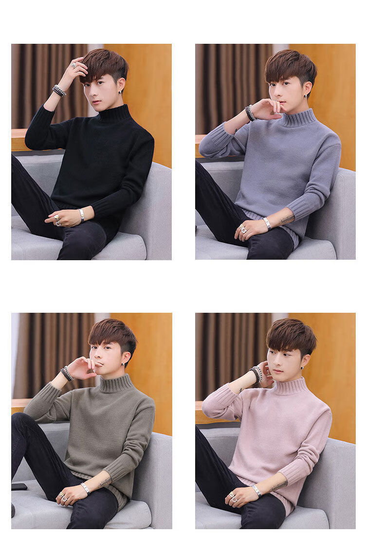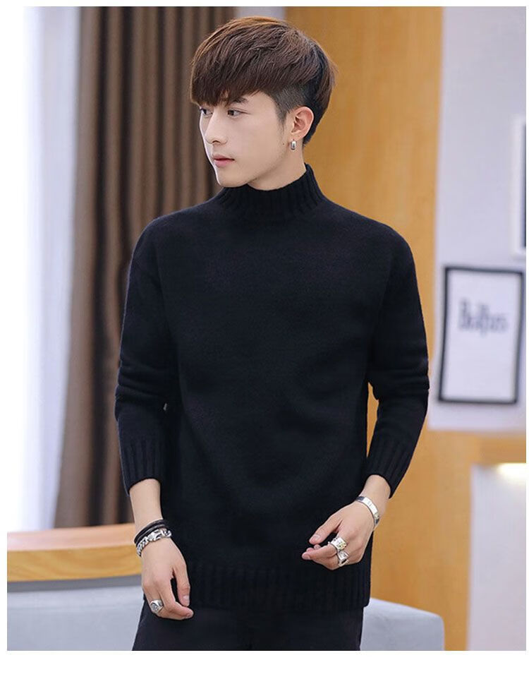 Hengyuanxiang velvet all-in-one half turtleneck sweater for men winter new Korean style casual all-match pullover solid color bottoming sweater black warm velvet XL 130-140Jin Jin equals 0.5 kg